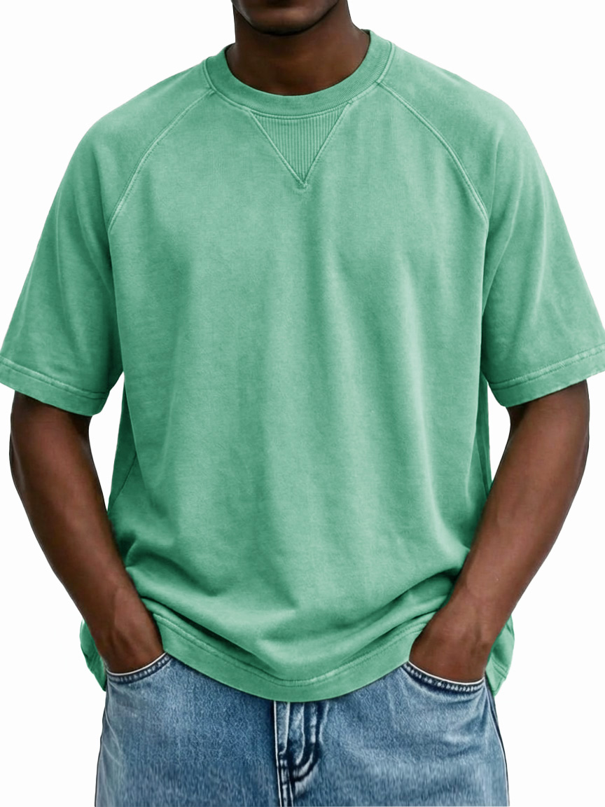 Men's Retro Distressed Raglan Crew Neck Short-Sleeve T-Shirt