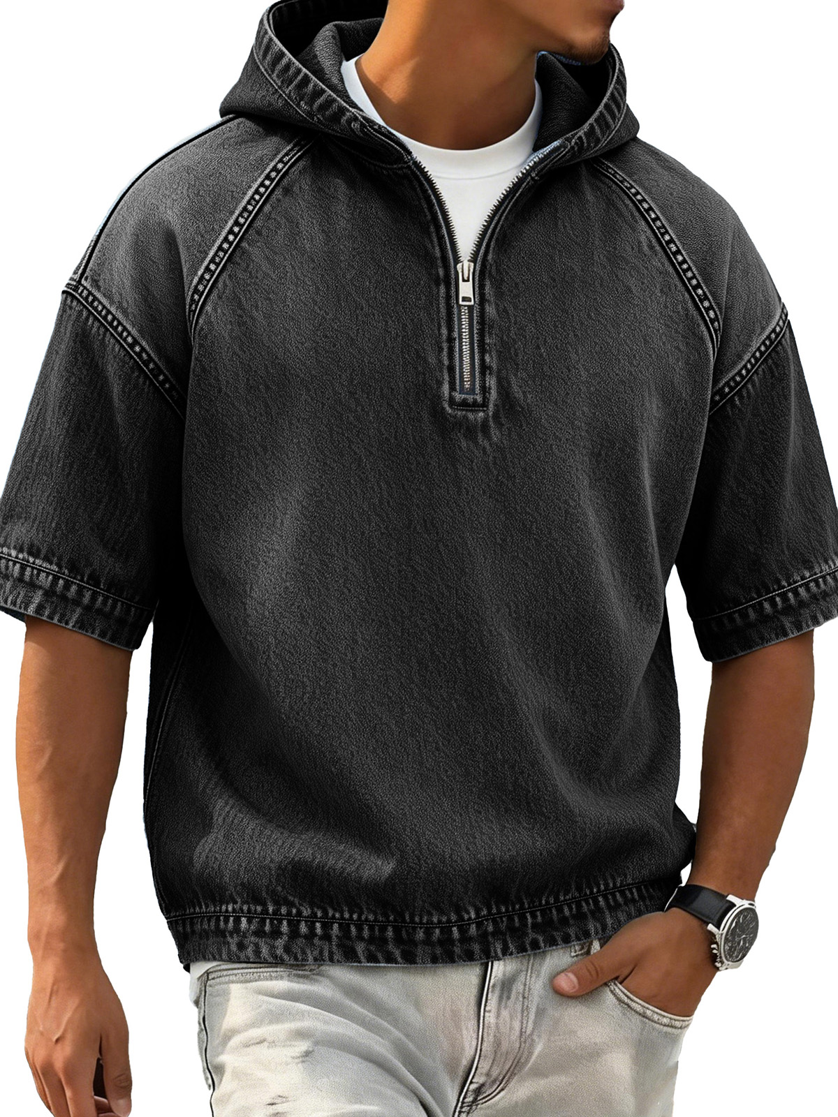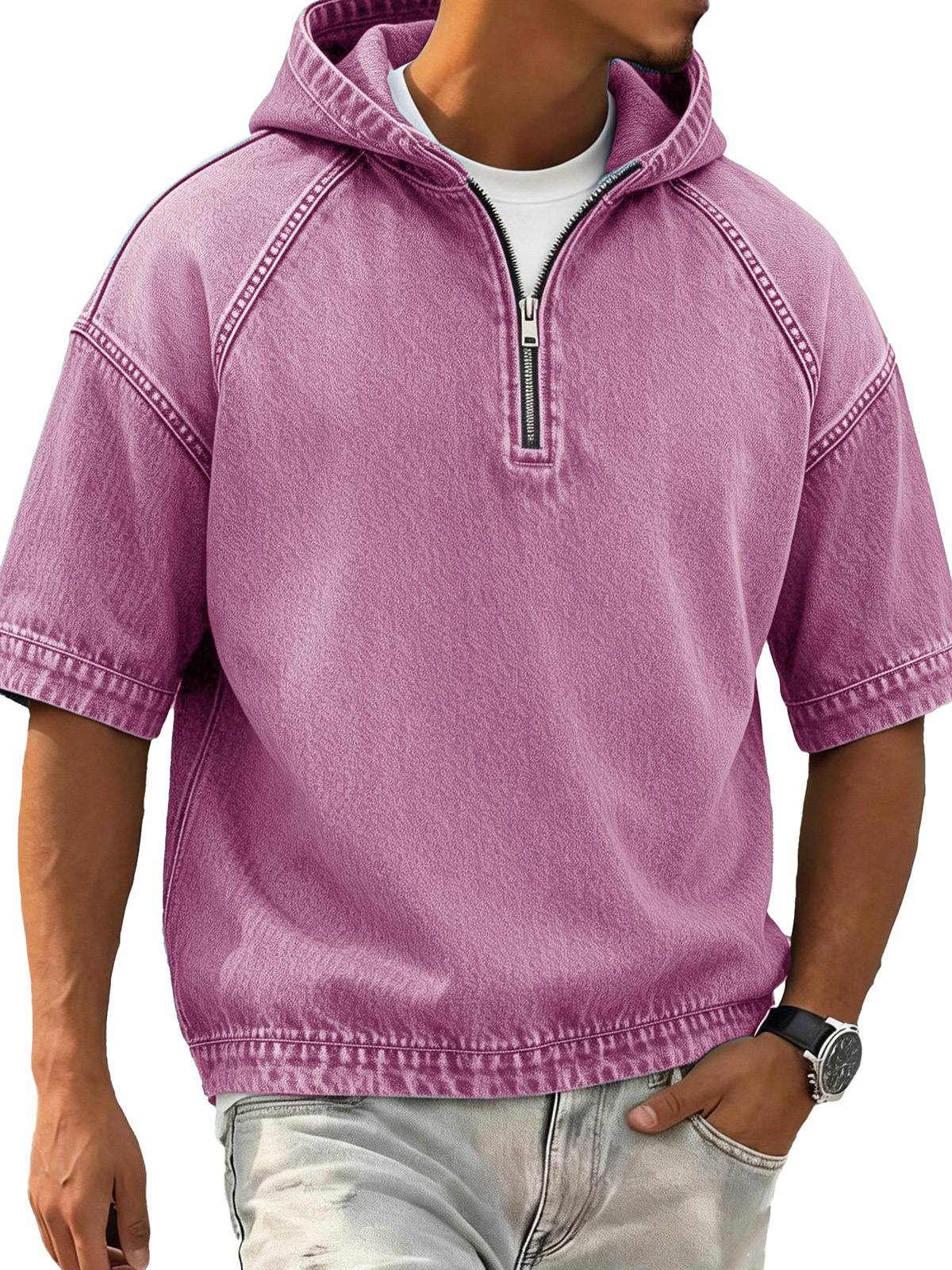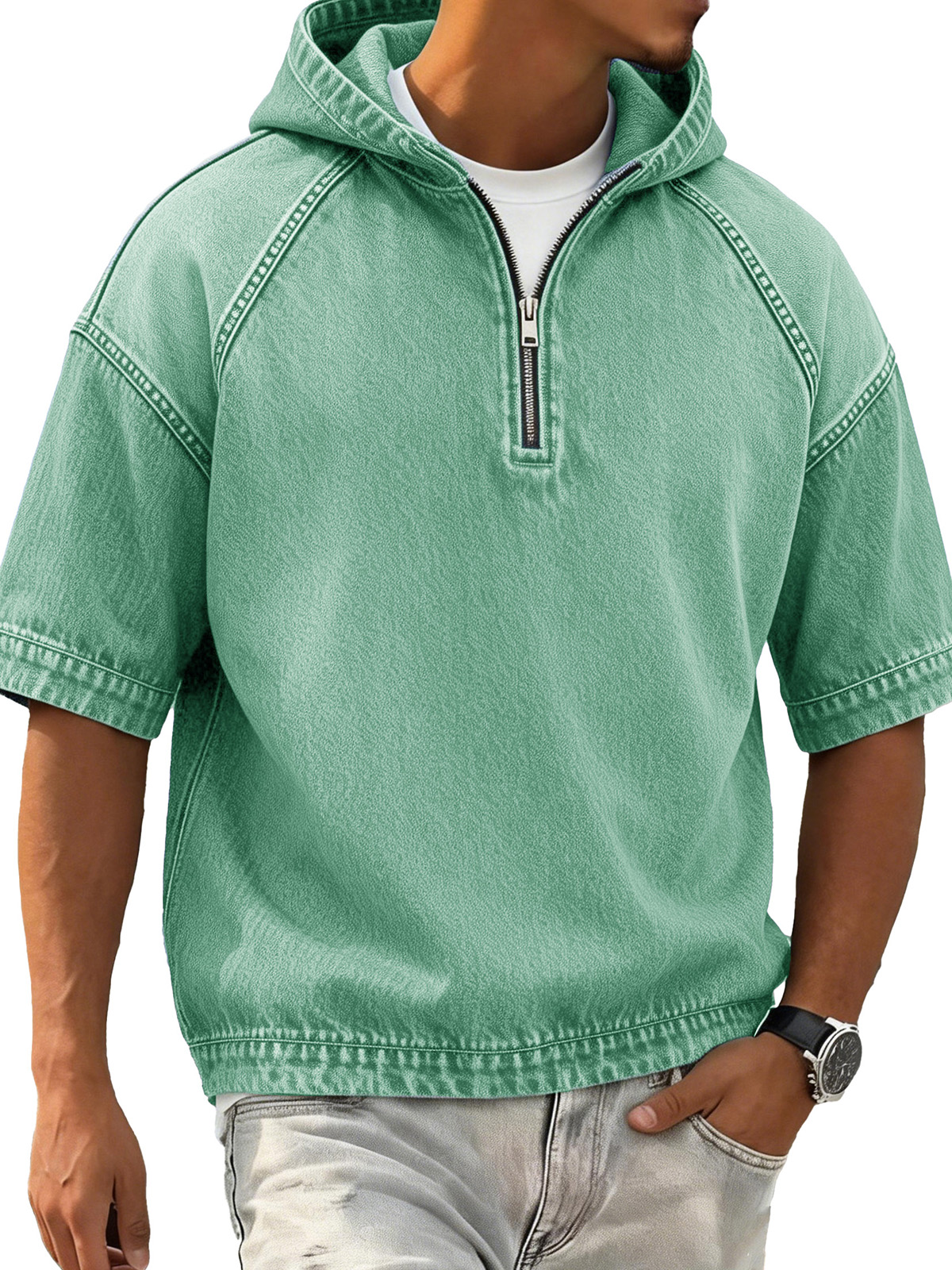 Men's Retro Distressed Raglan Short-Sleeve Sporty Hoodie