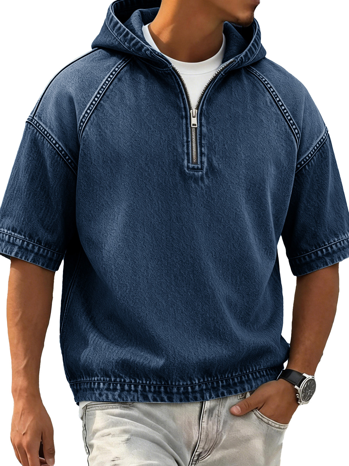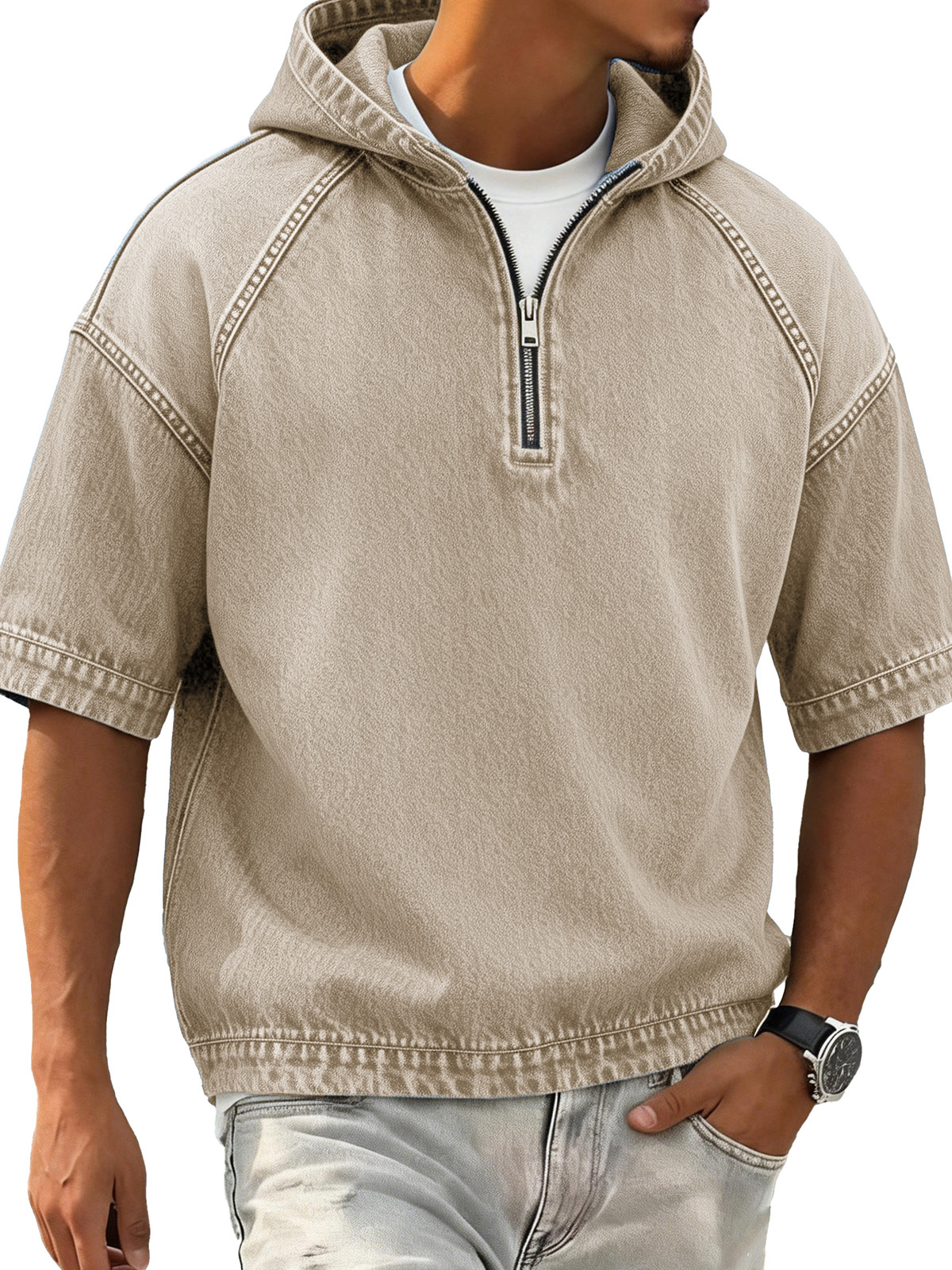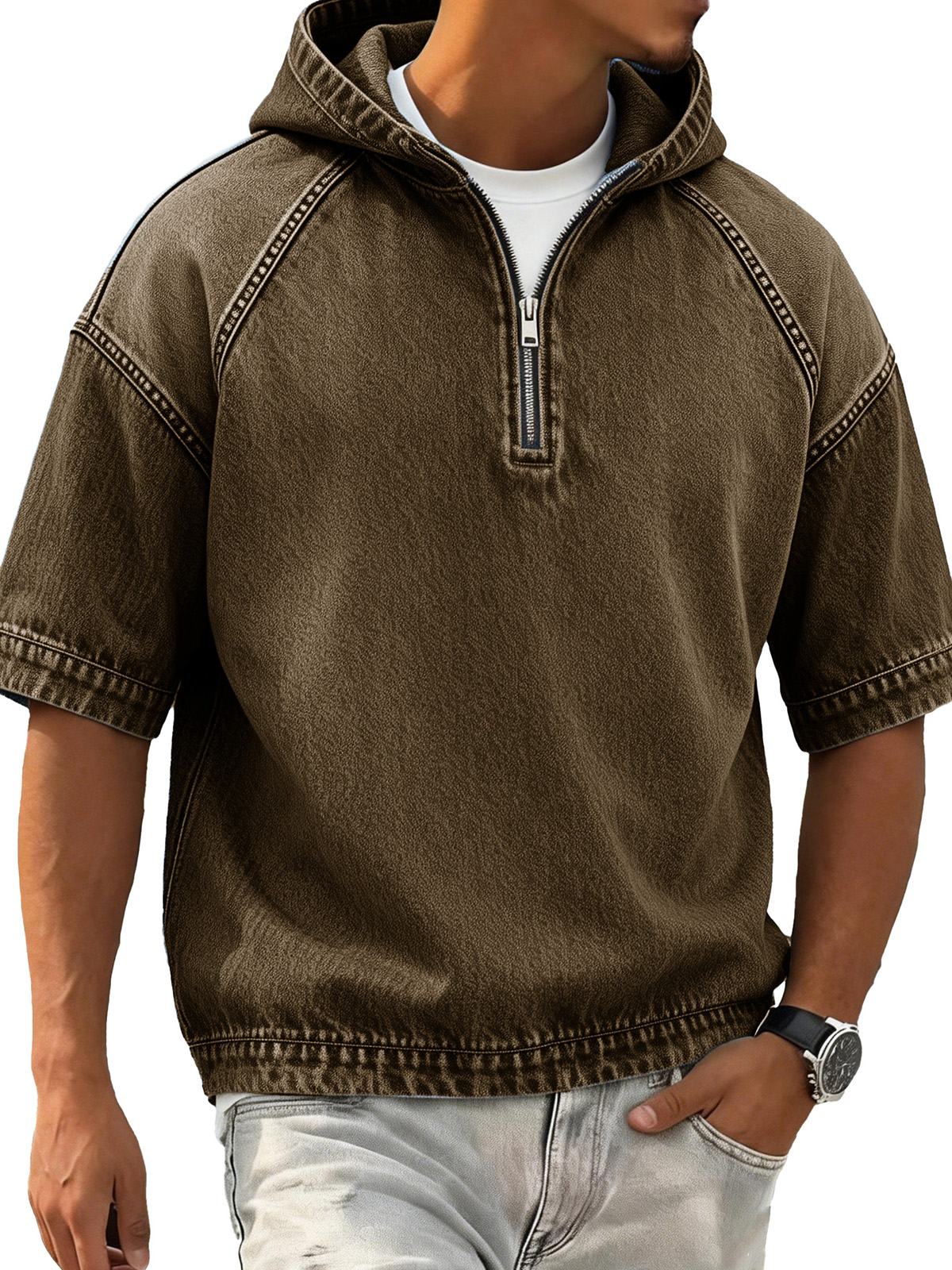 Men's Retro Distressed Raglan Short-Sleeve Sporty Hoodie