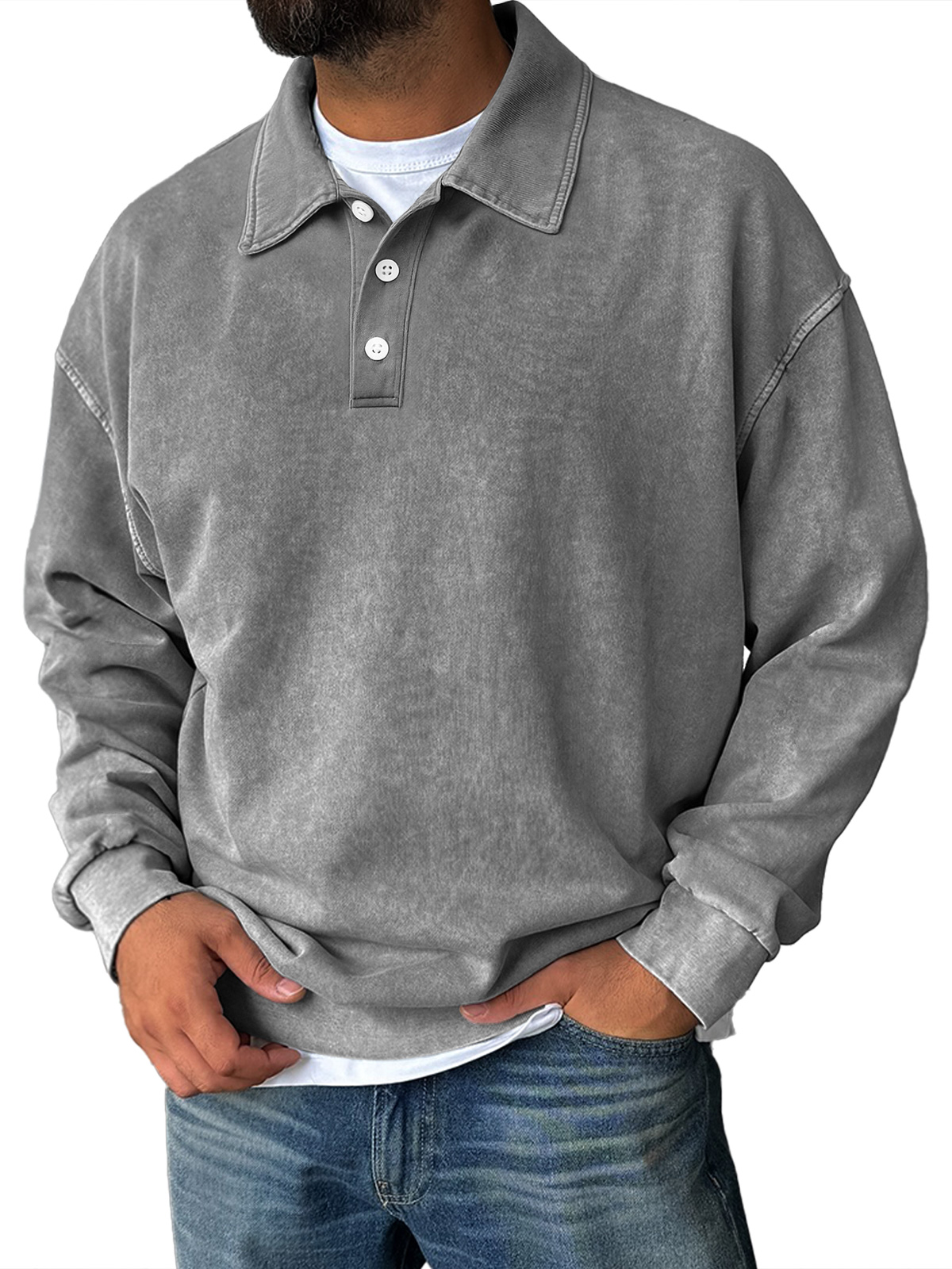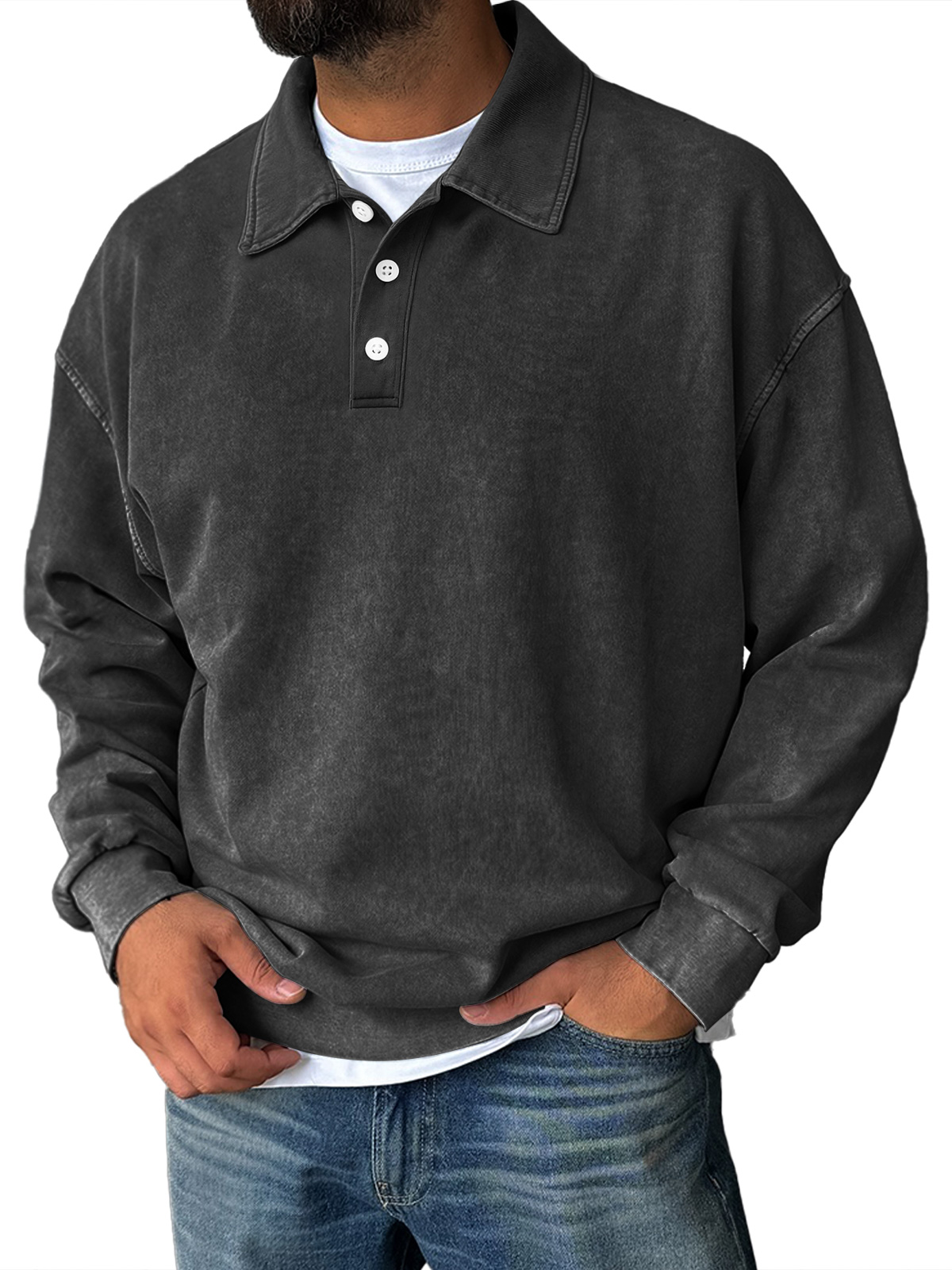 Men's Retro Everyday Lapel Collar Button-Down Comfortable Sweatshirt
