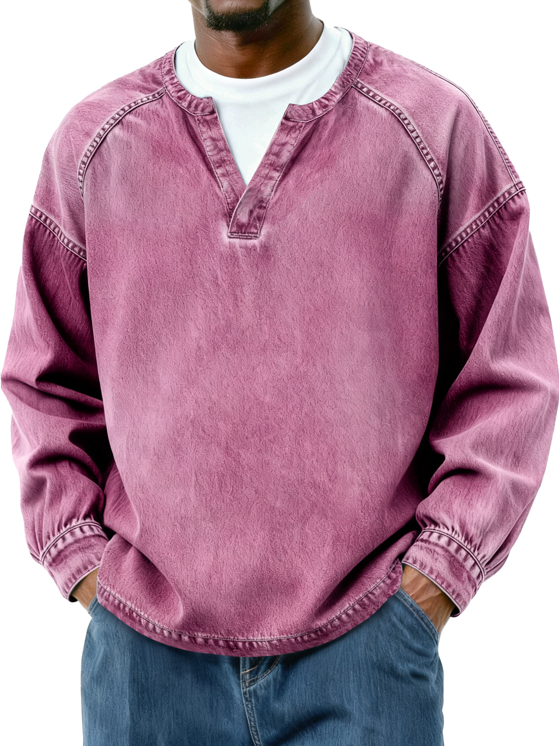 Men's Retro Faux Two-Piece Raglan Patchwork Casual Long-Sleeve T-Shirt