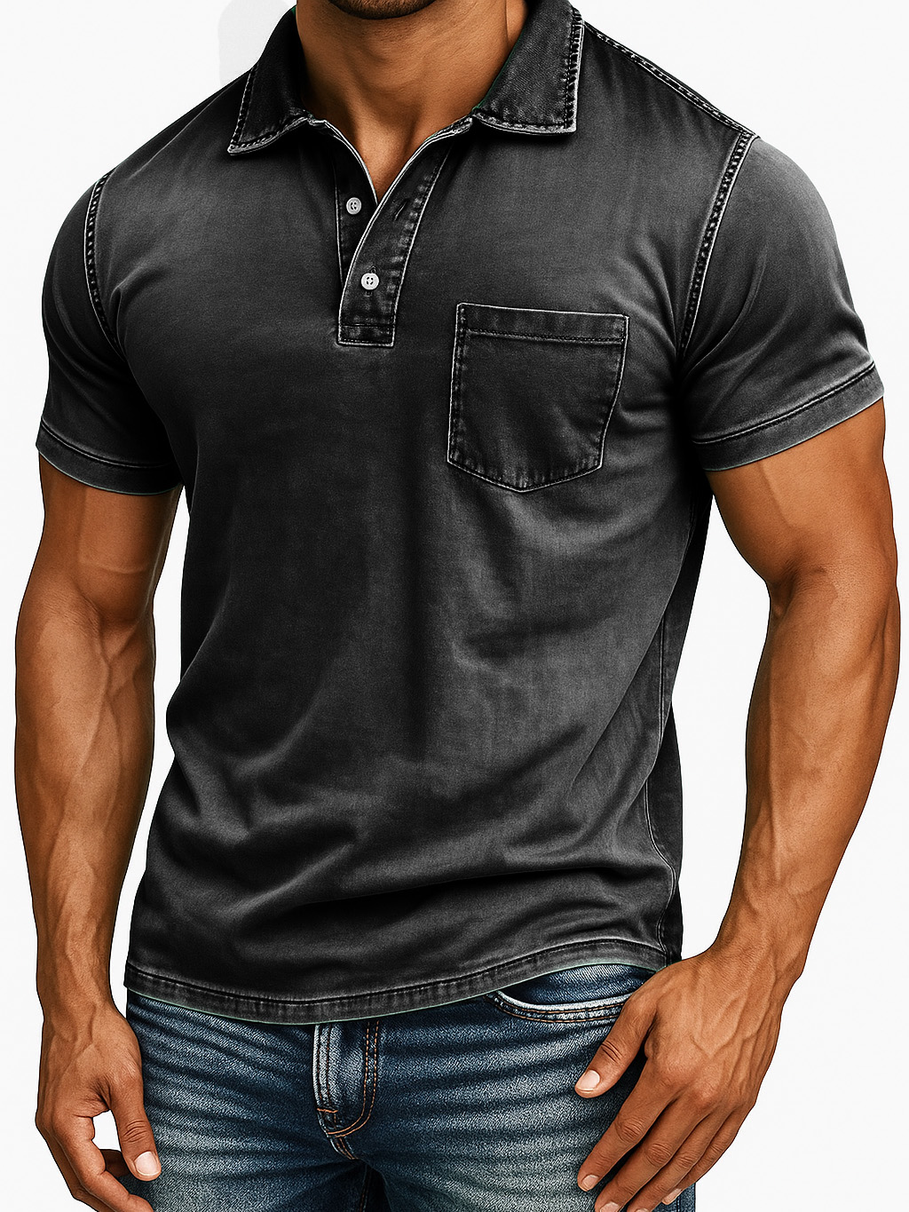 Men's Retro Outdoor Distressed Lapel Short-sleeved Pocket Polo Shirt