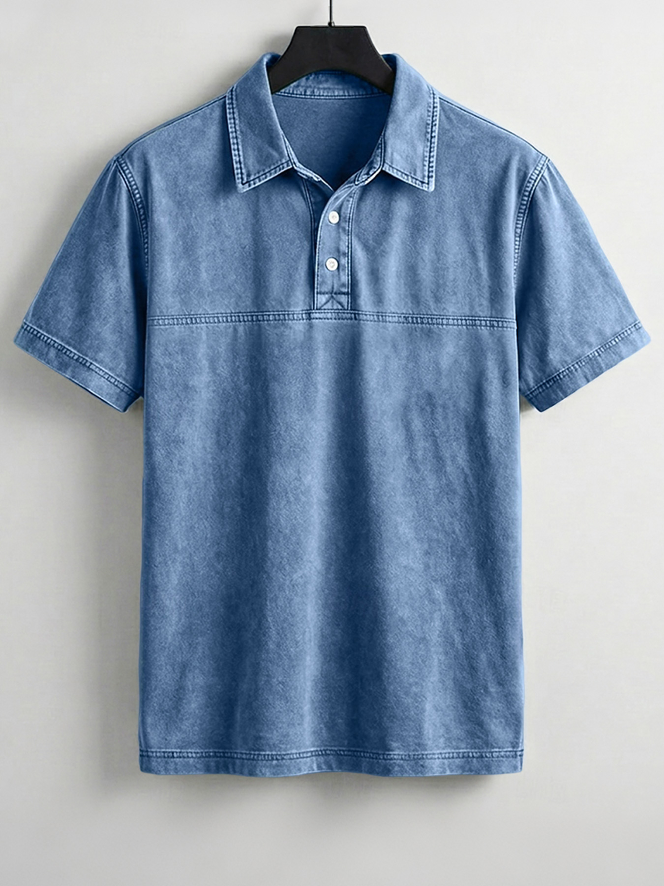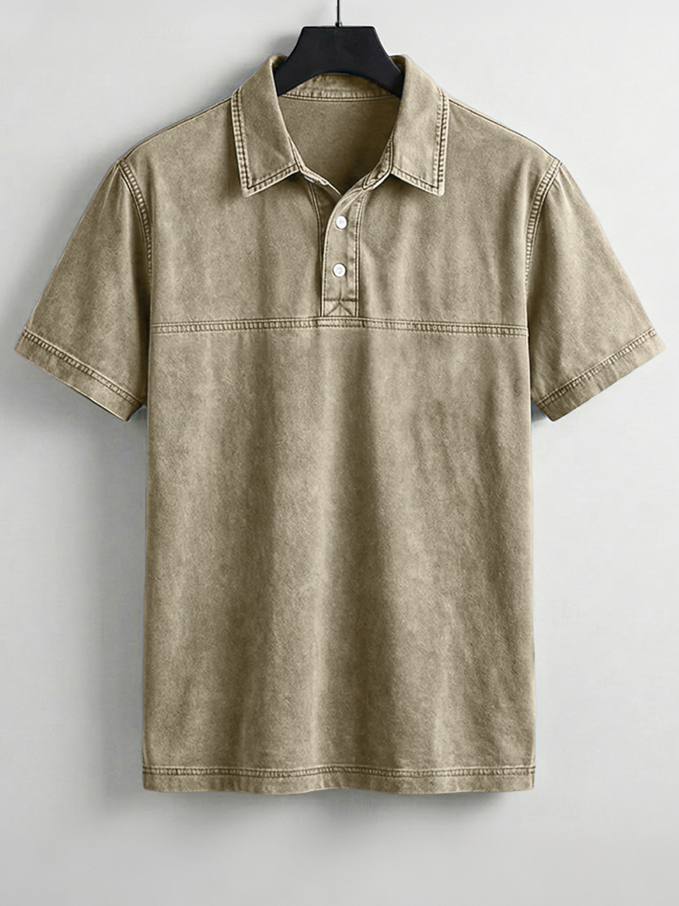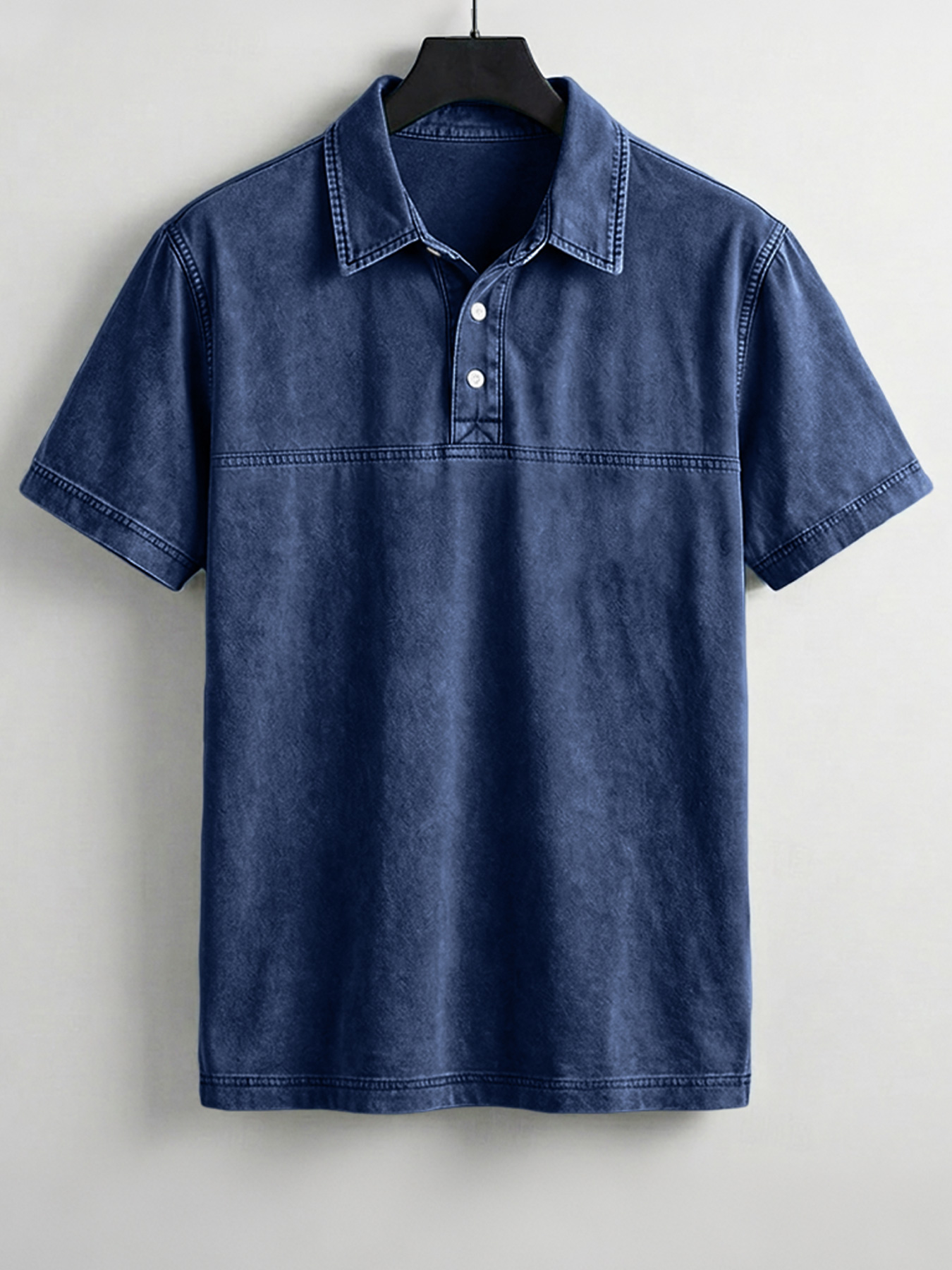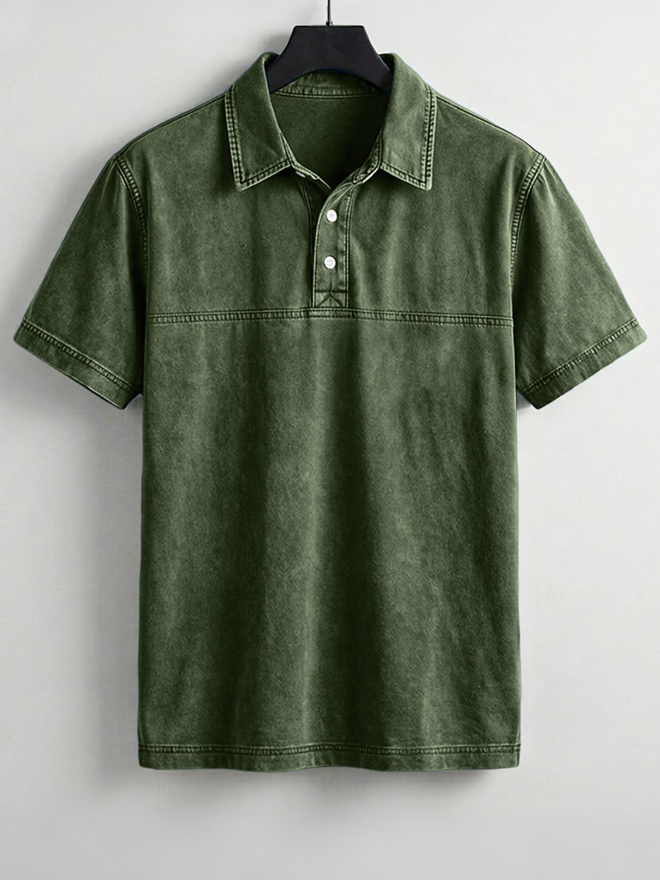Men's Retro Patchwork Design Casual Collared Short-Sleeve Polo Shirt