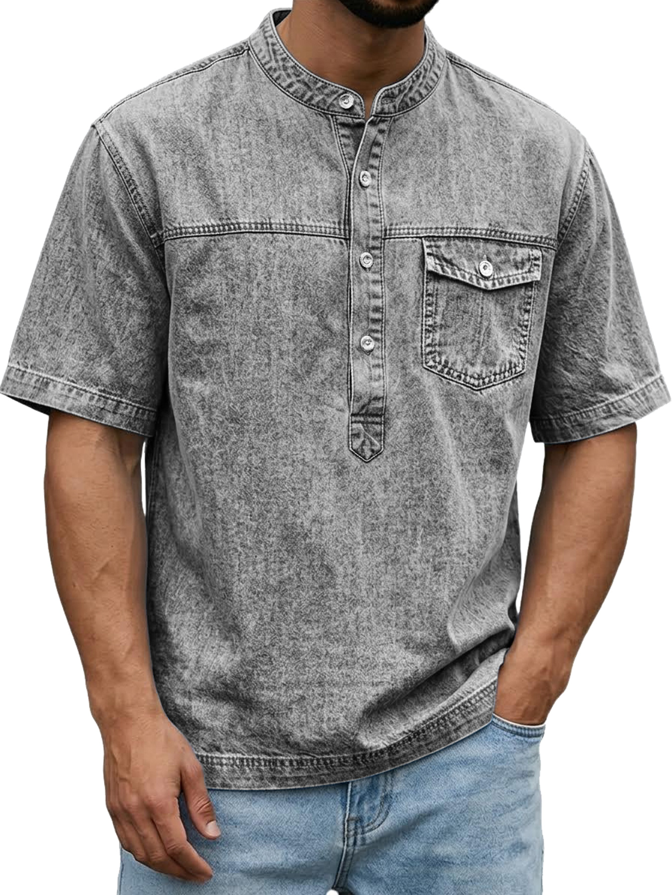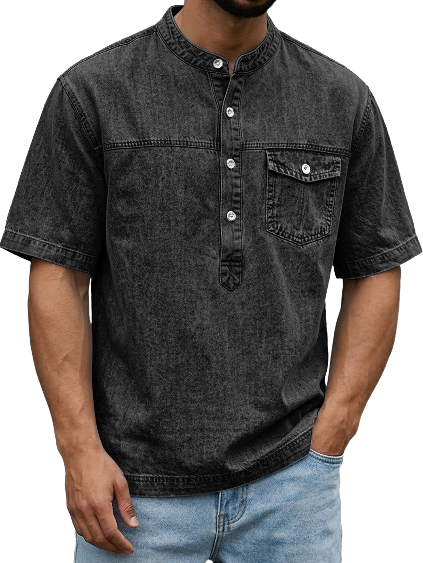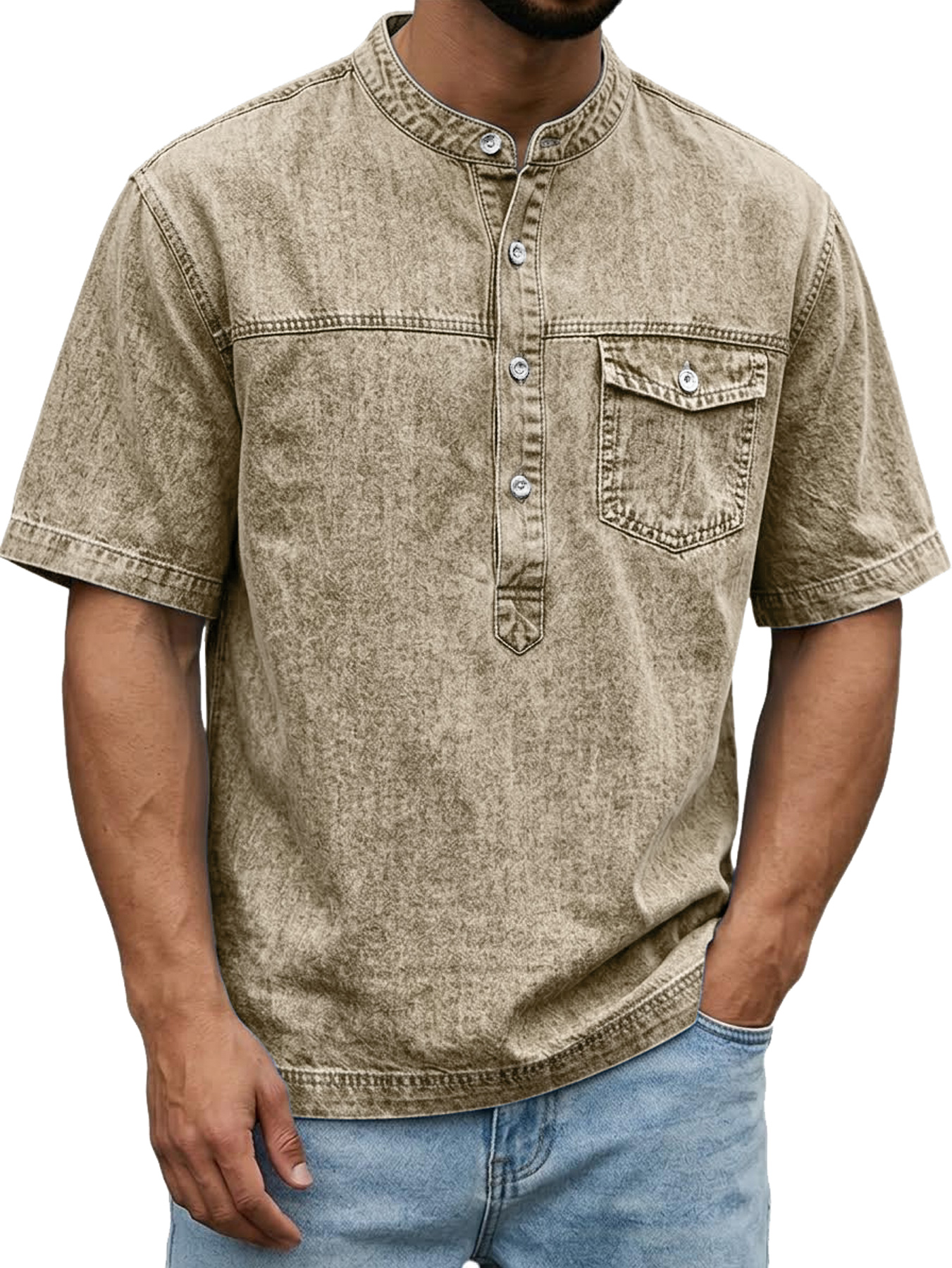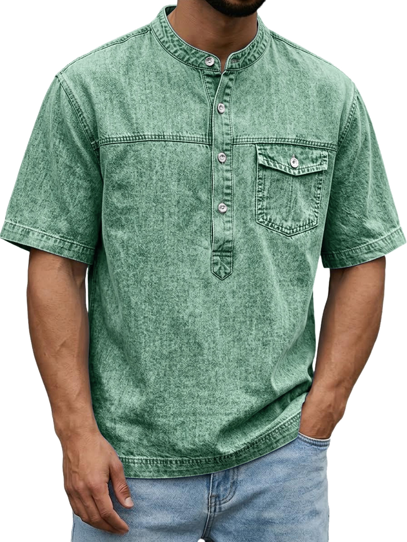 Men's Retro Pocket Casual Workwear Henley Shirt