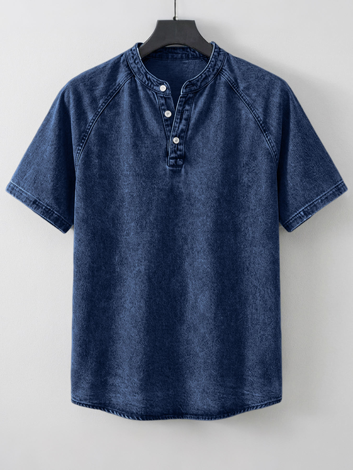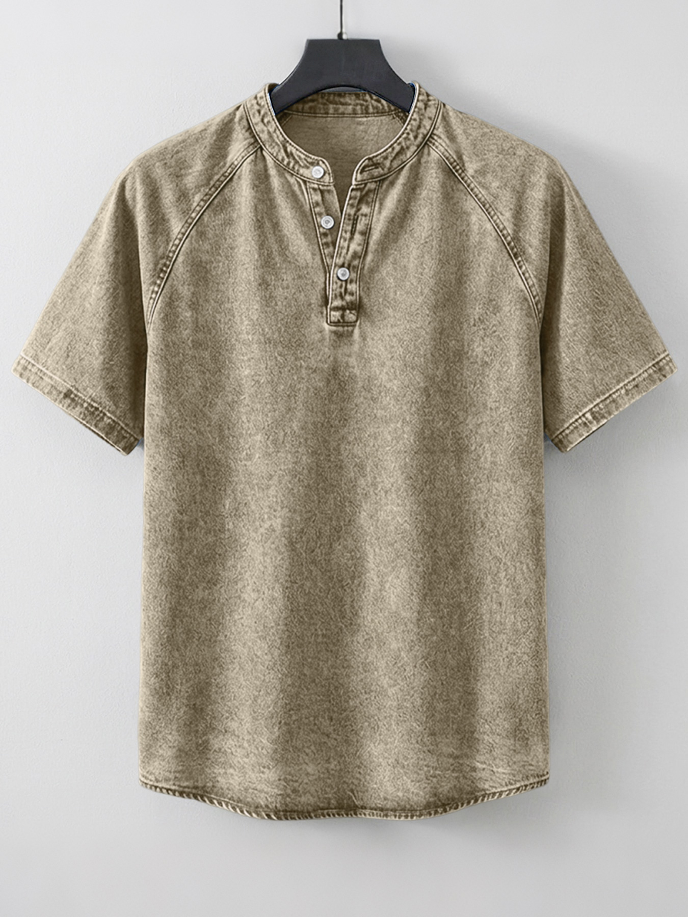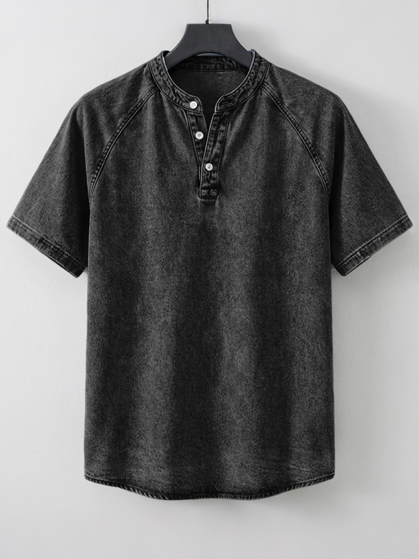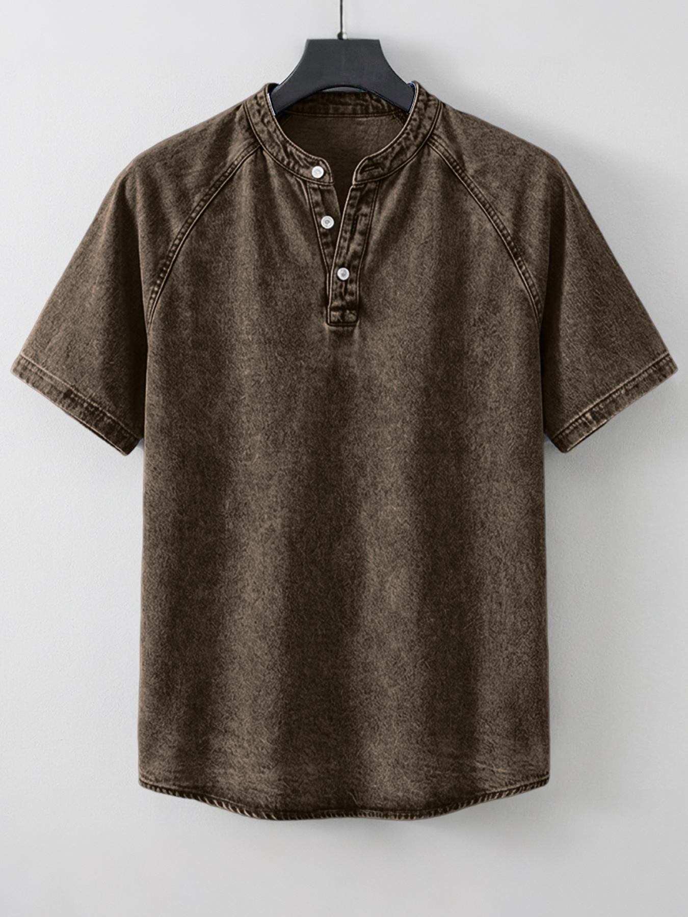 Men's Retro Raglan Casual Short-Sleeve Henley Shirt