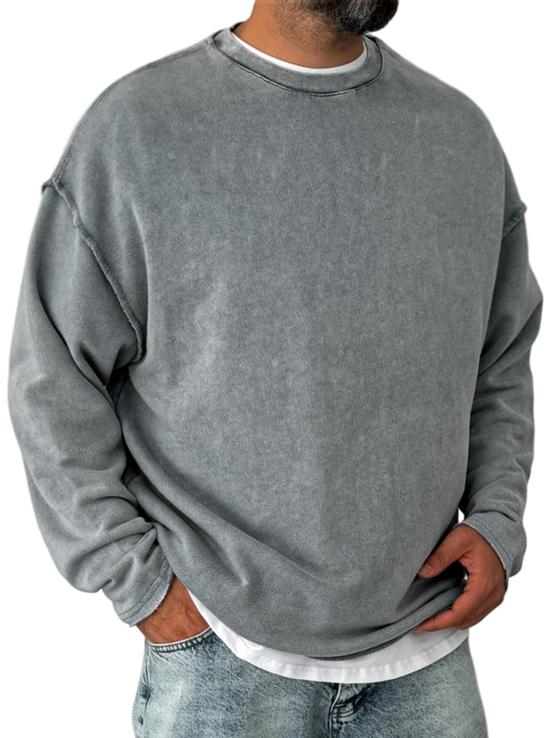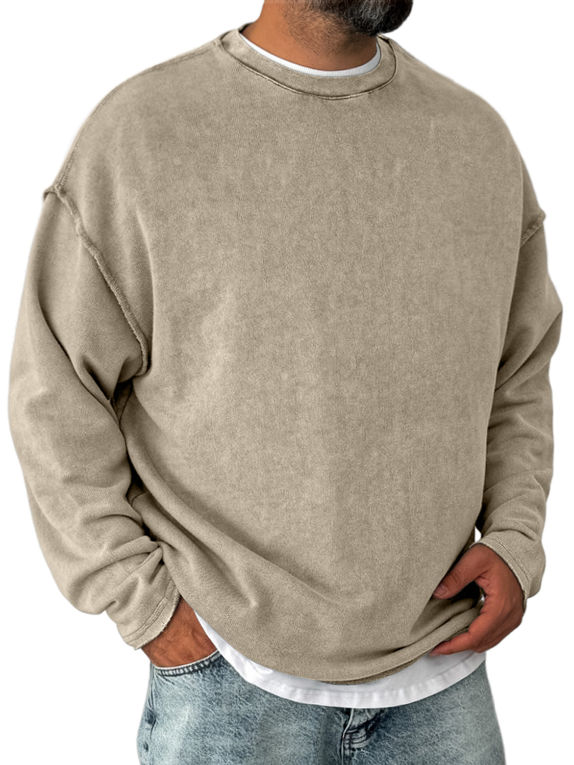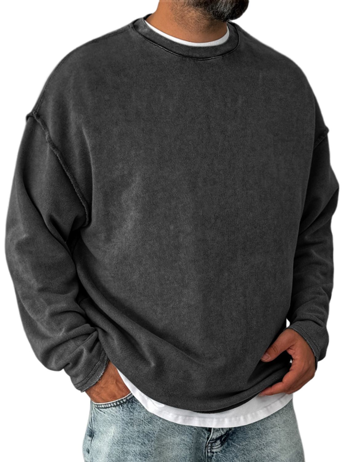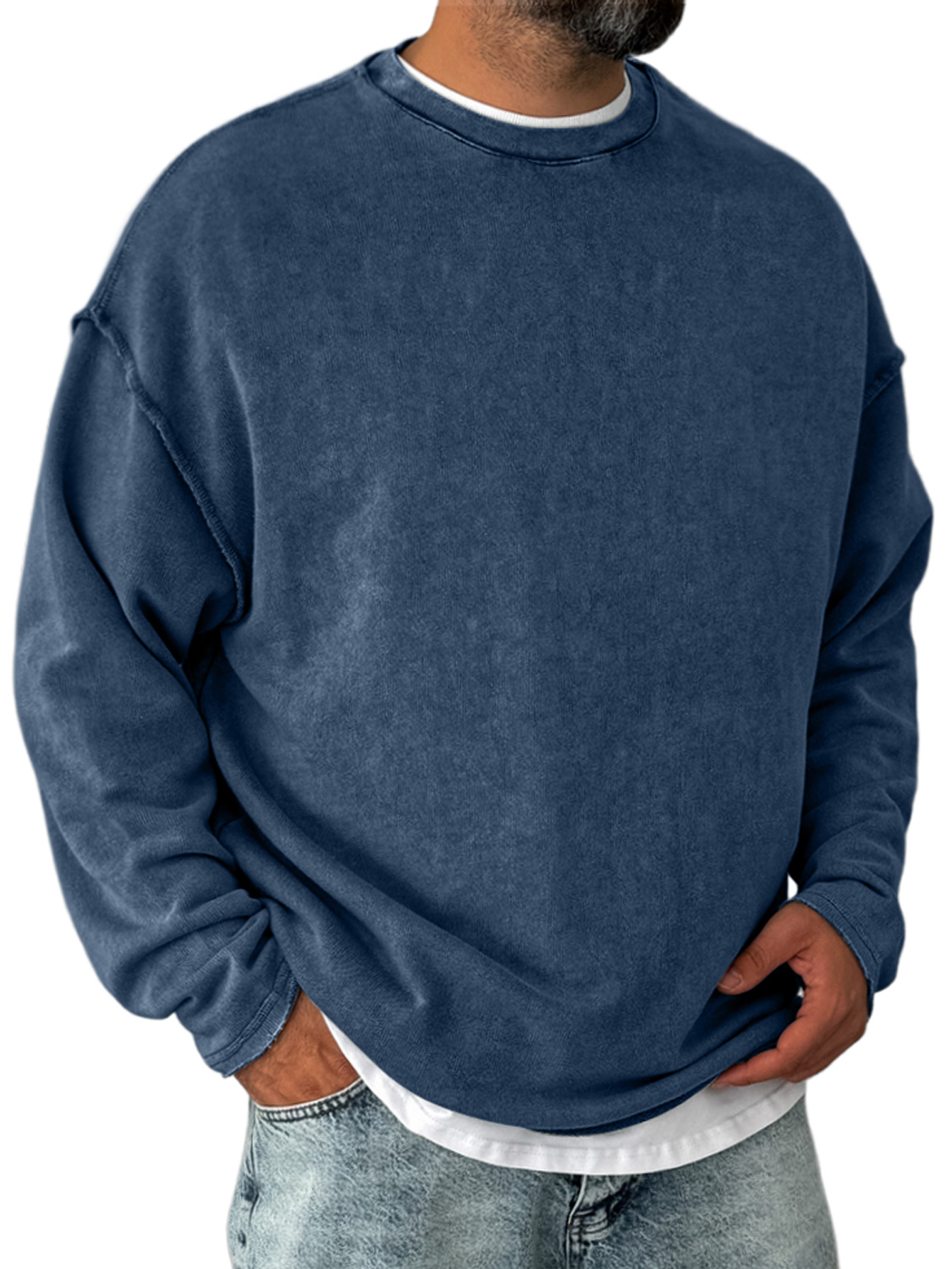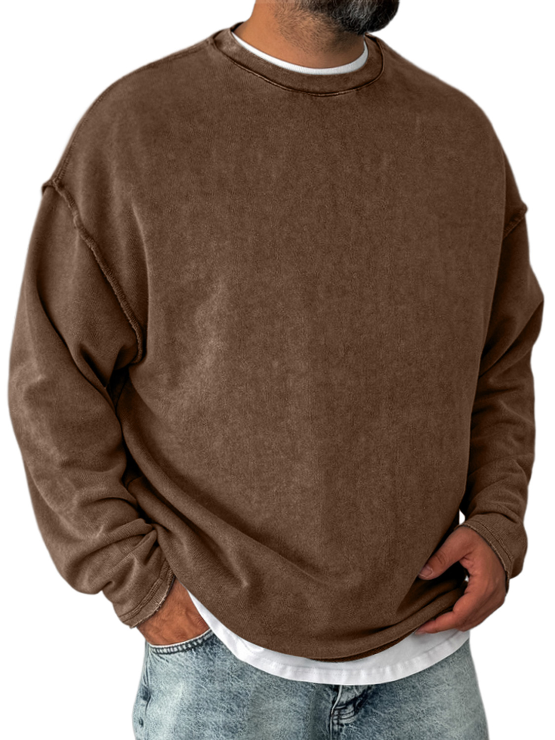 Men's Retro Round Neck Distressed Casual Comfortable Long Sleeve T-shirt