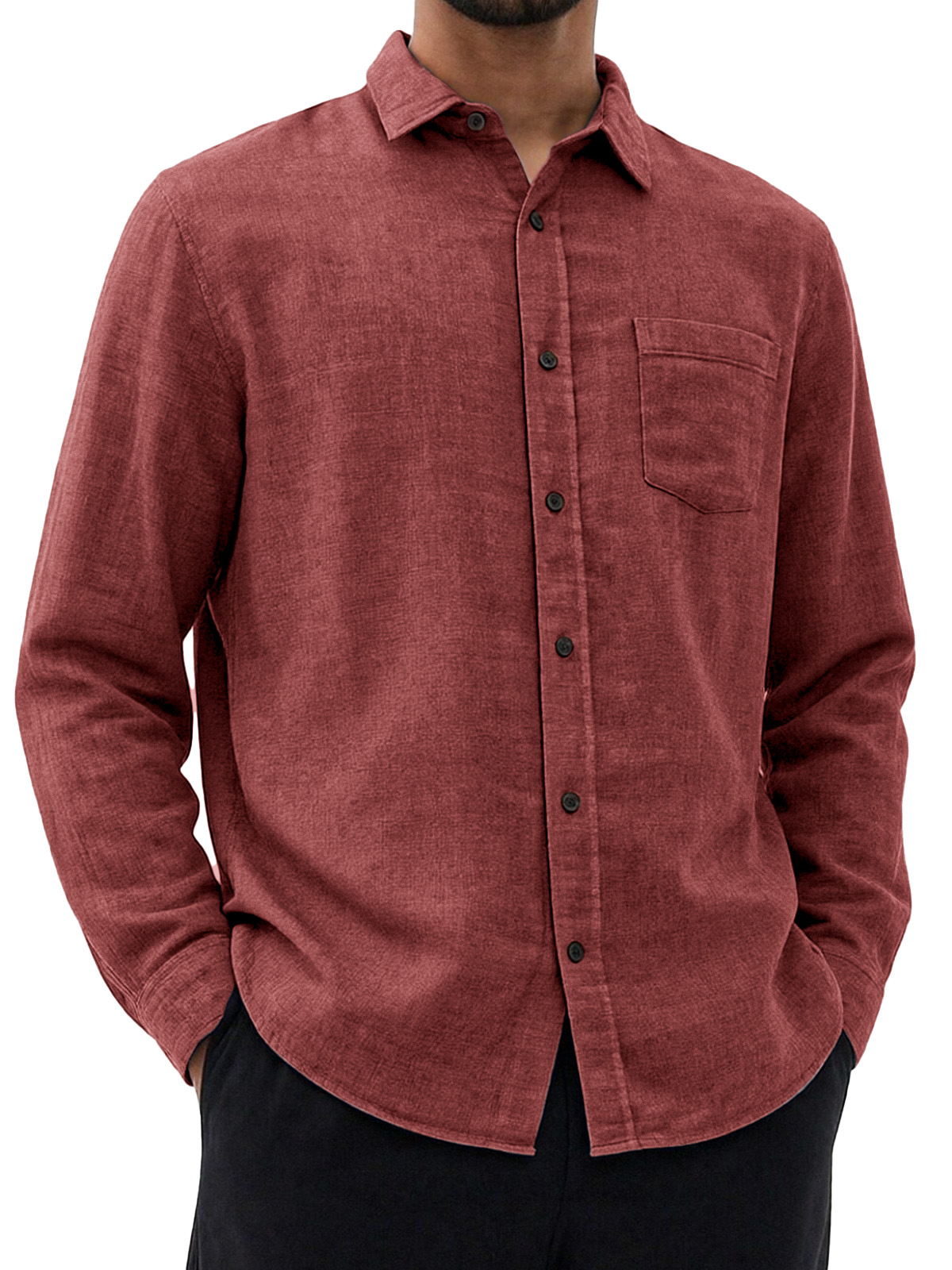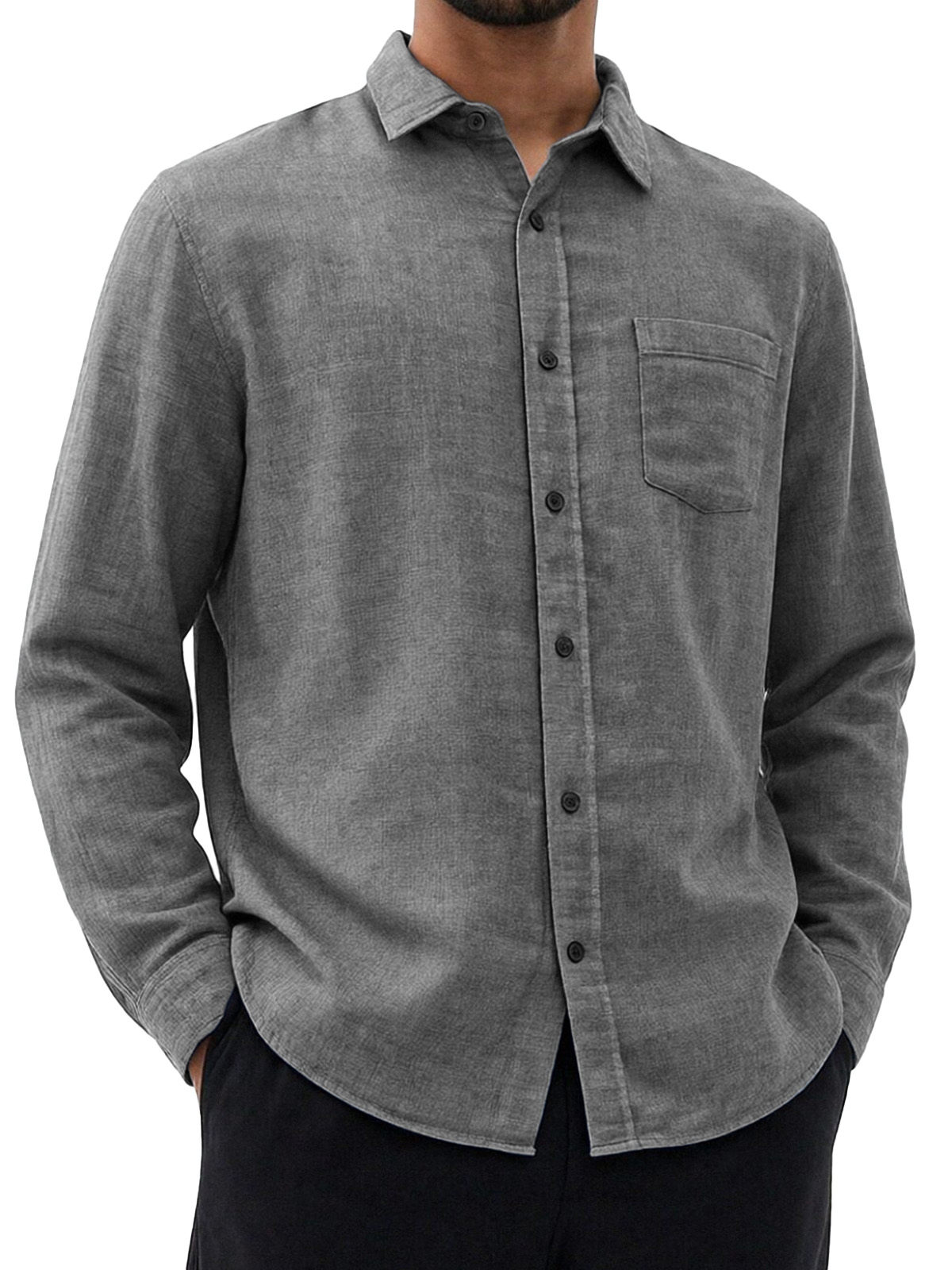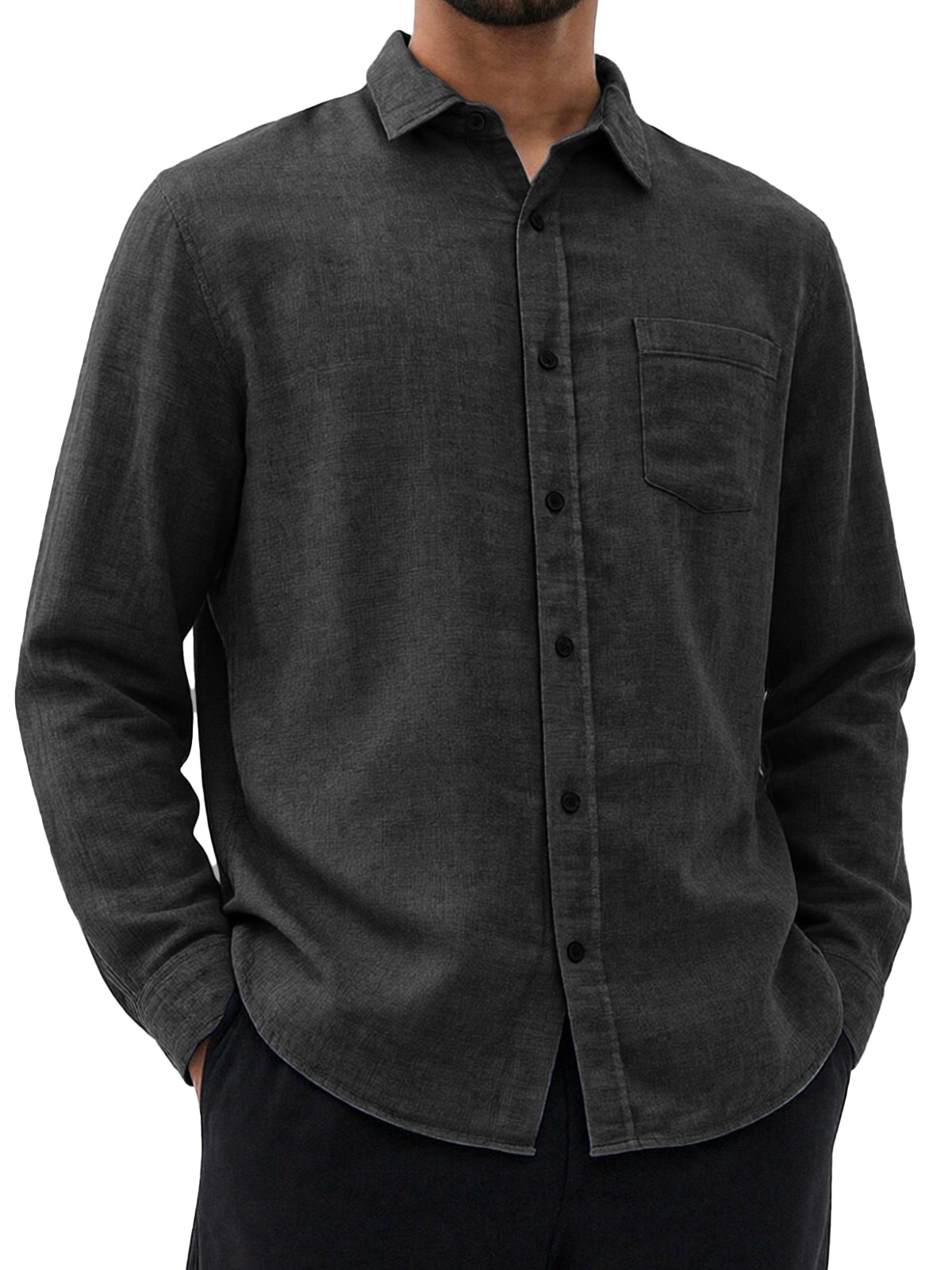 Men's Retro Simple And Versatile Solid Color Collared Long-sleeved Shirt
