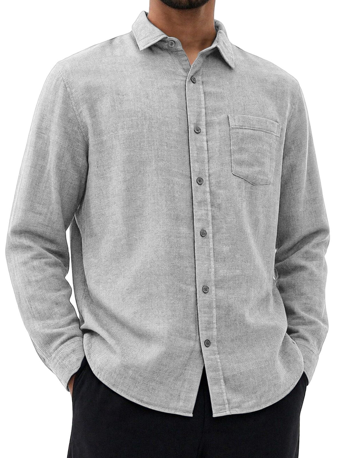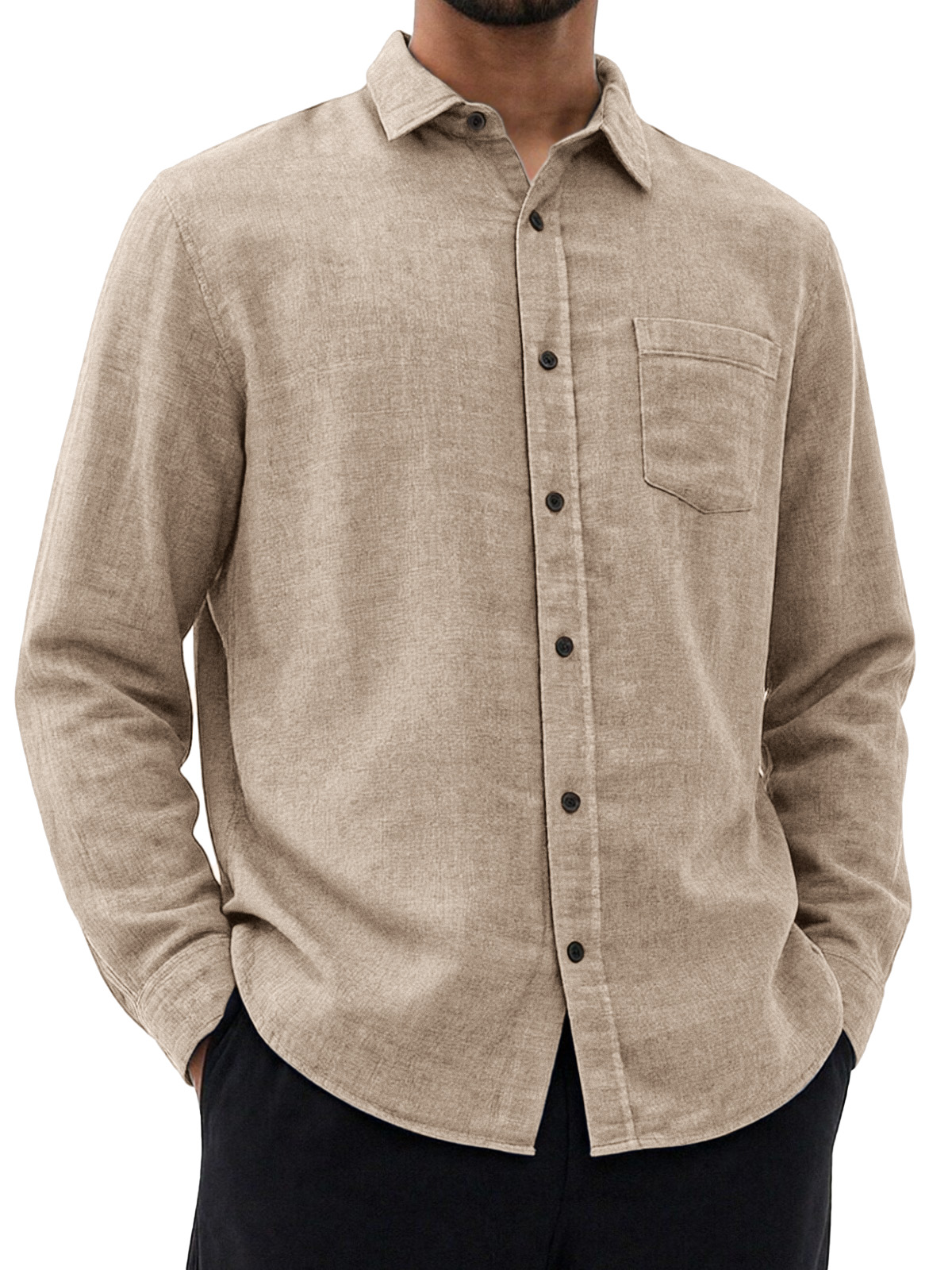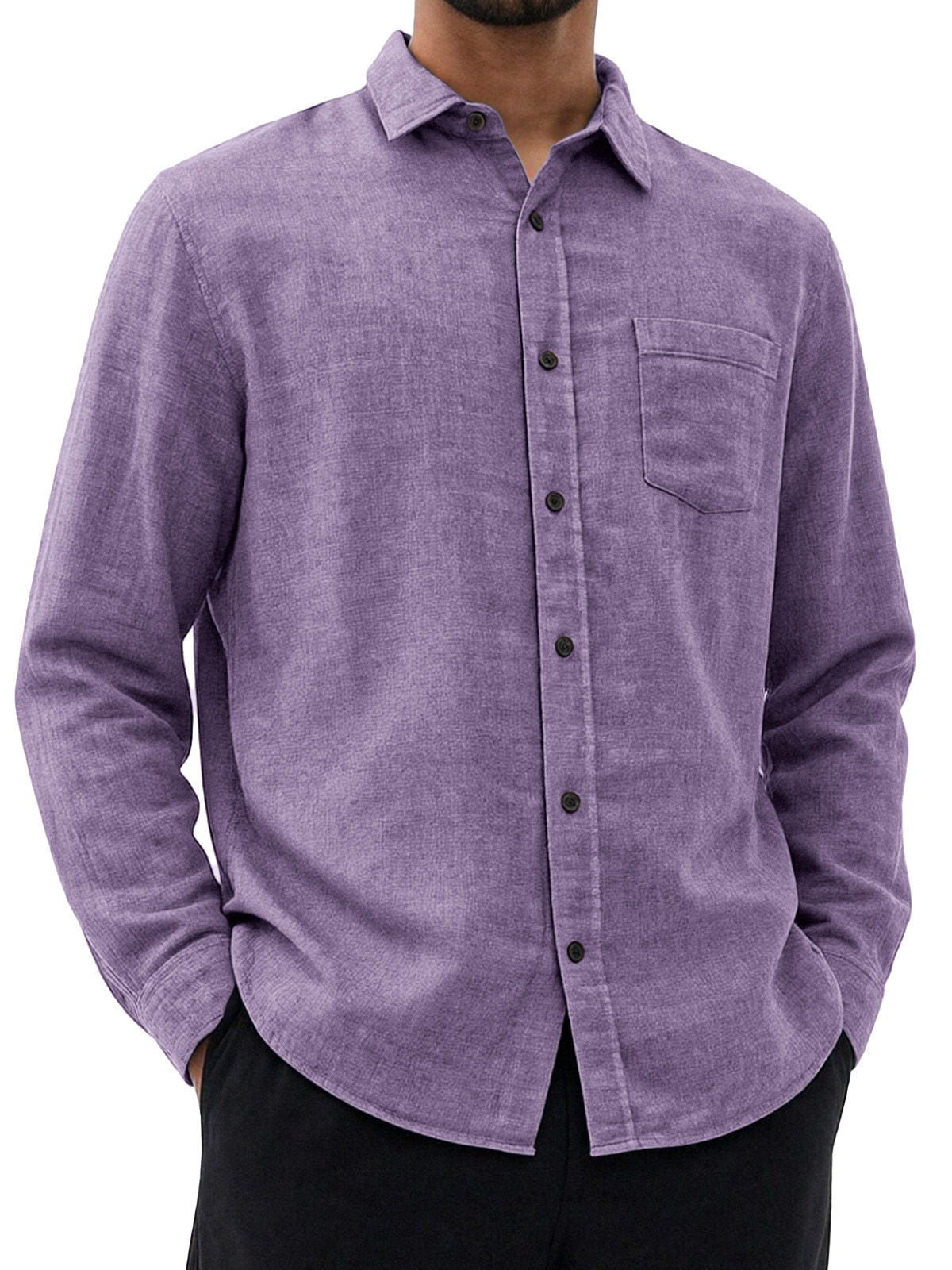 Men's Retro Simple And Versatile Solid Color Collared Long-sleeved Shirt