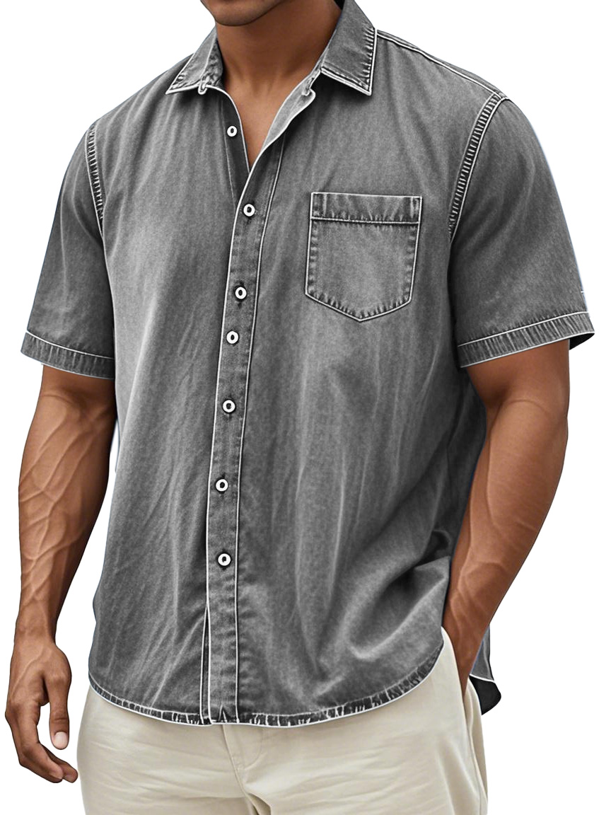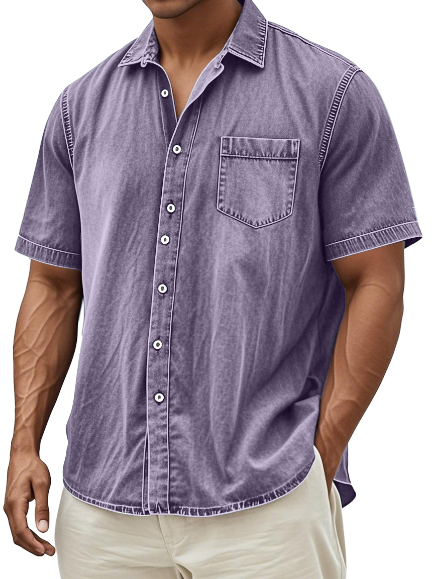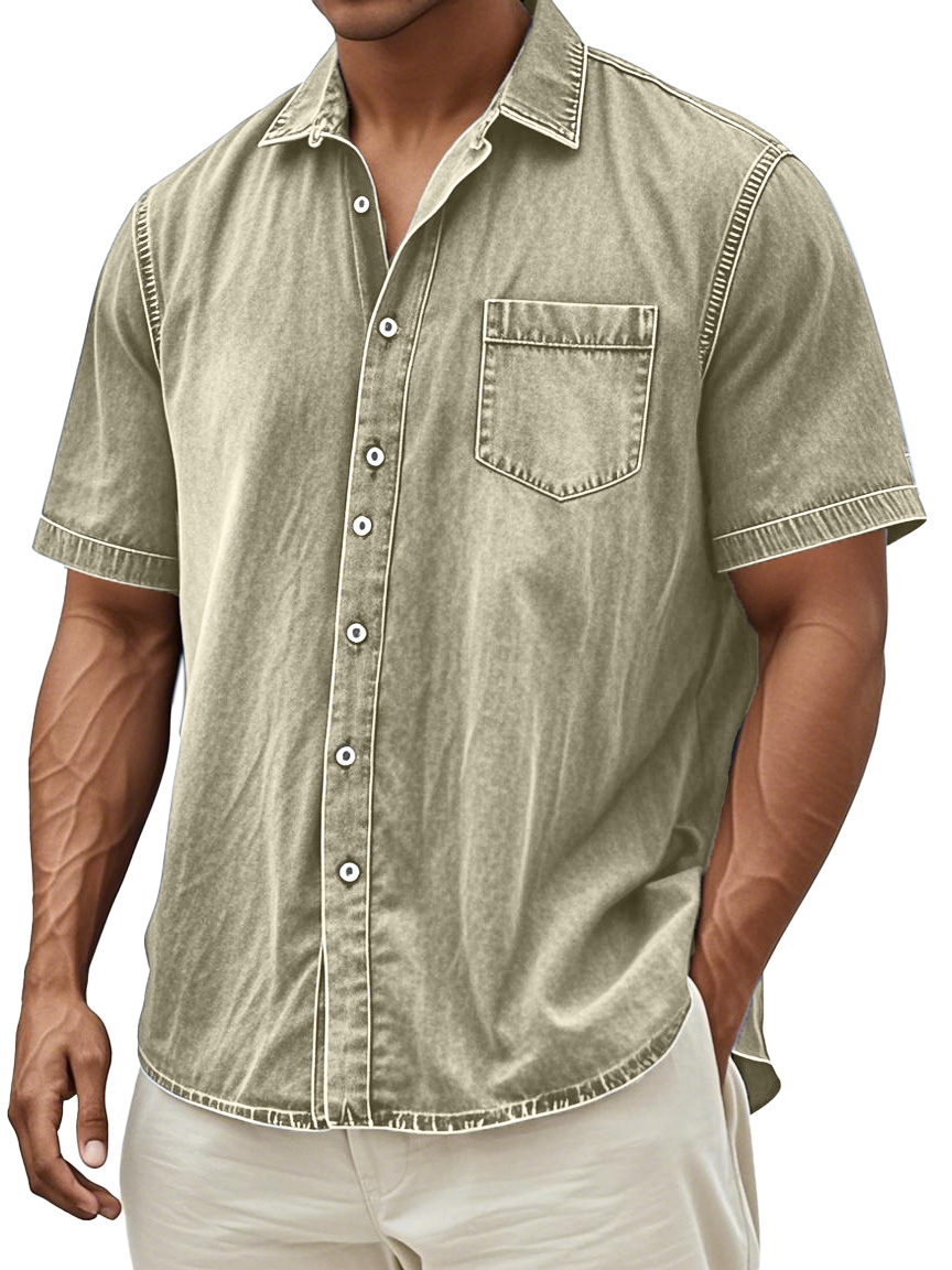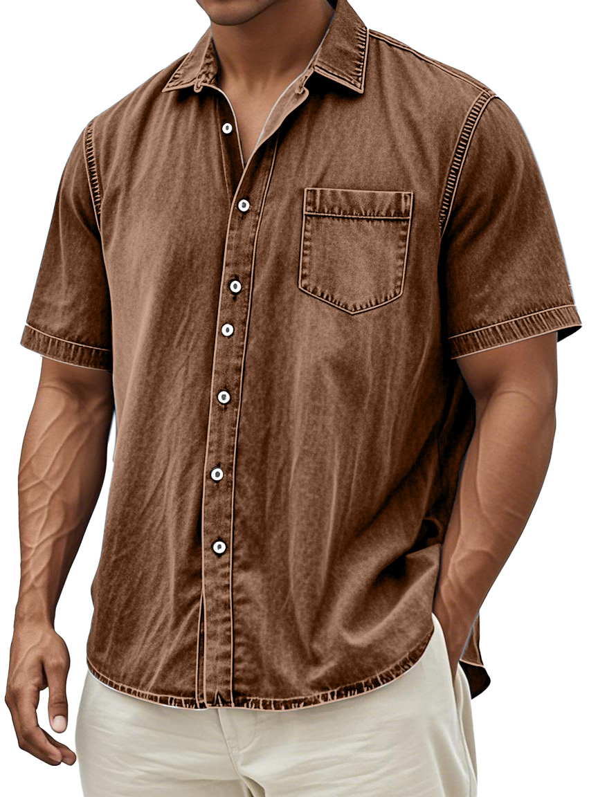 Men's Retro Solid Color Simple Everyday Short Sleeve Button Lapel Shirt