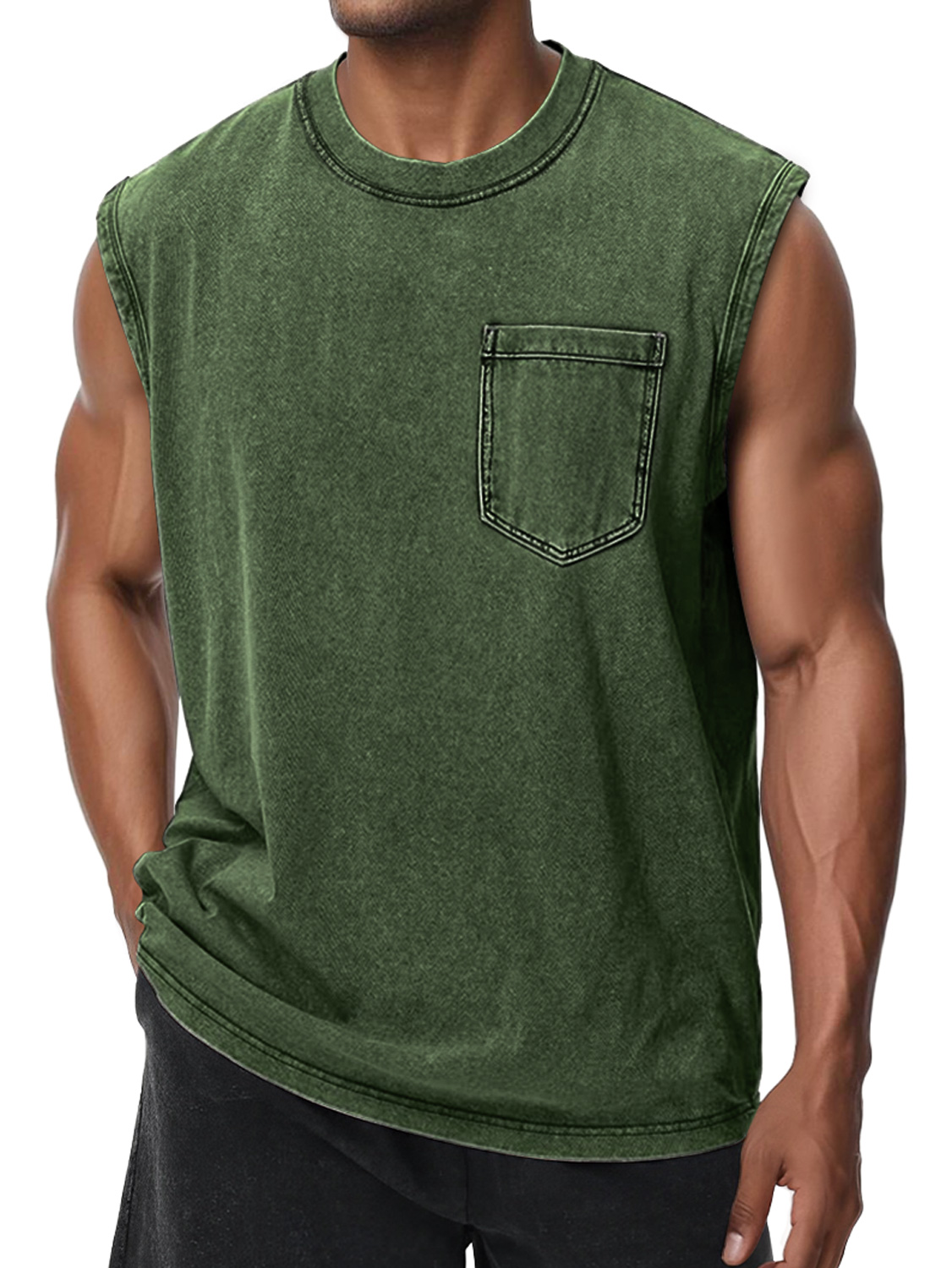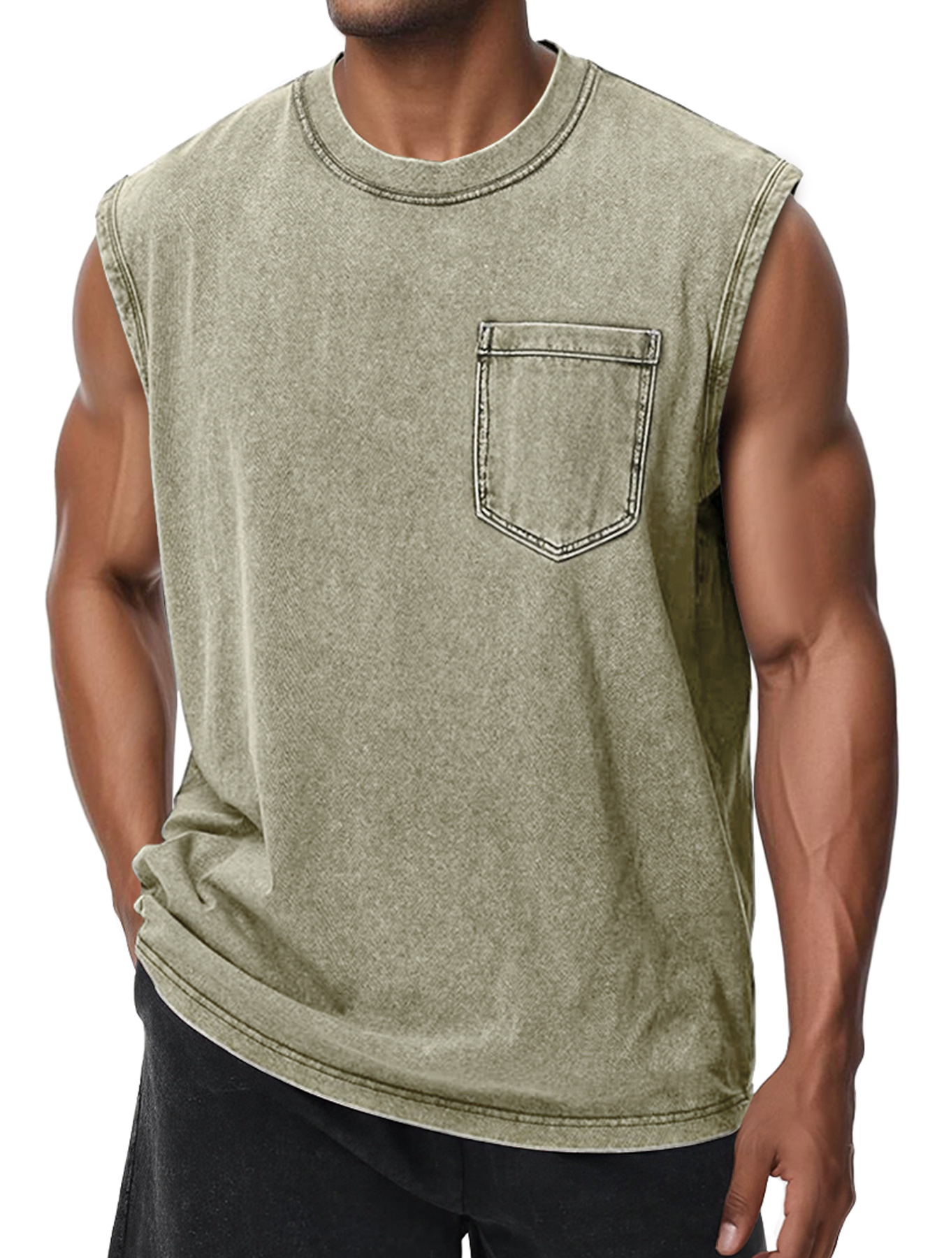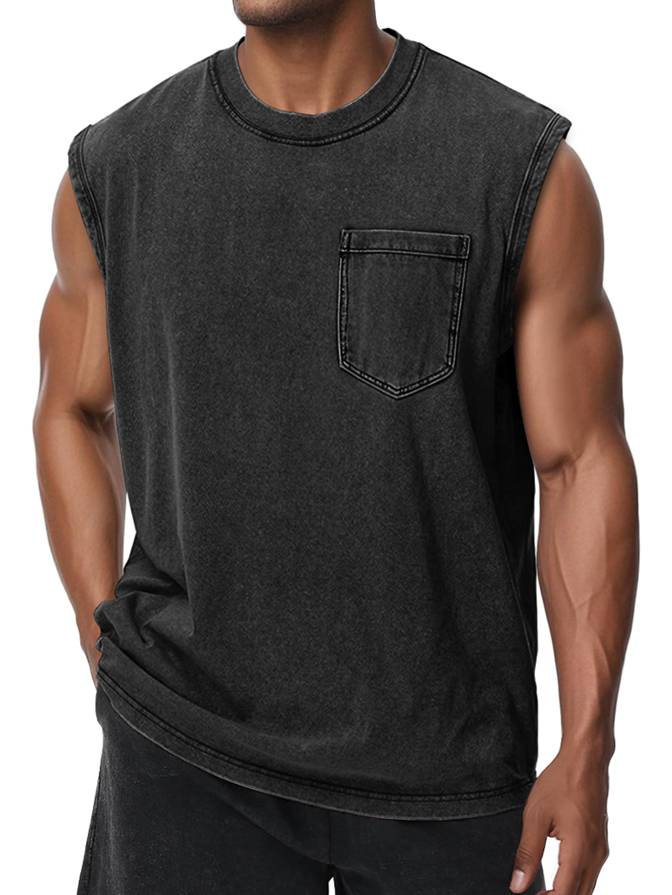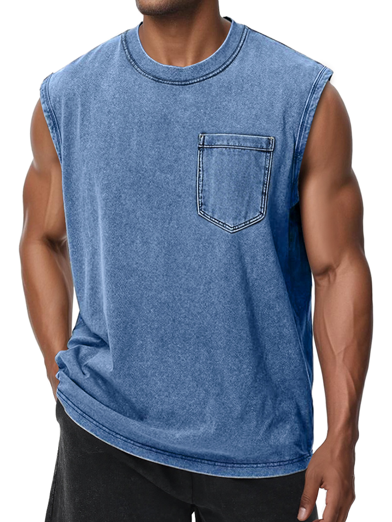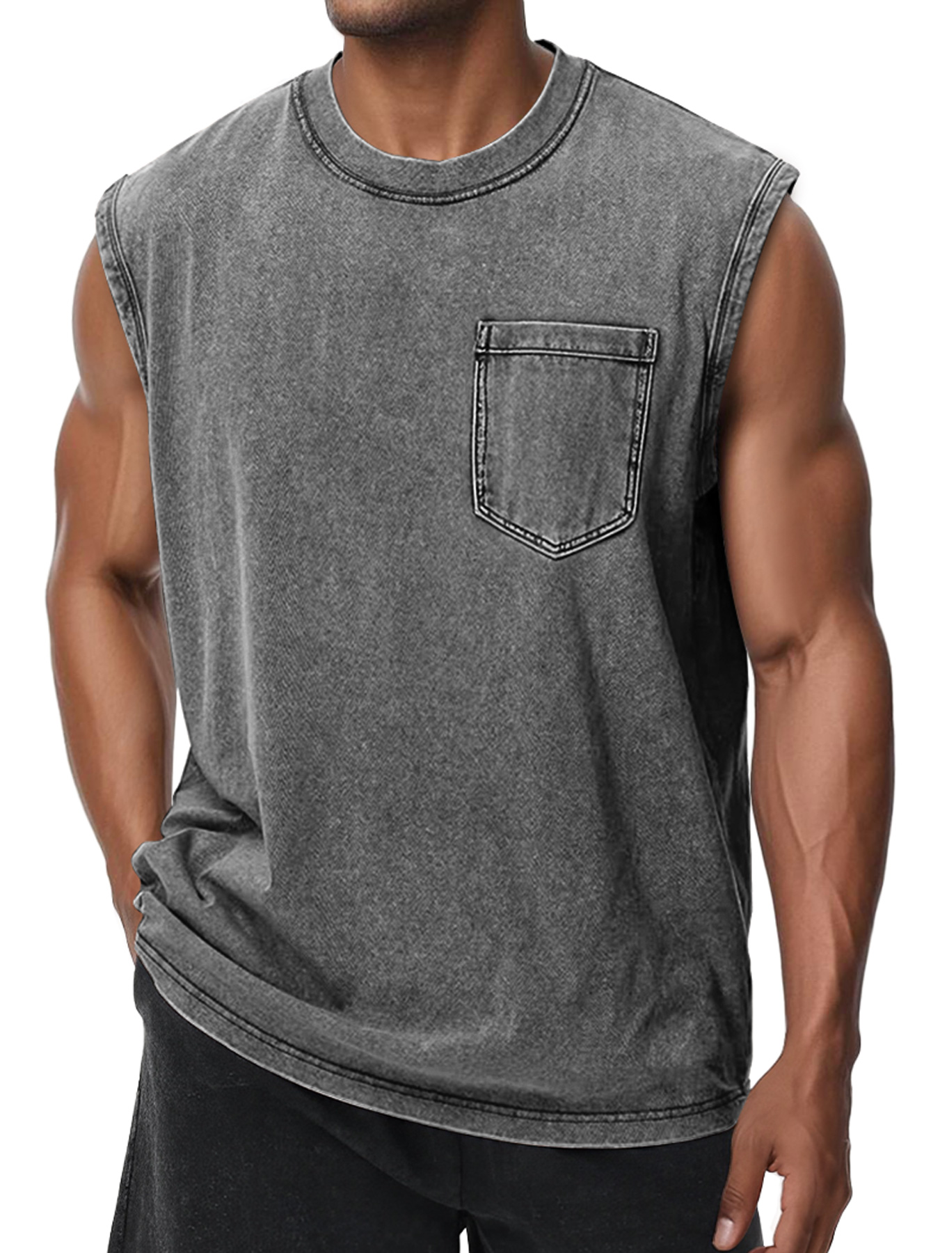 Men's Retro Washed Cotton Round Neck Pocket Casual Sleeveless Vest
