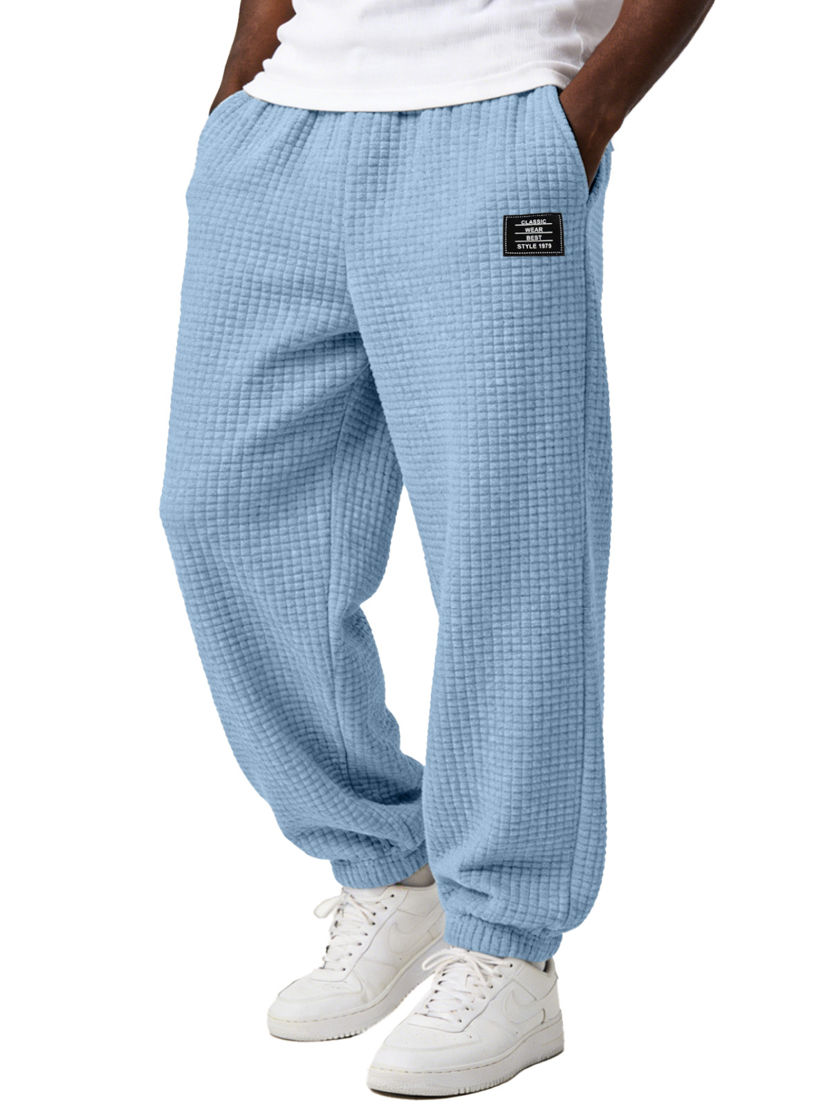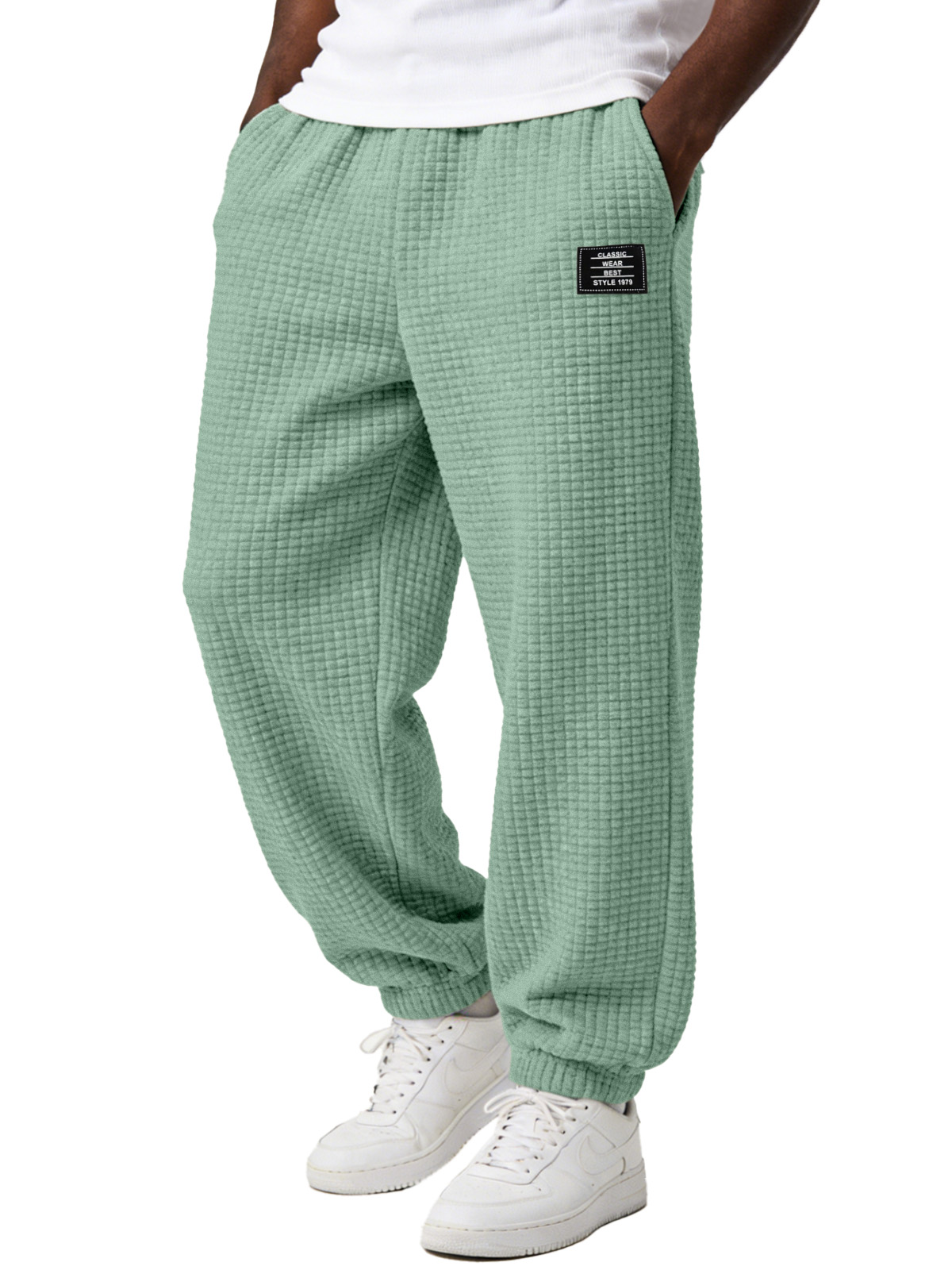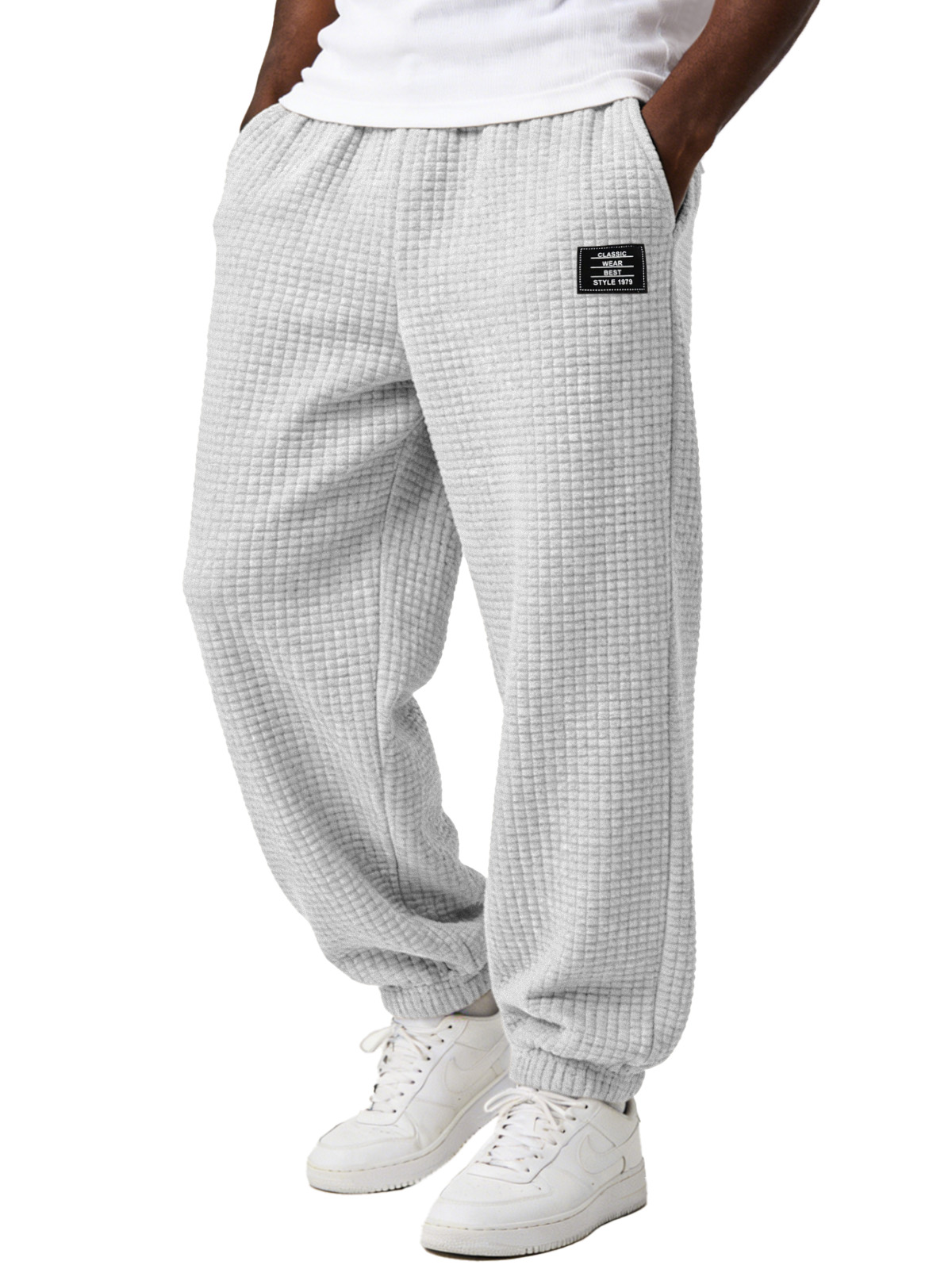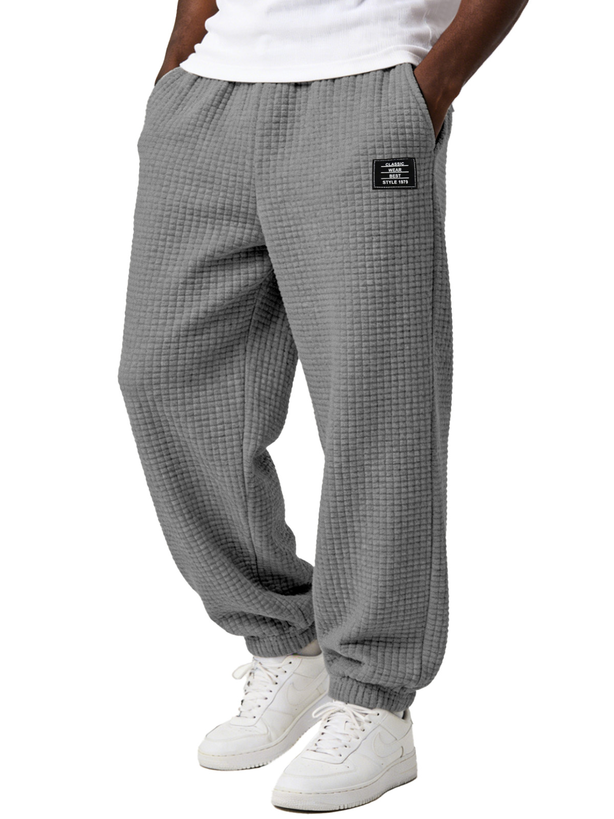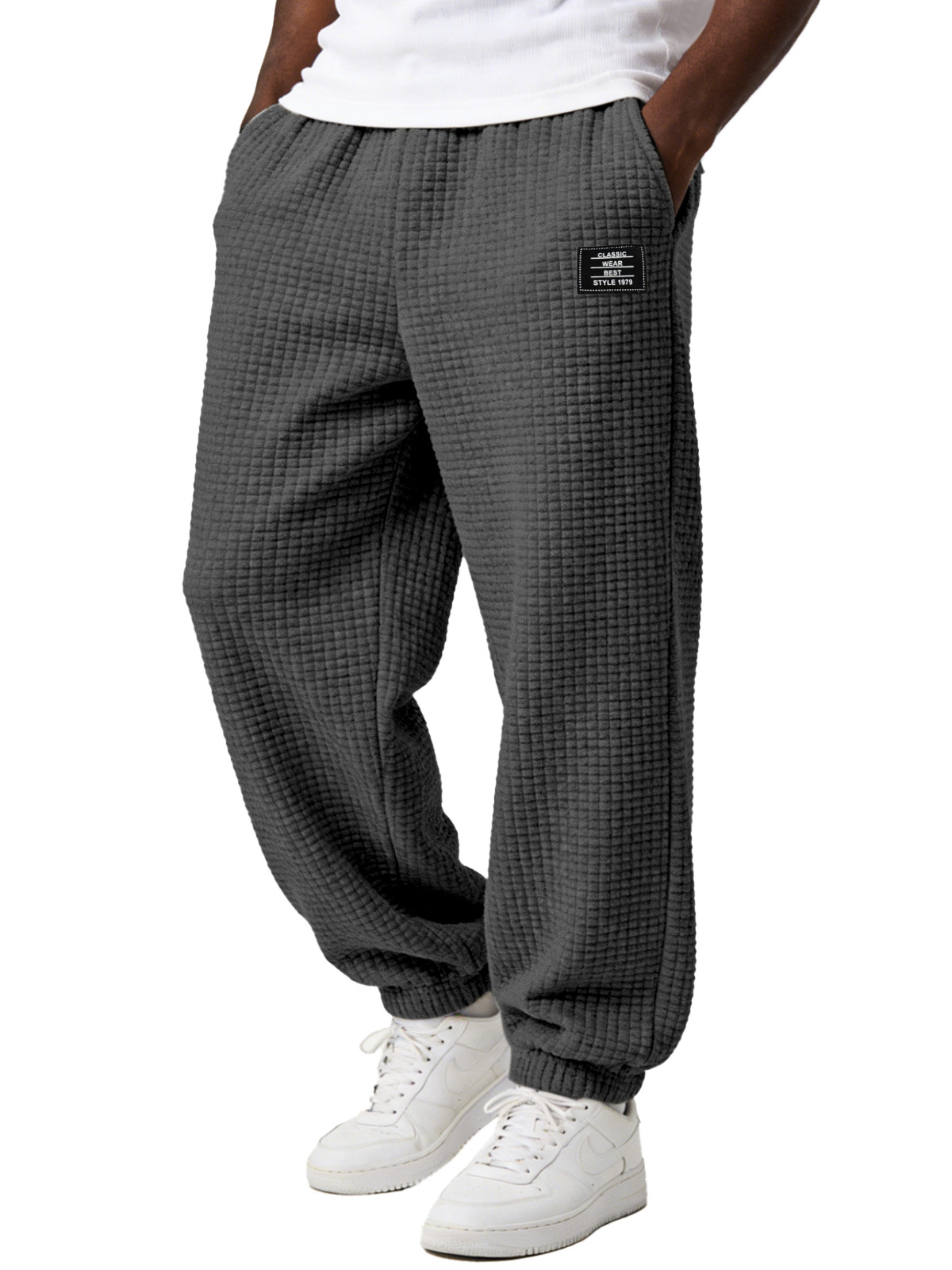 Men's Simple and Versatile Checkered Comfortable Loose-fitting Jogger Trousers with Embroidery