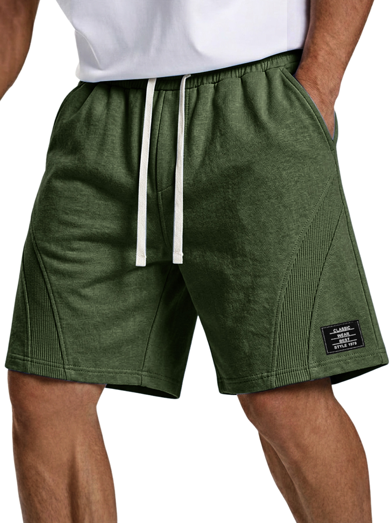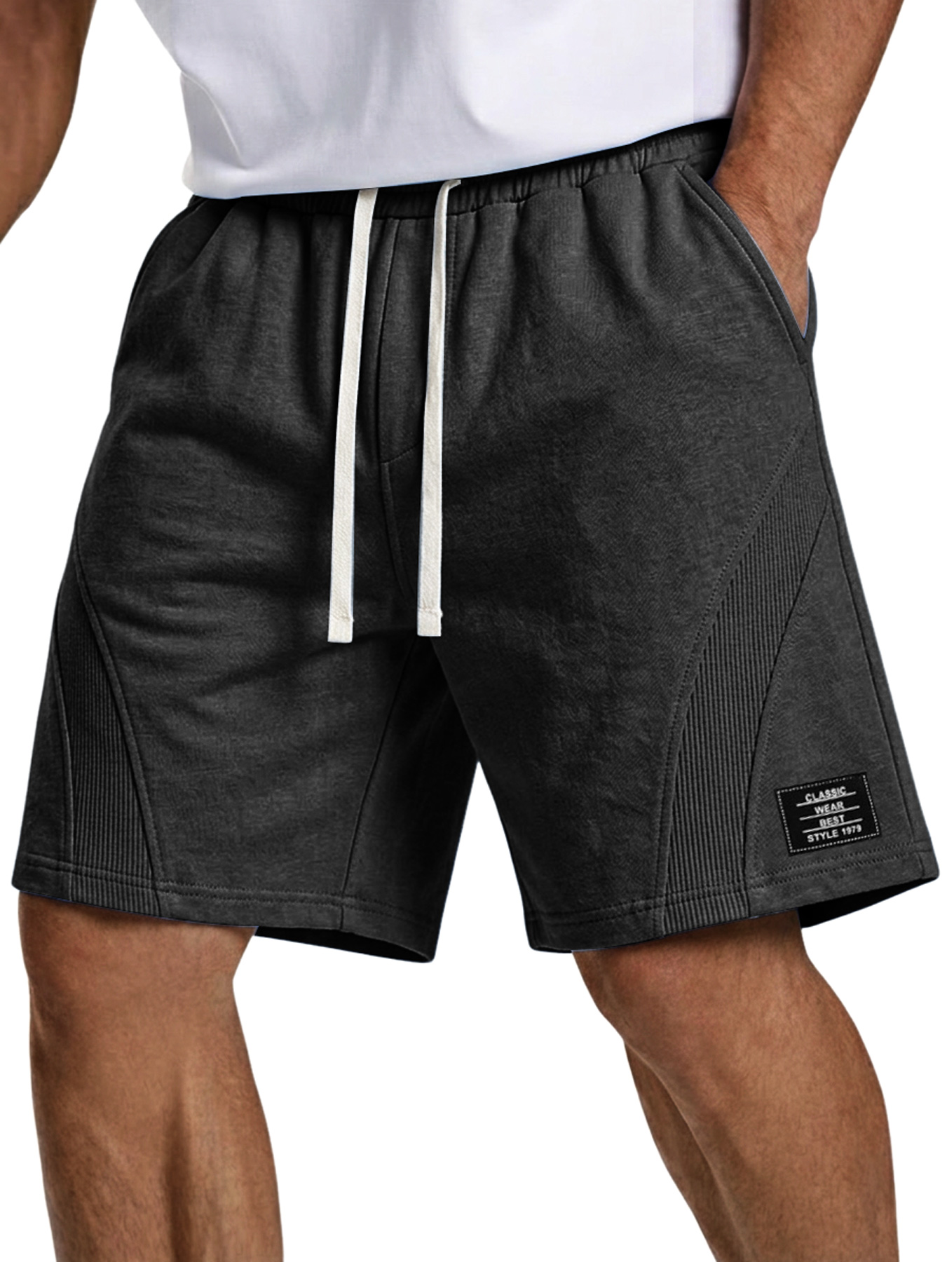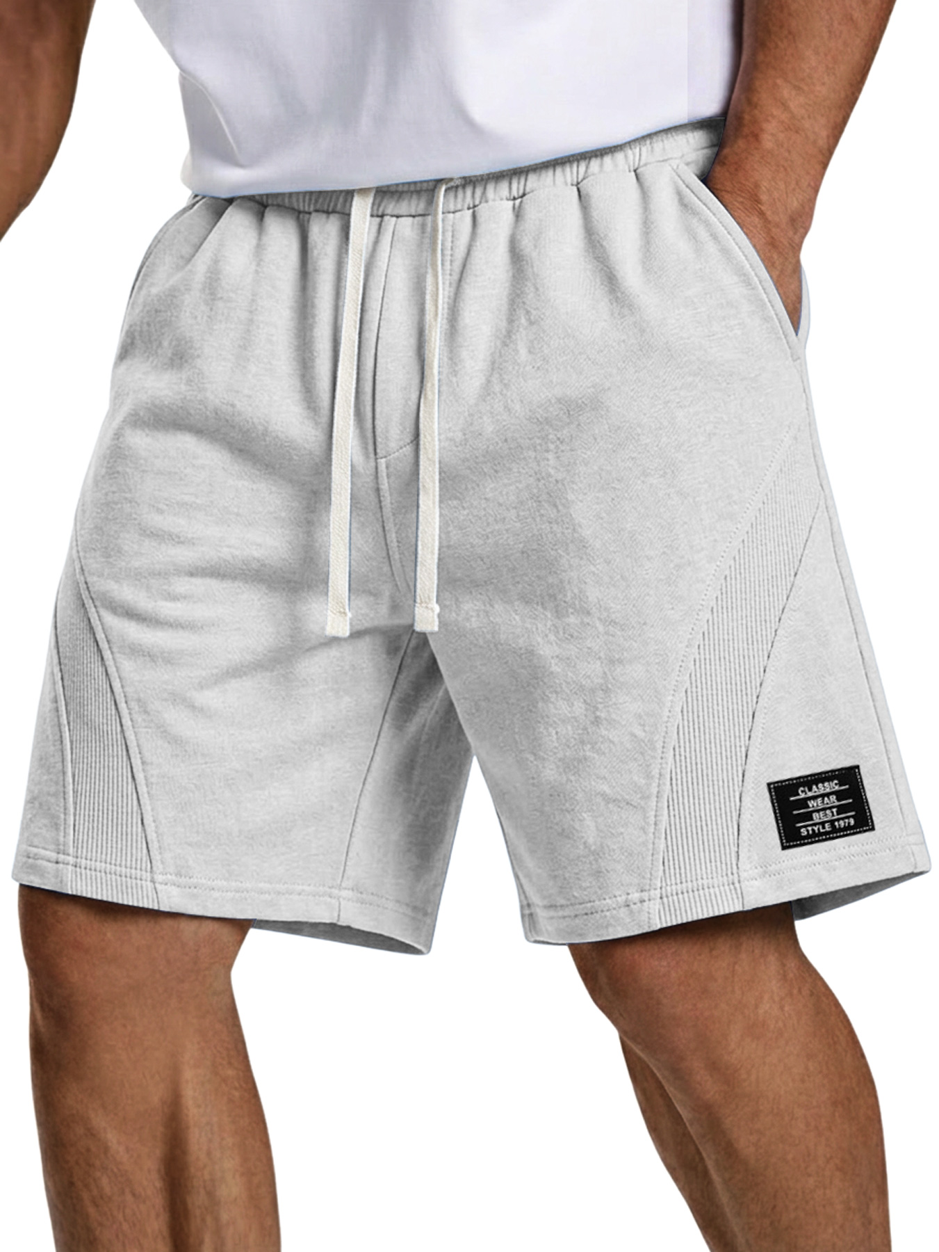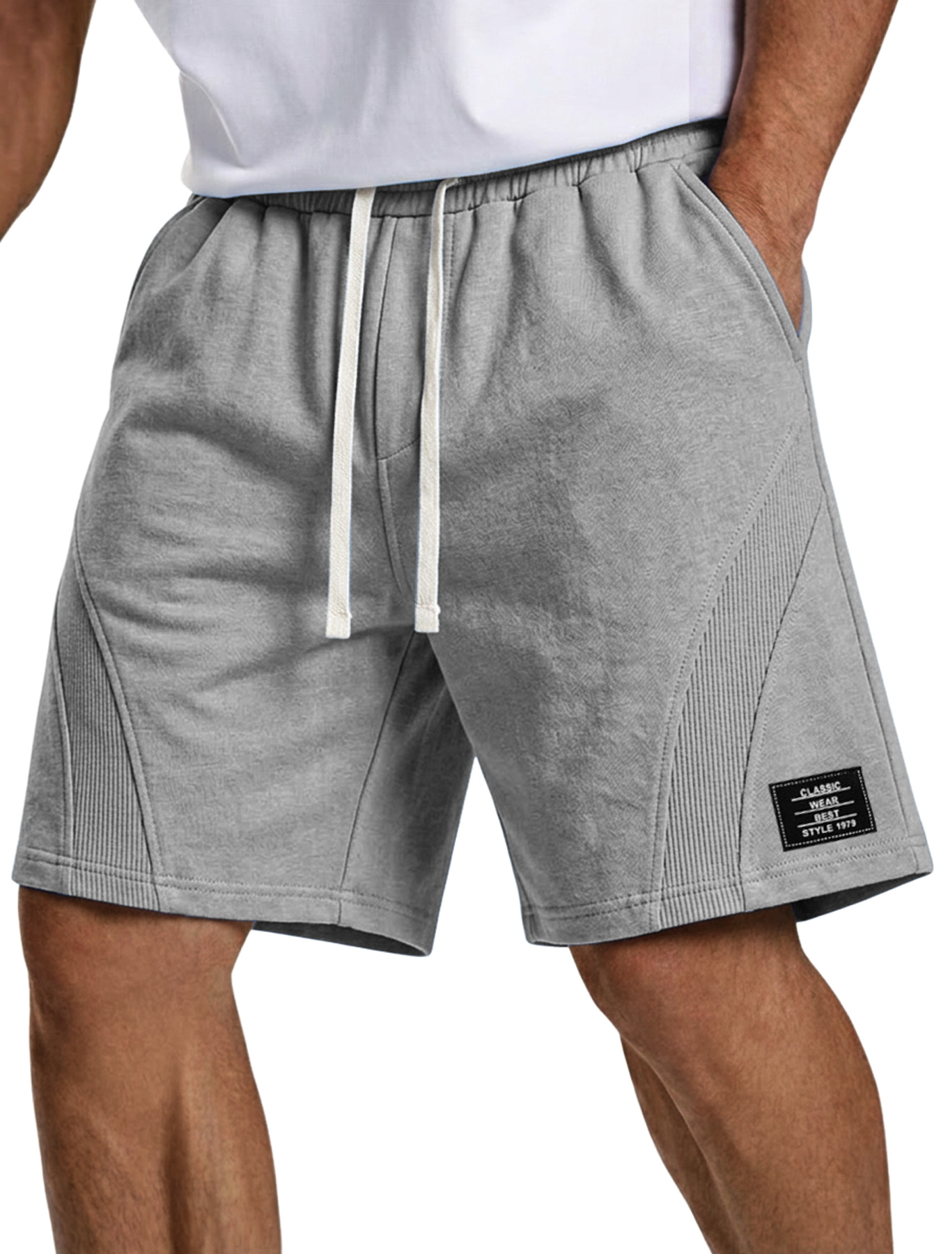 Men's Simple Embroidered Logo Patchwork Design Casual Loose Shorts