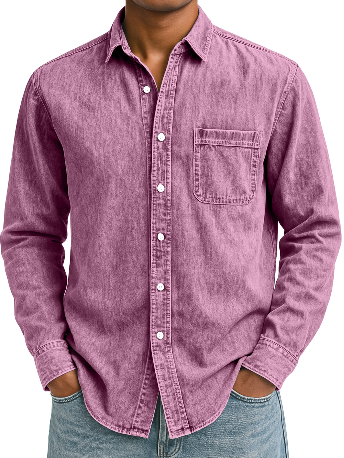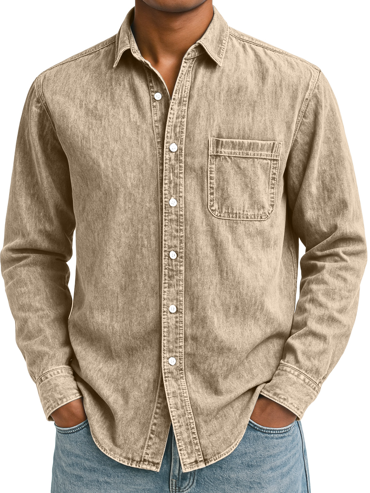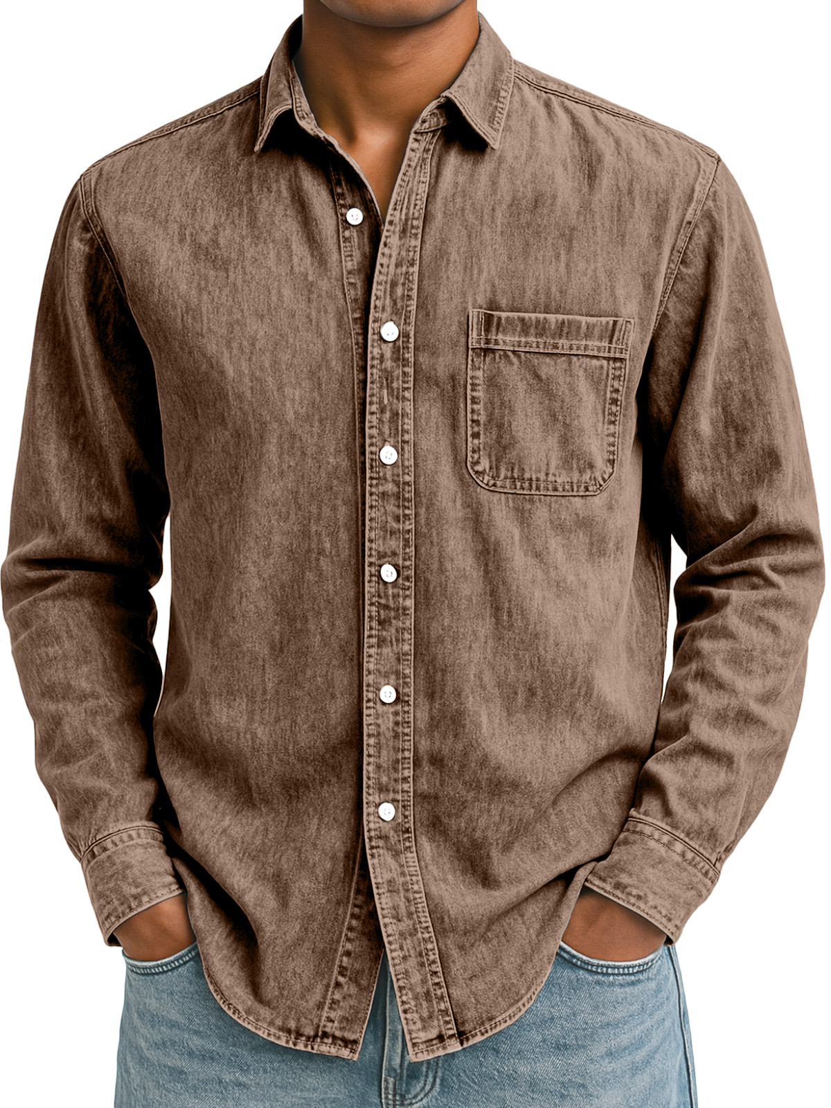 Men's Simple Retro Solid Color Lapel Long-sleeved Shirt