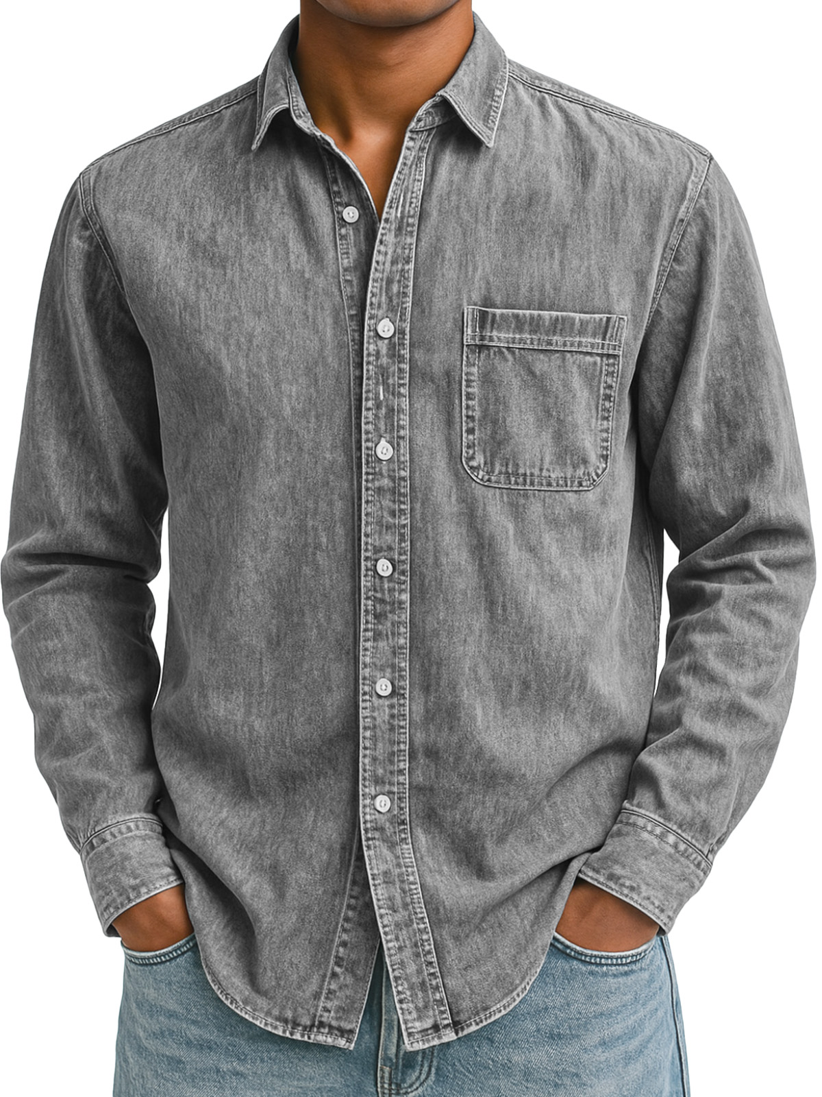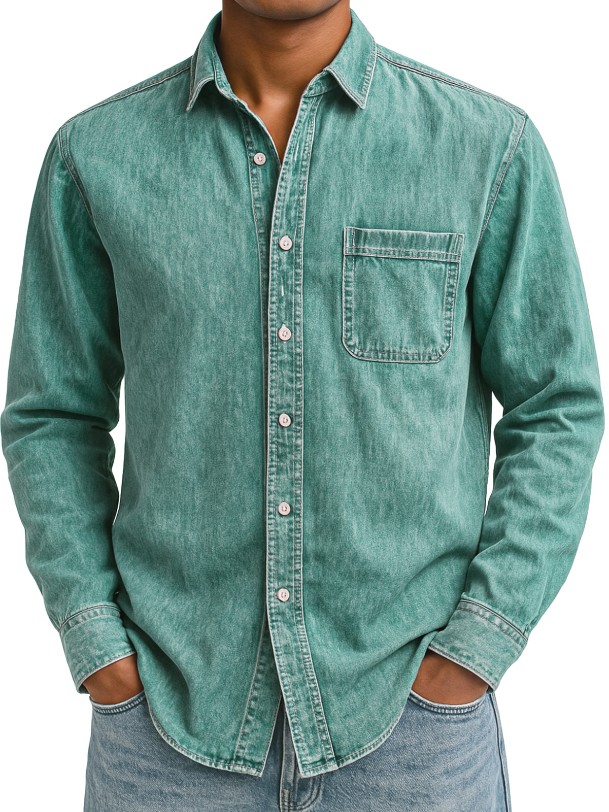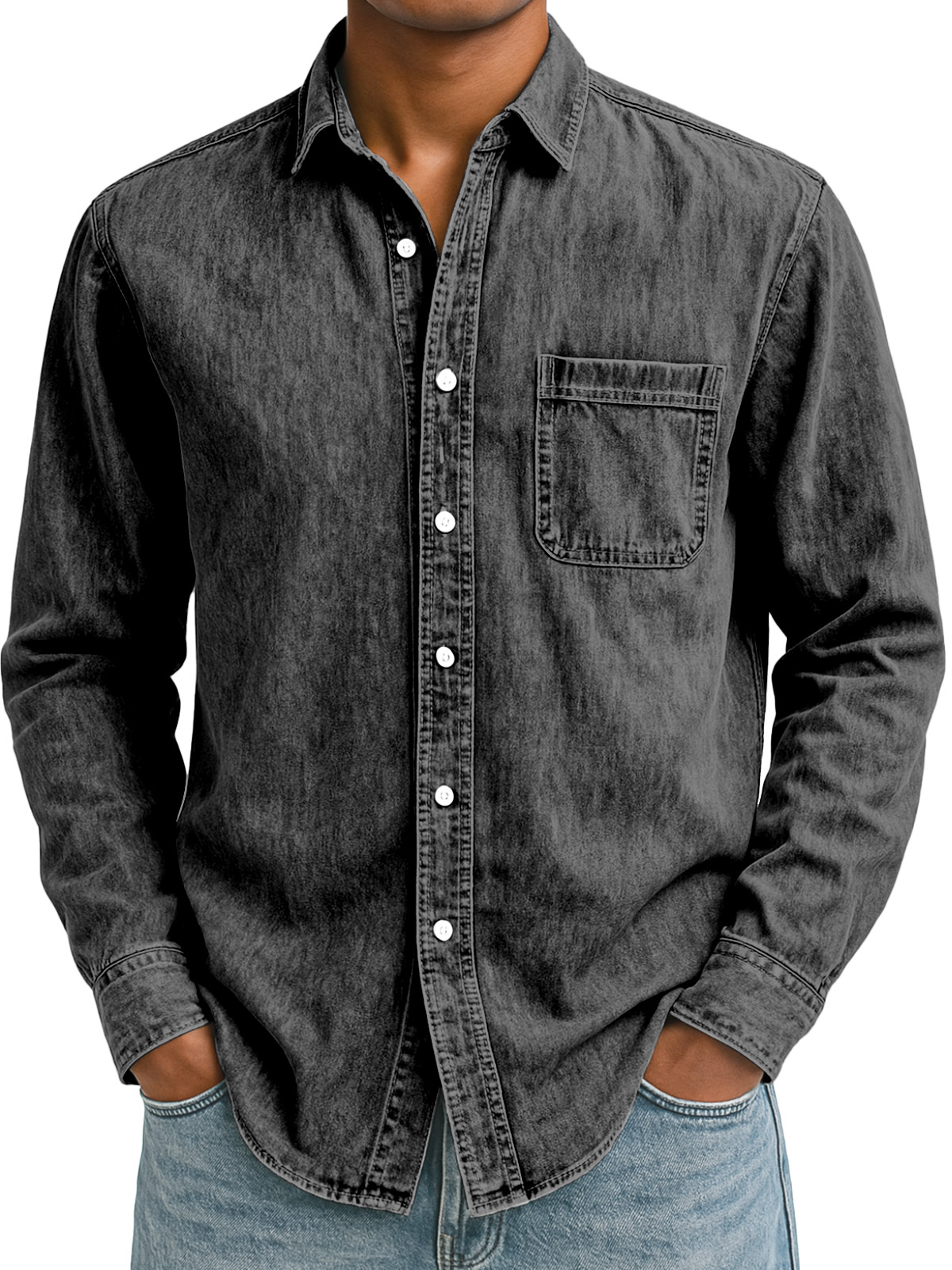 Men's Simple Retro Solid Color Lapel Long-sleeved Shirt
