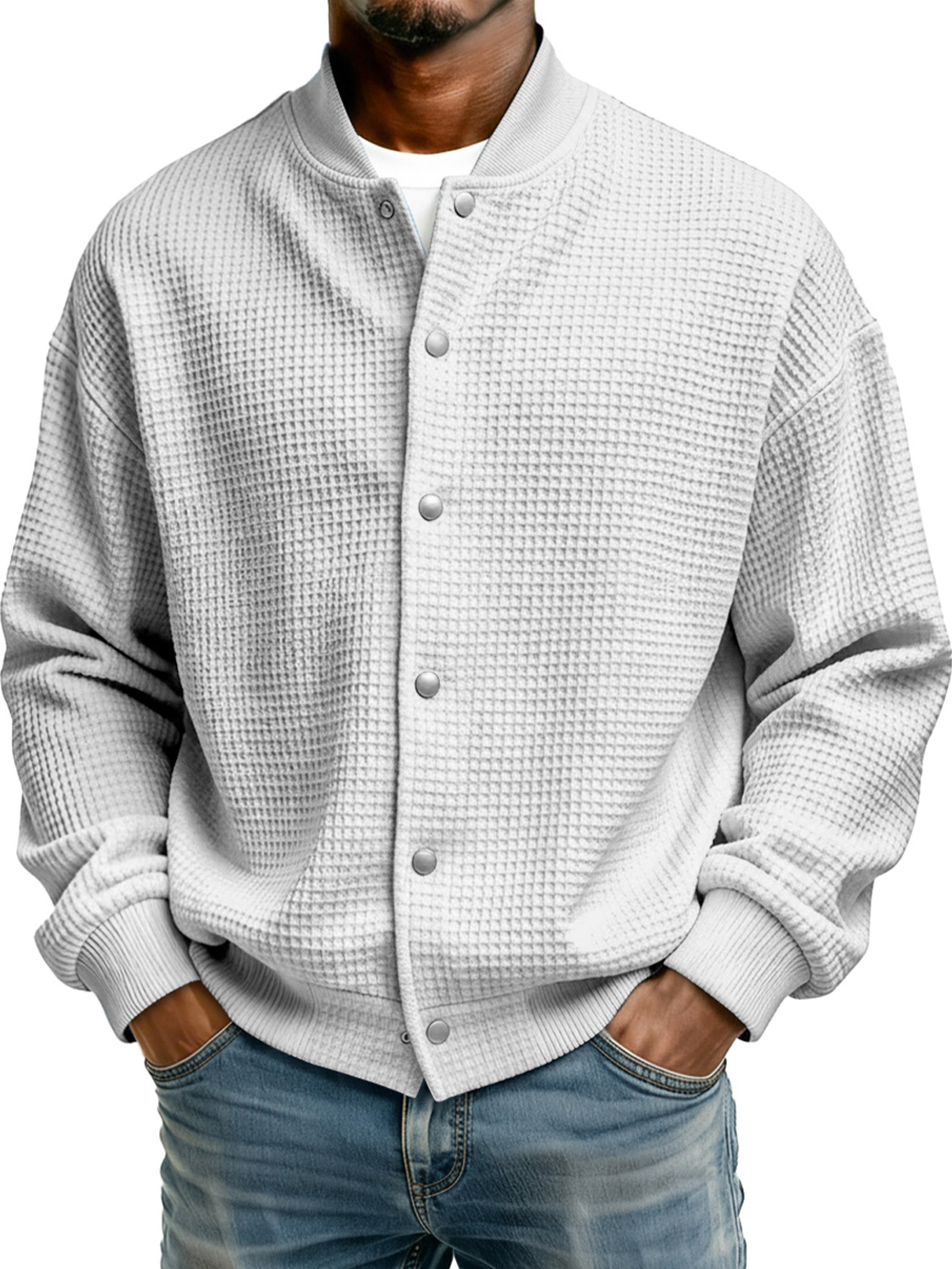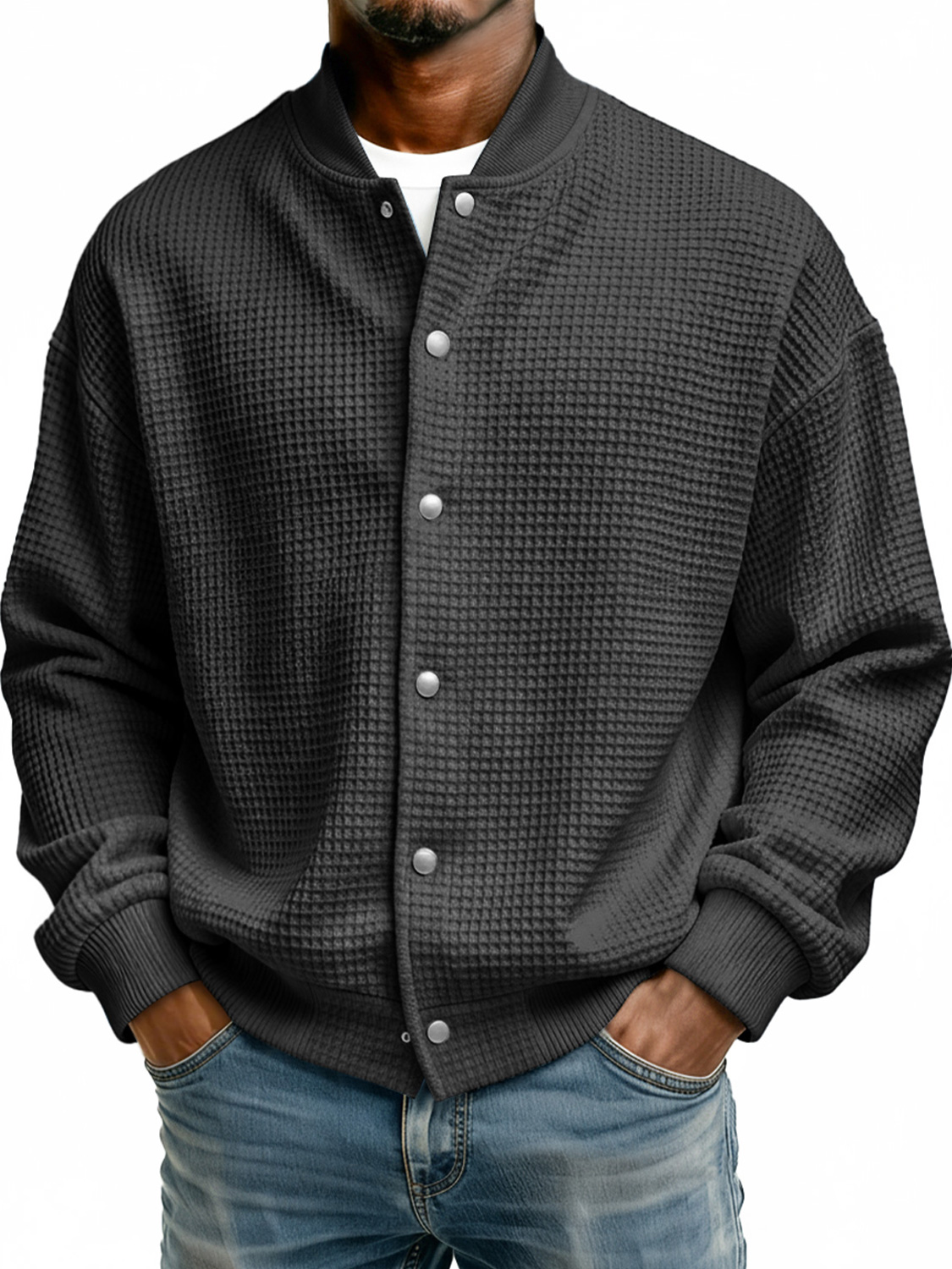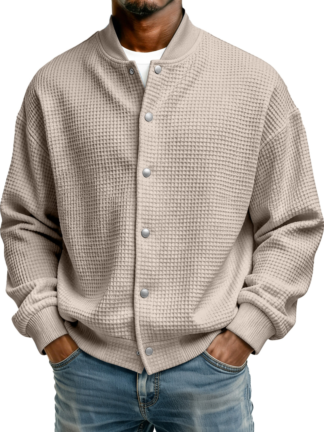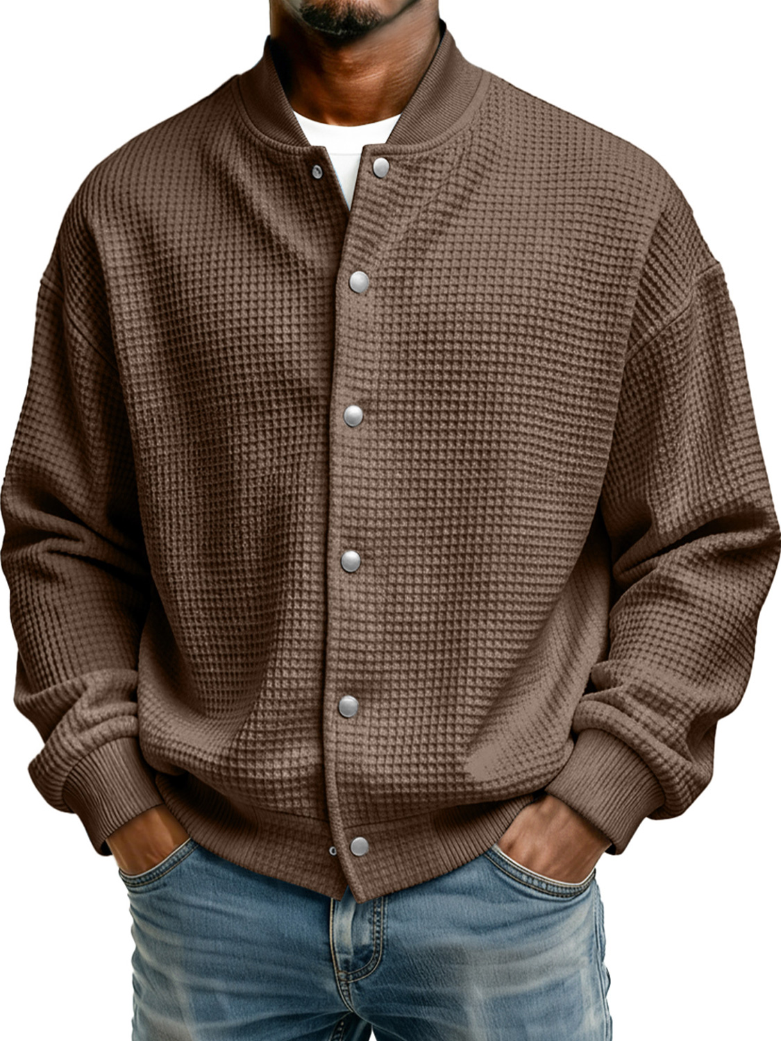 Men's Simple Stand Collar Waffle Casual Jacket