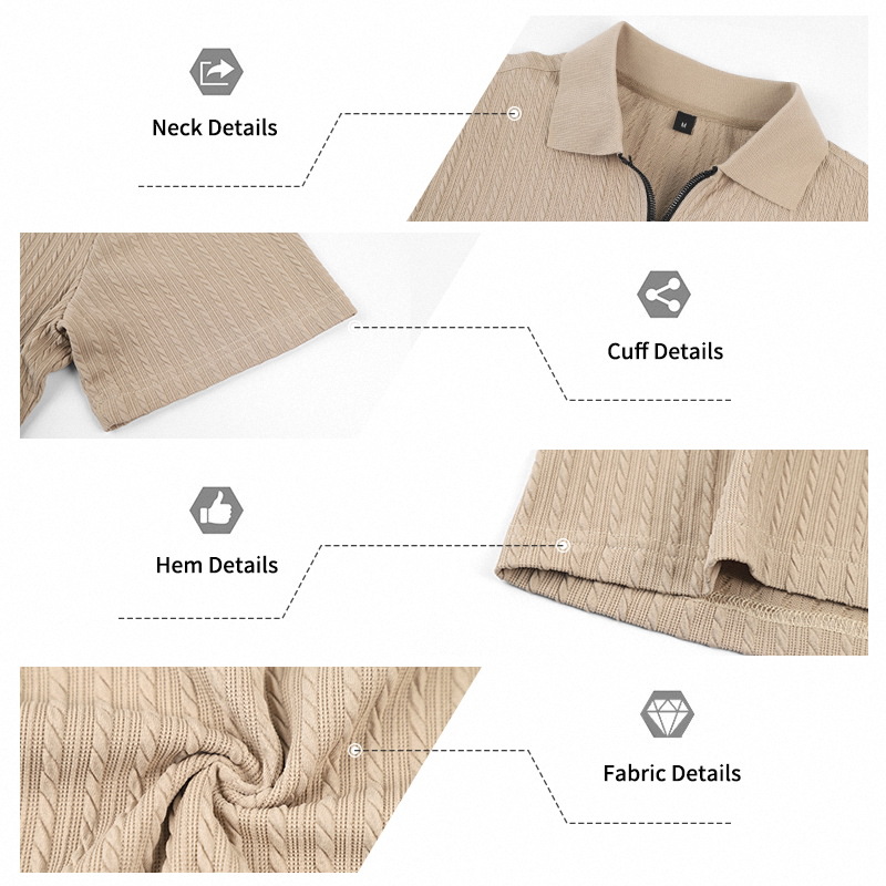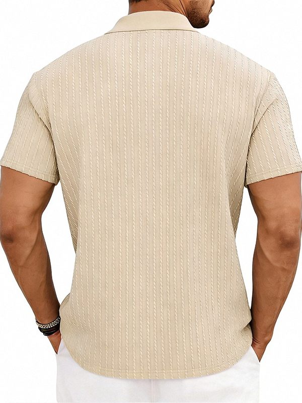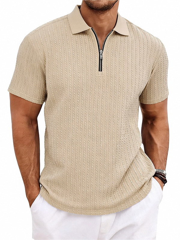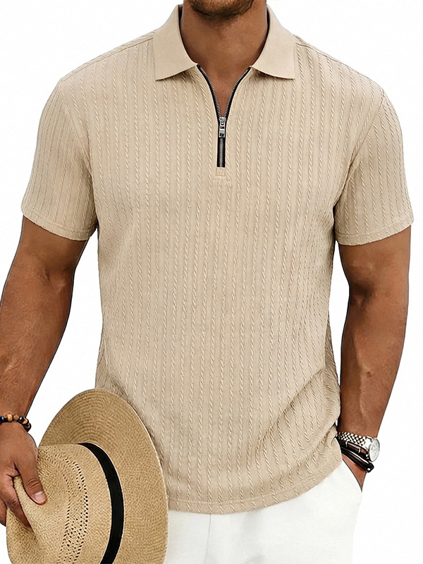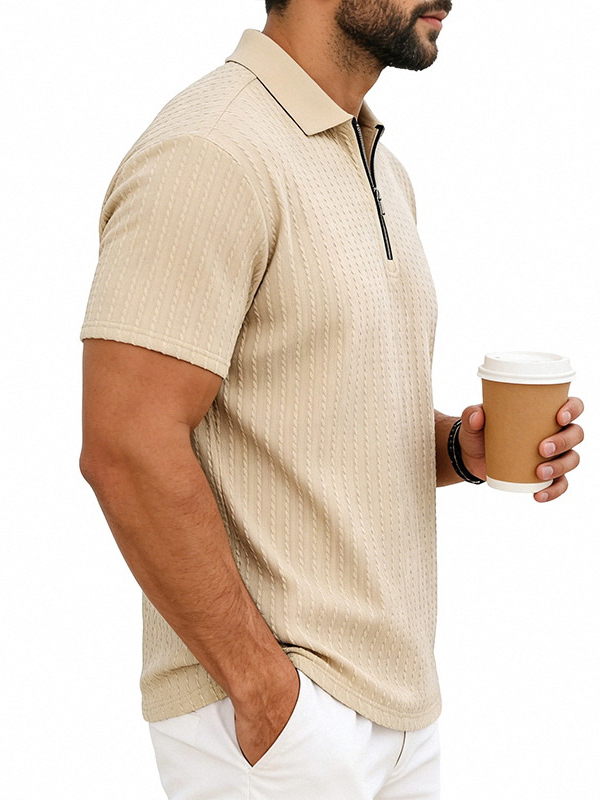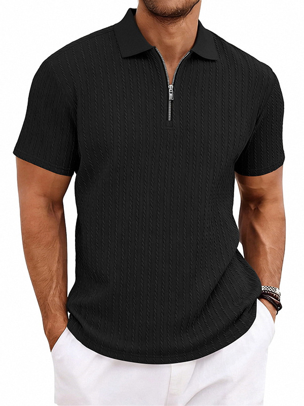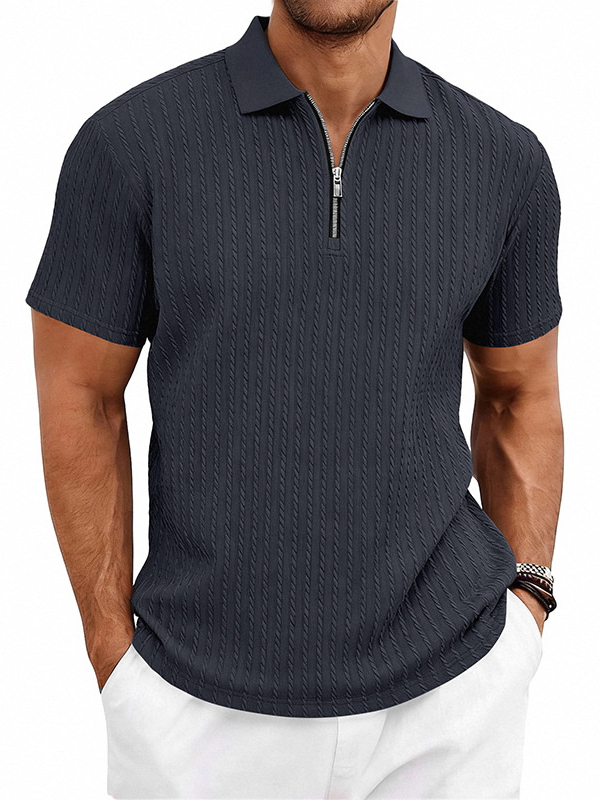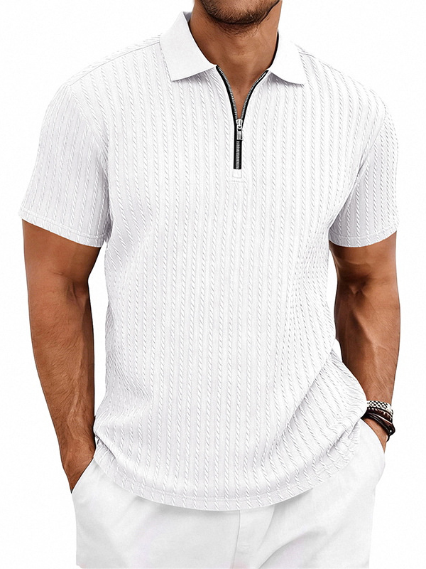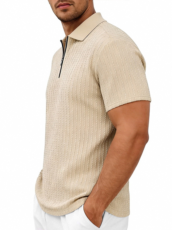 Men's Striped Jacquard Zip Up Short Sleeved Polo Shirt