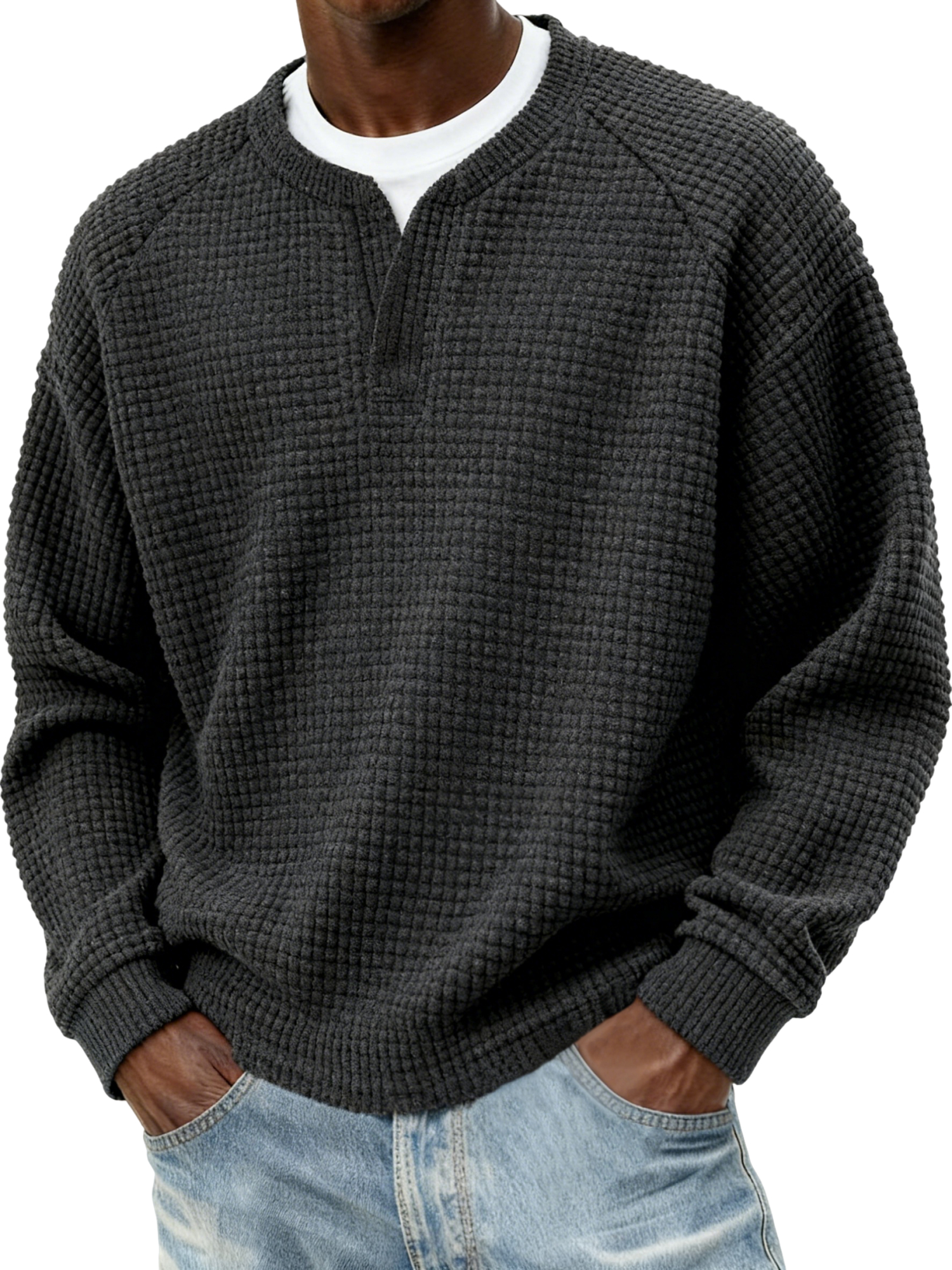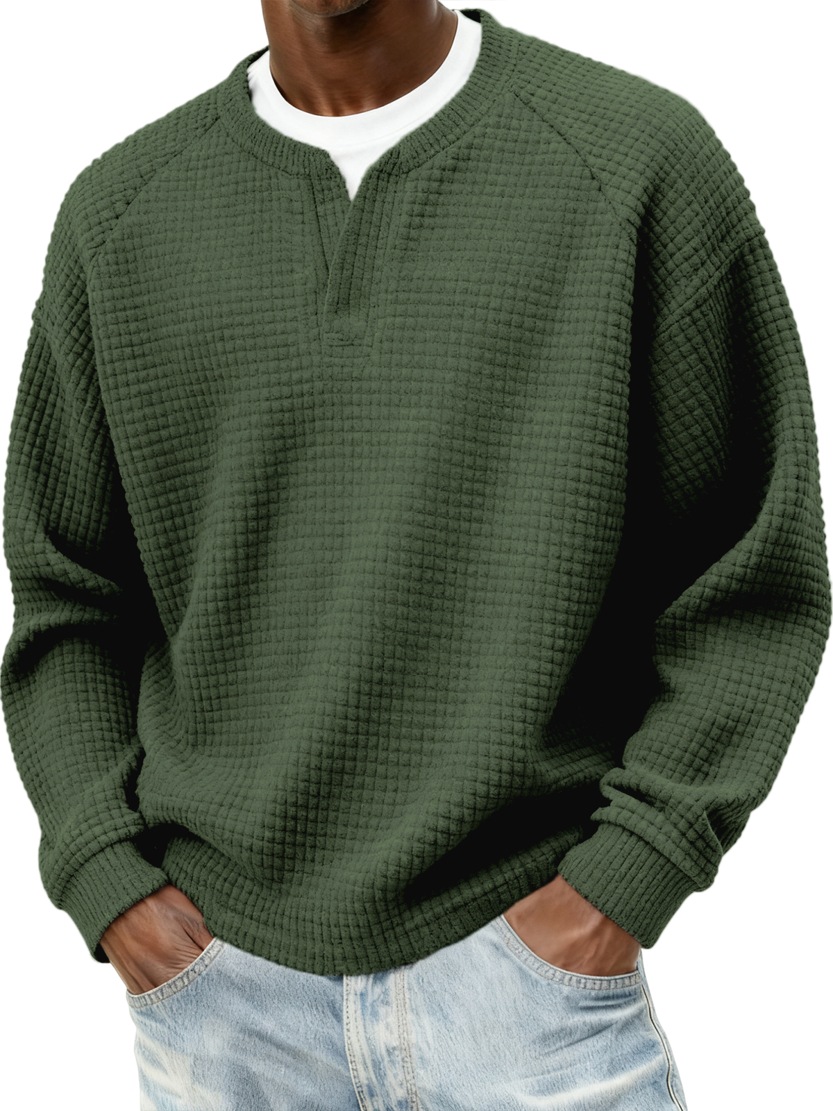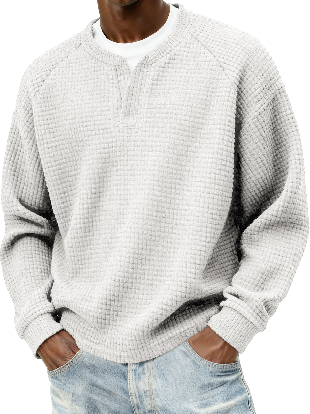 Men's Stylish Cord Waffle Fake Two-Piece V-neck Raglan Sleeve Pullover Sweatshirt