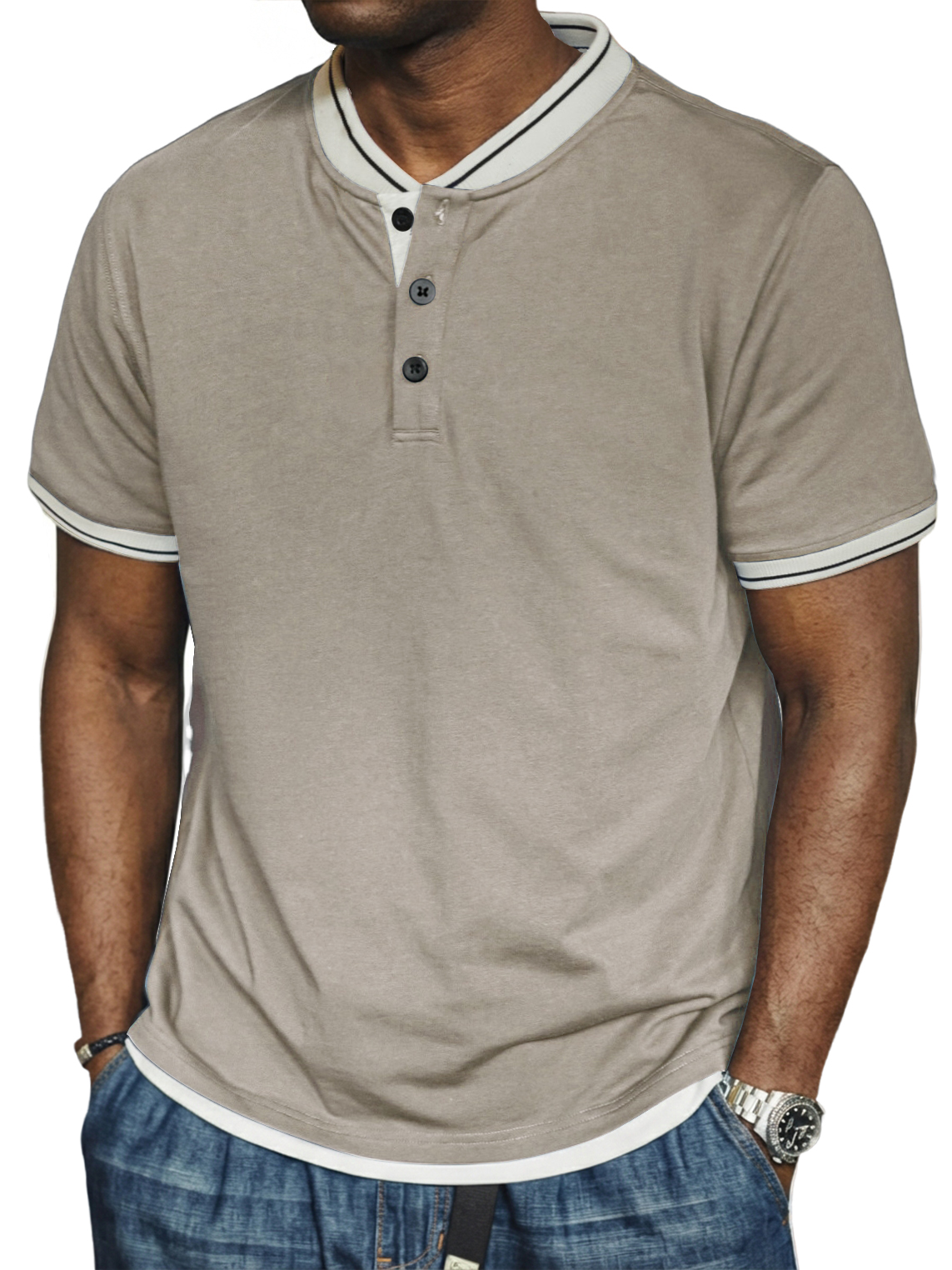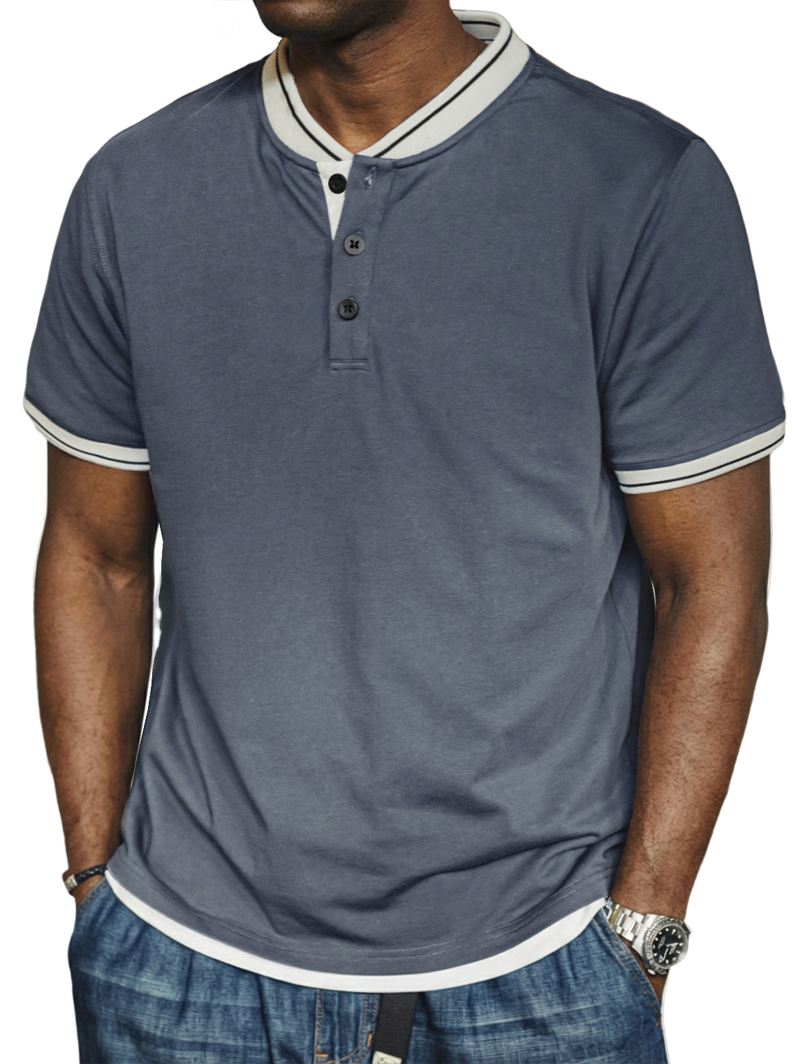 Men's Urban Casual Henry Color Block Classic T-Shirt
