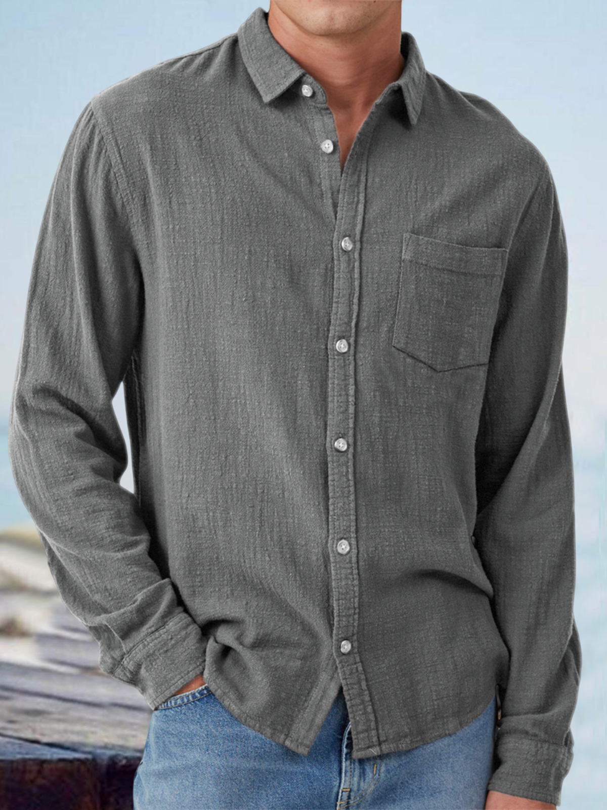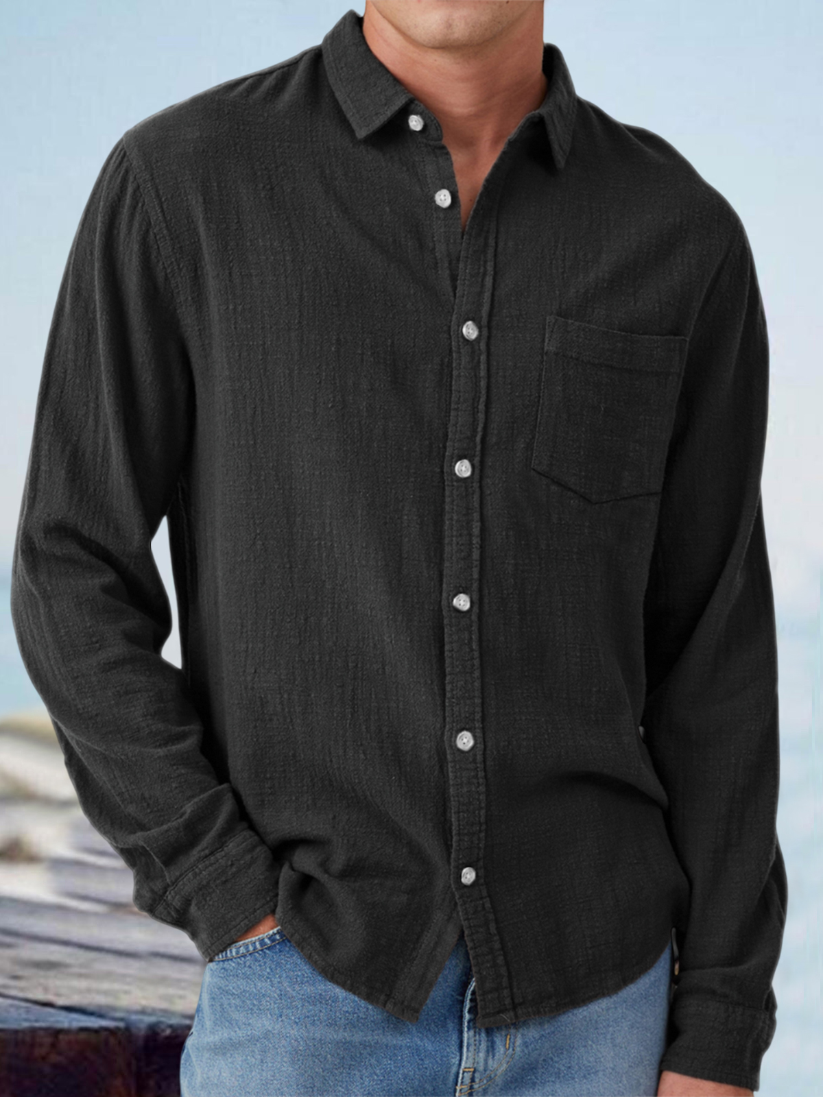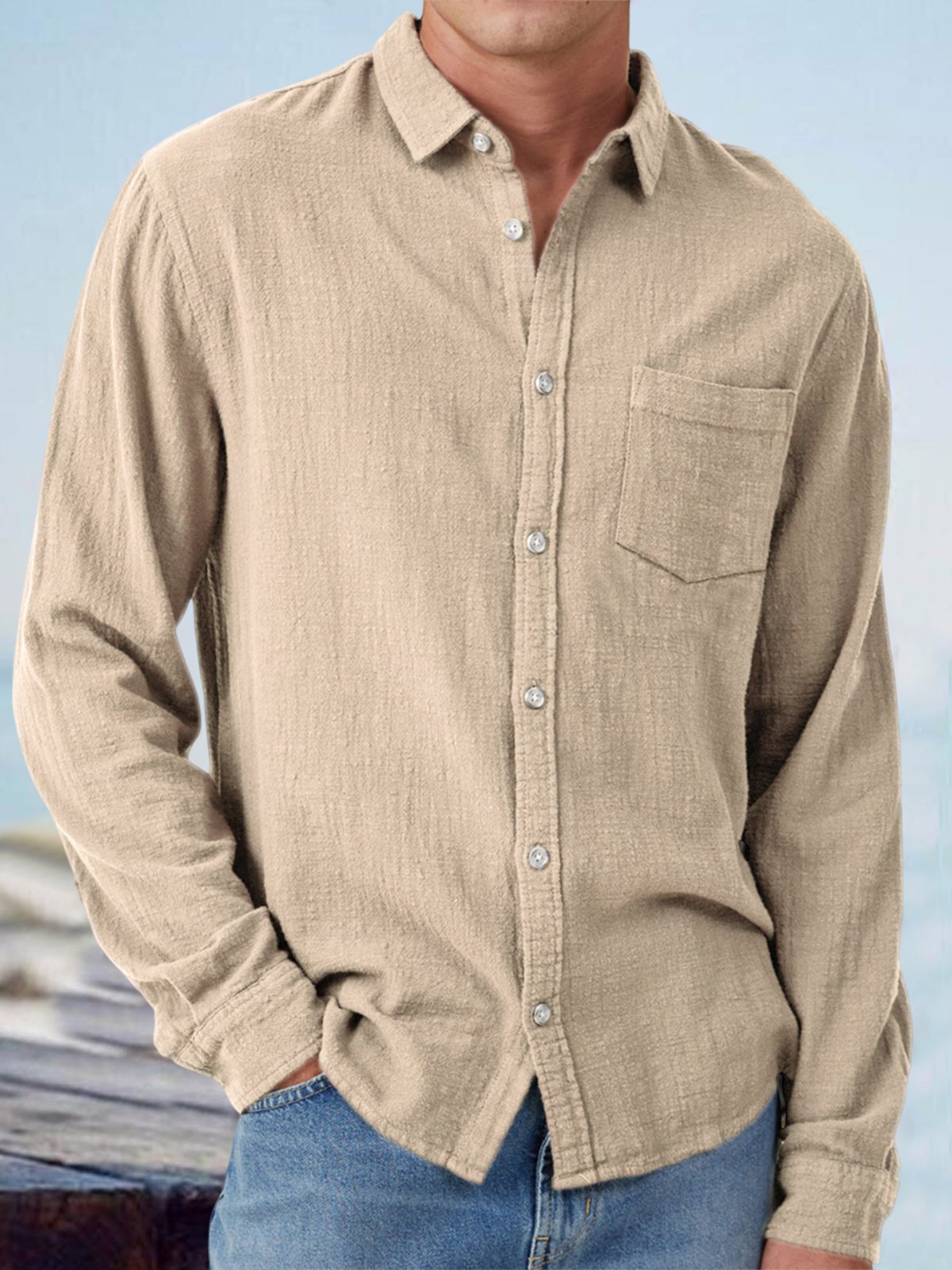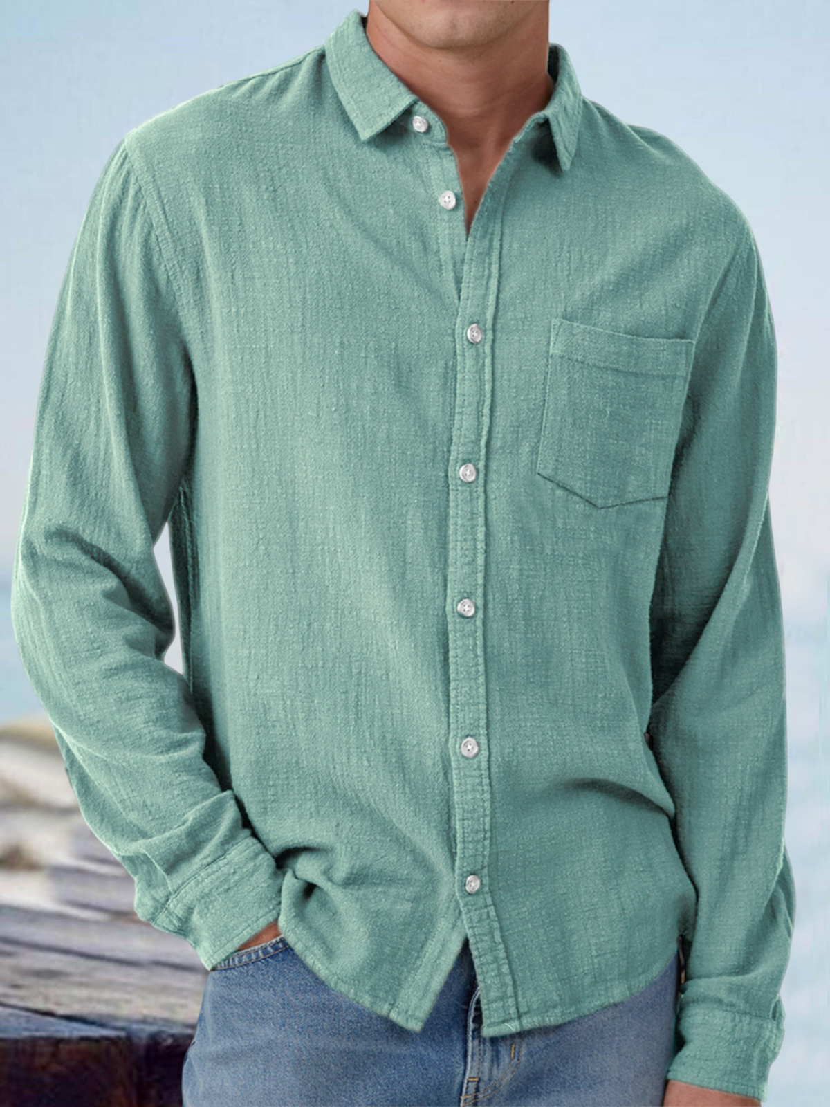 Men's Vacation Hawaiian Casual Vintage Cotton Casual Long Sleeve Shirt with Chest Pocket