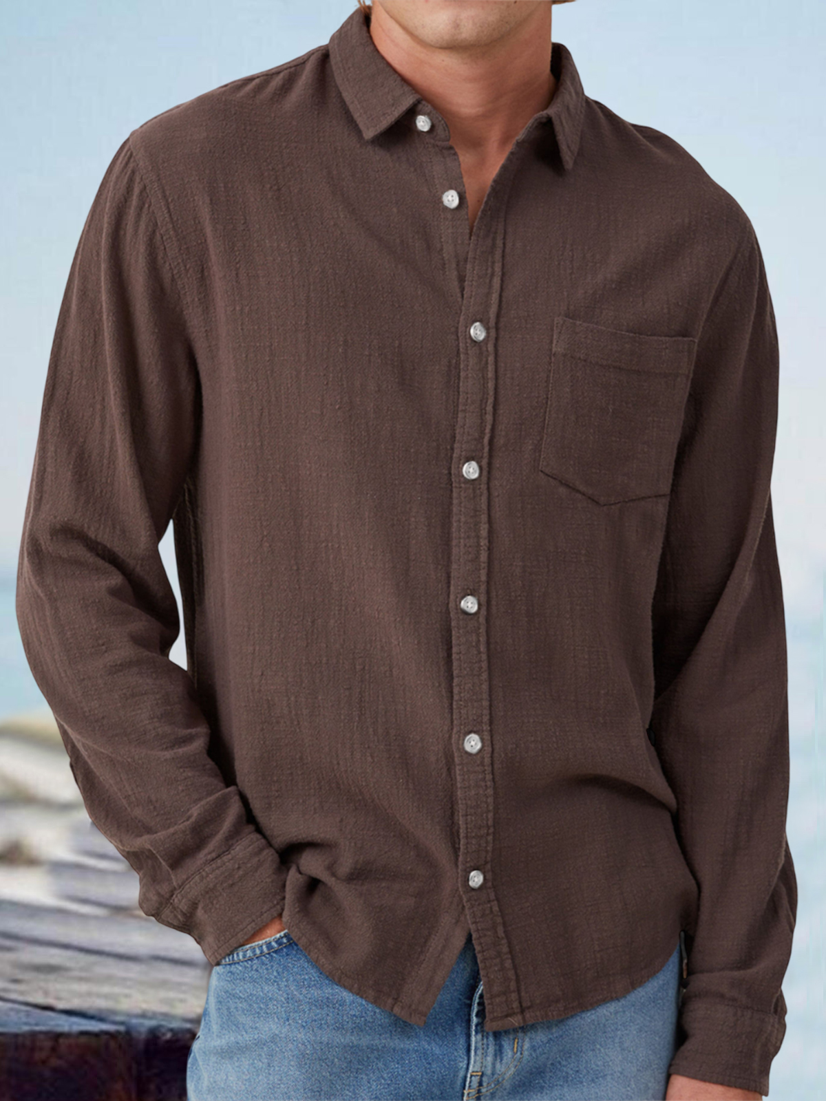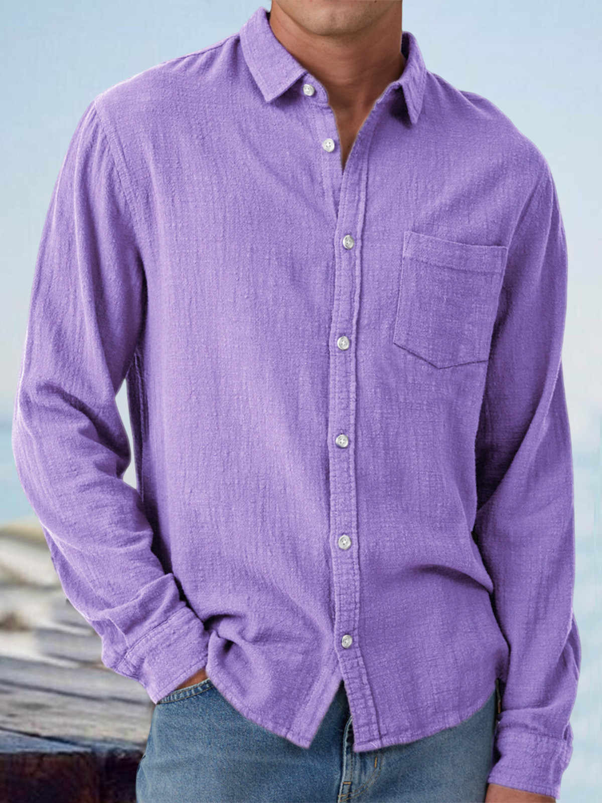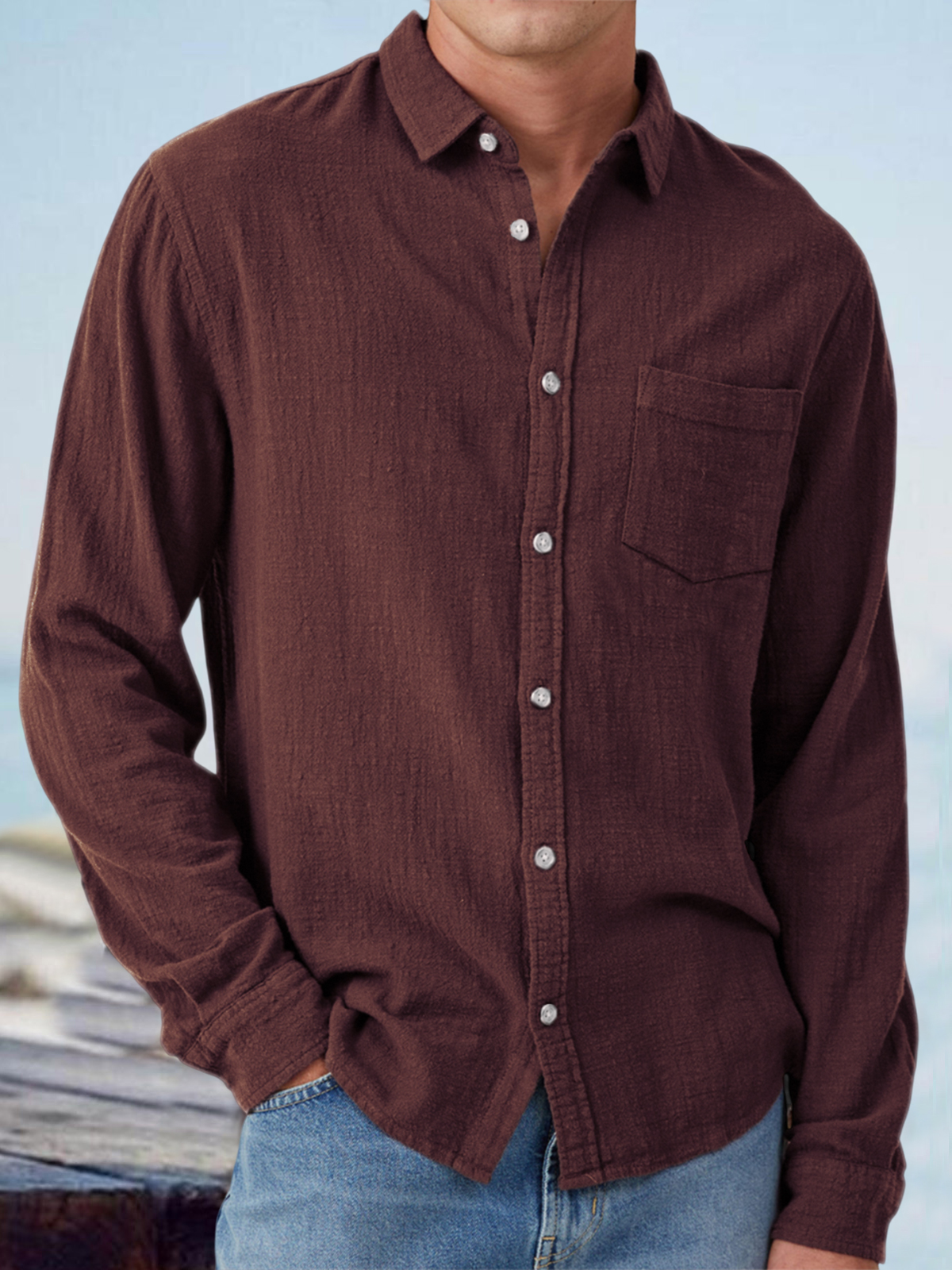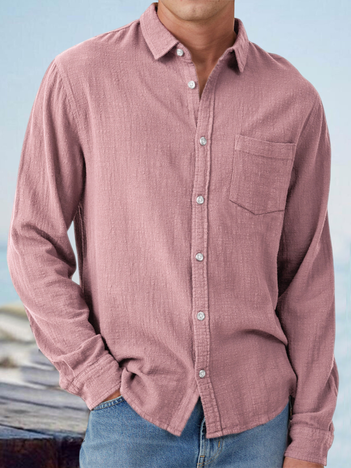 Men's Vacation Hawaiian Casual Vintage Cotton Casual Long Sleeve Shirt with Chest Pocket