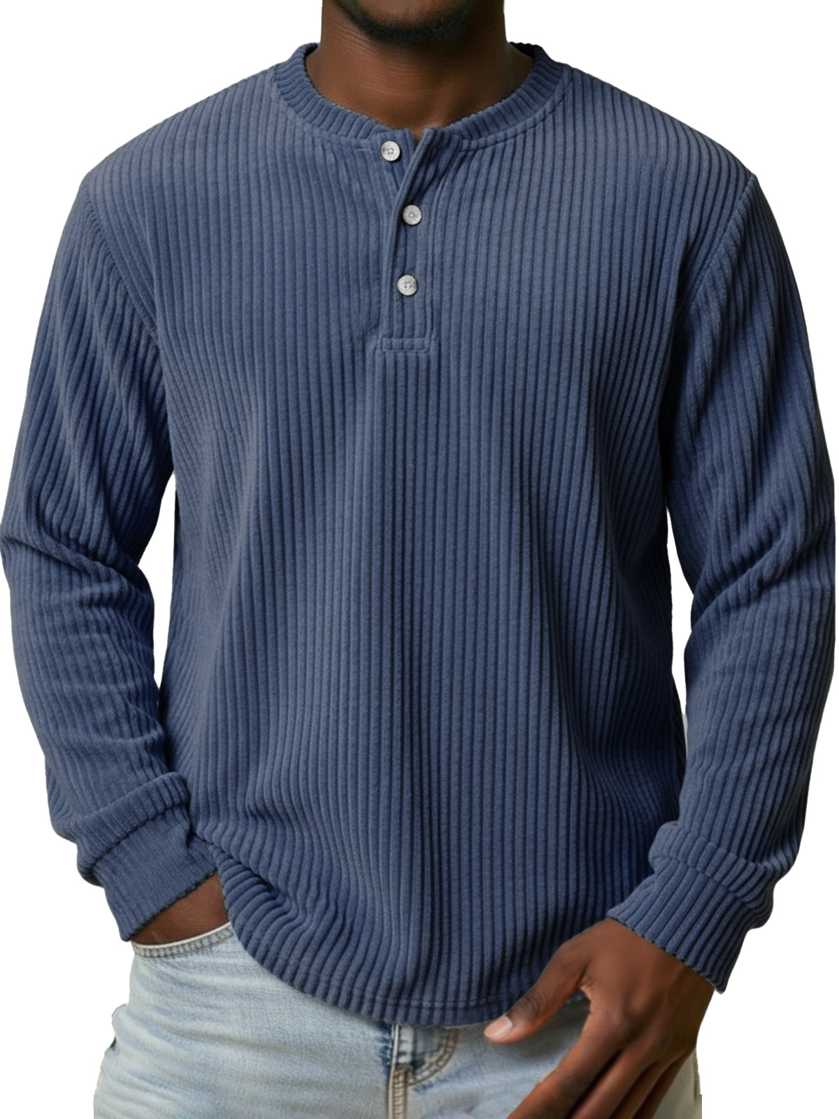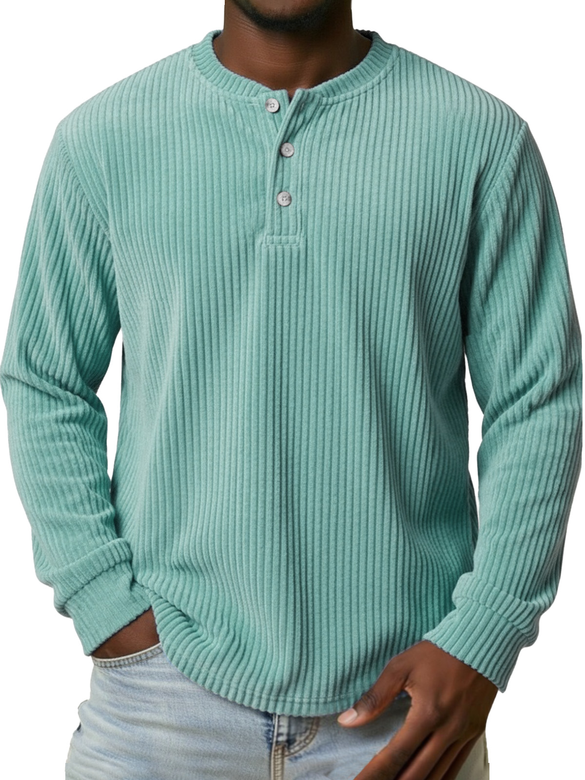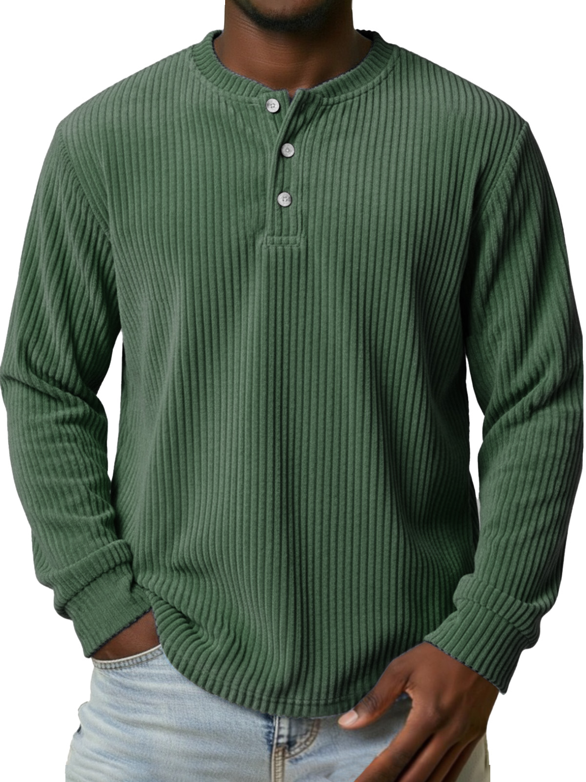 Men's Vintage Corduroy Button-down Long-sleeved Henley Shirt