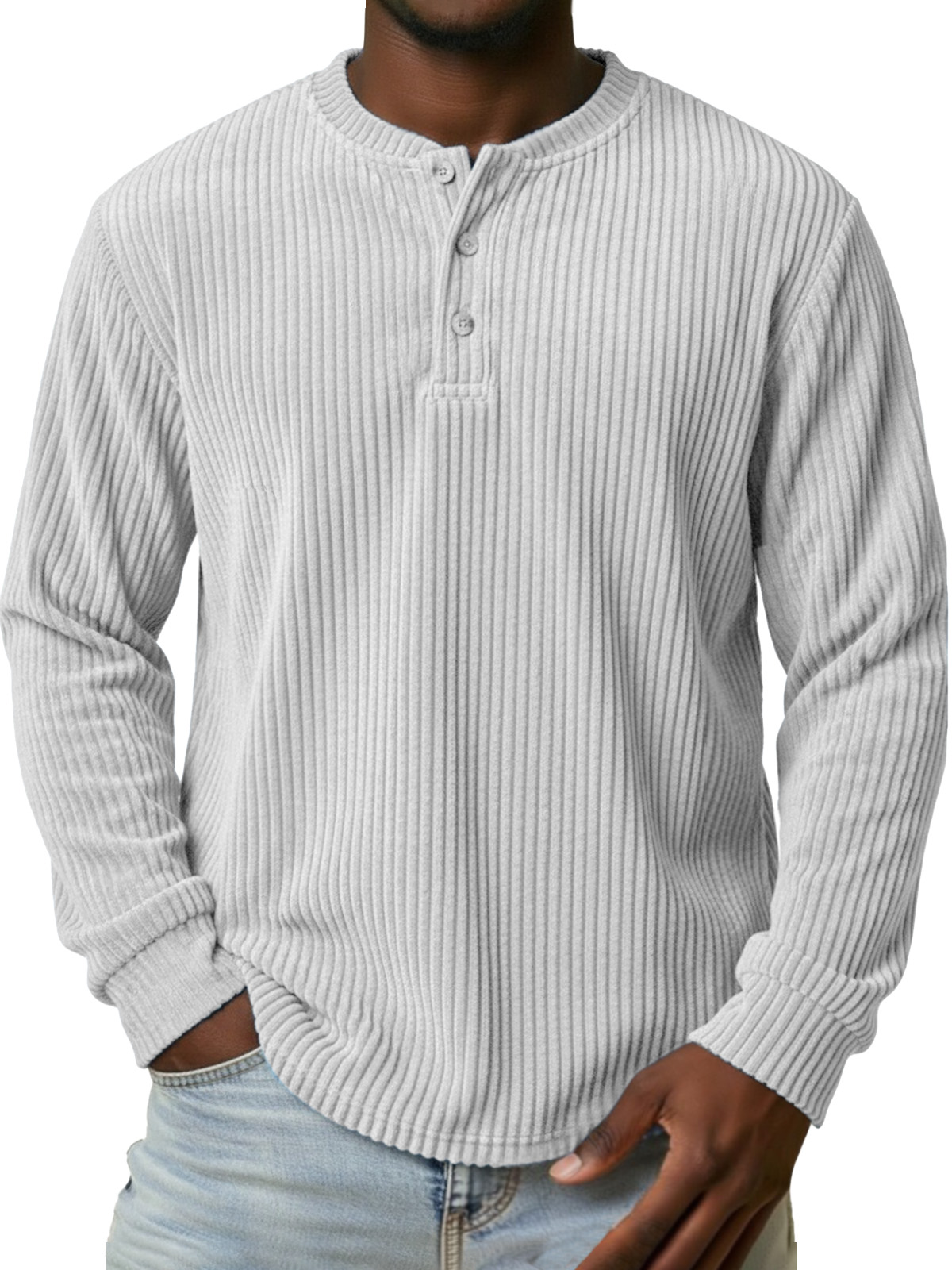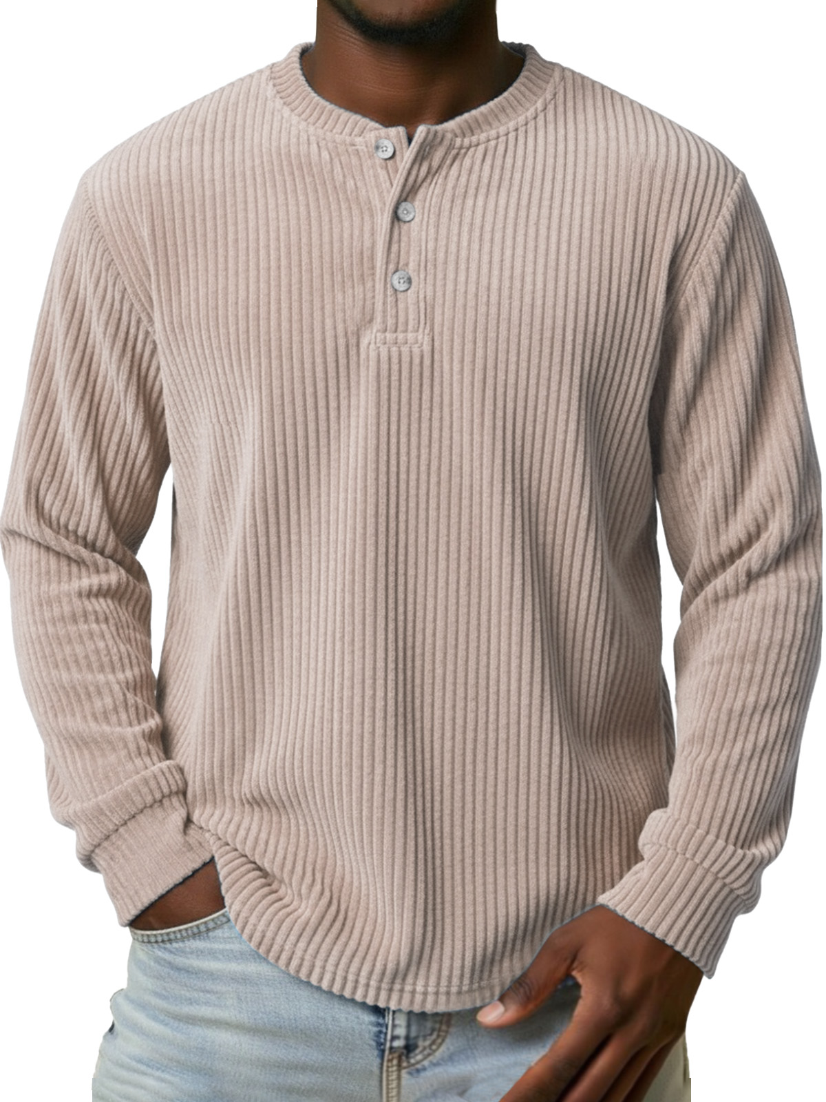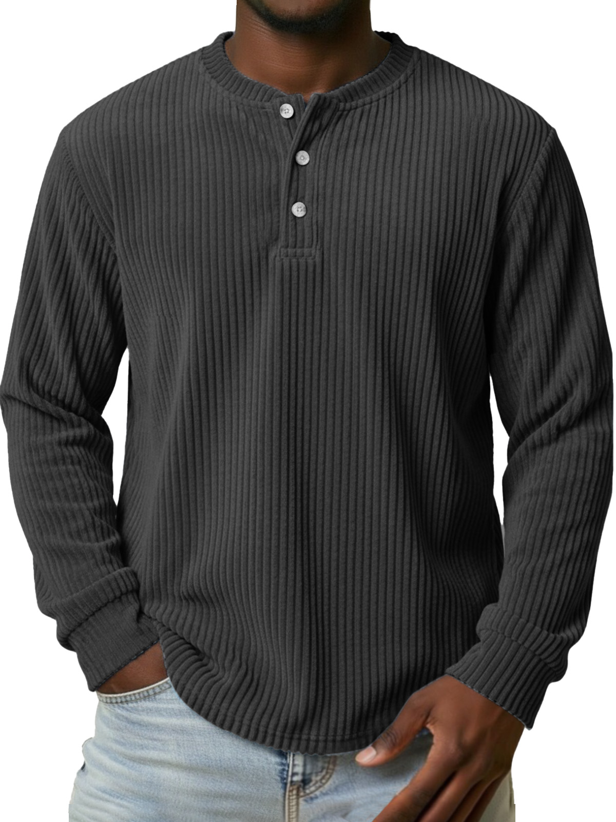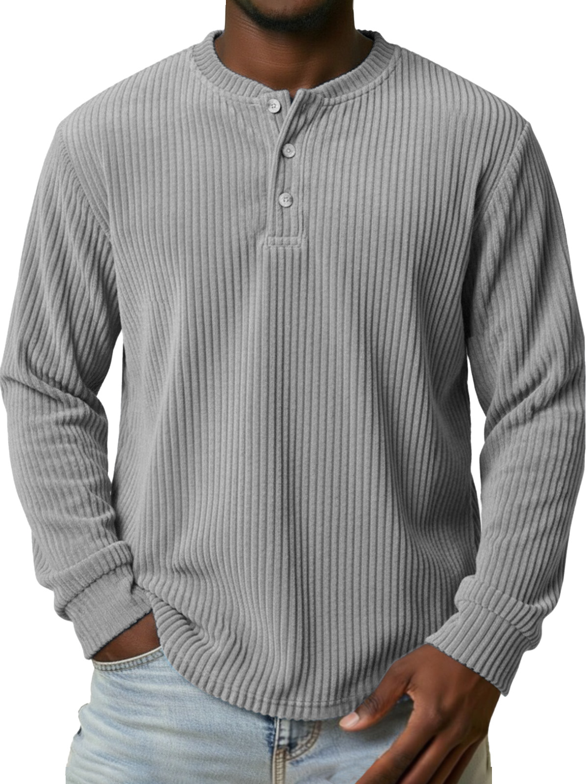 Men's Vintage Corduroy Button-down Long-sleeved Henley Shirt