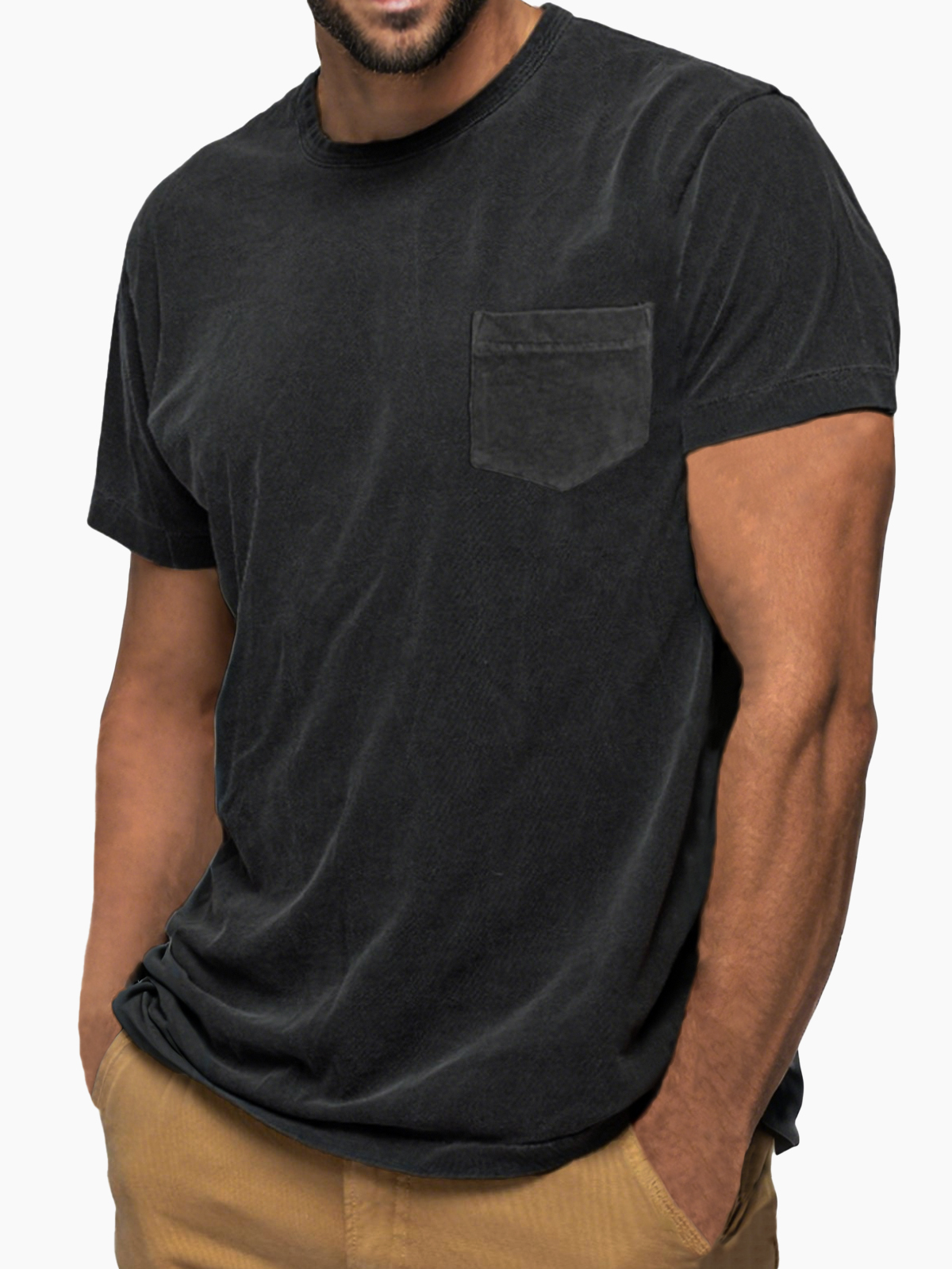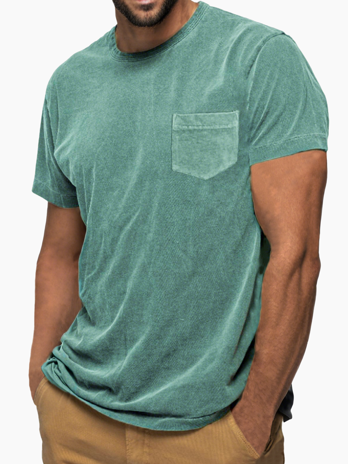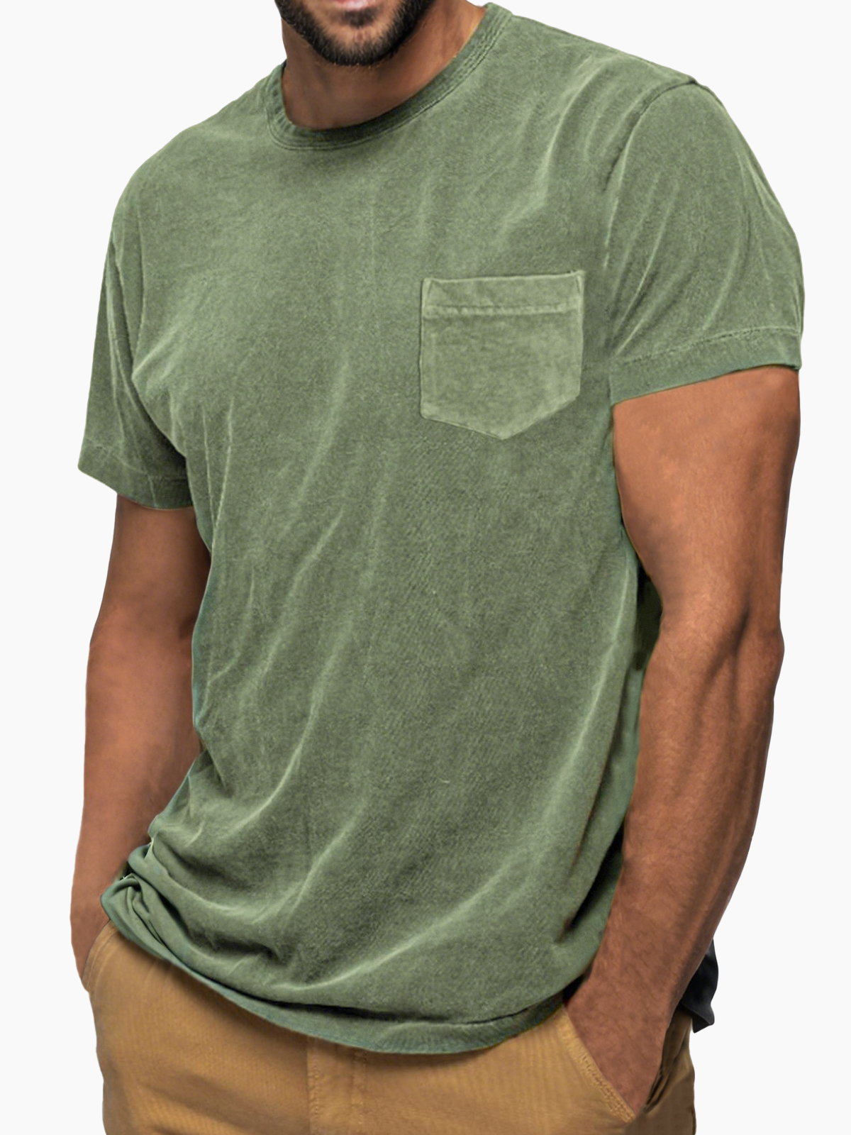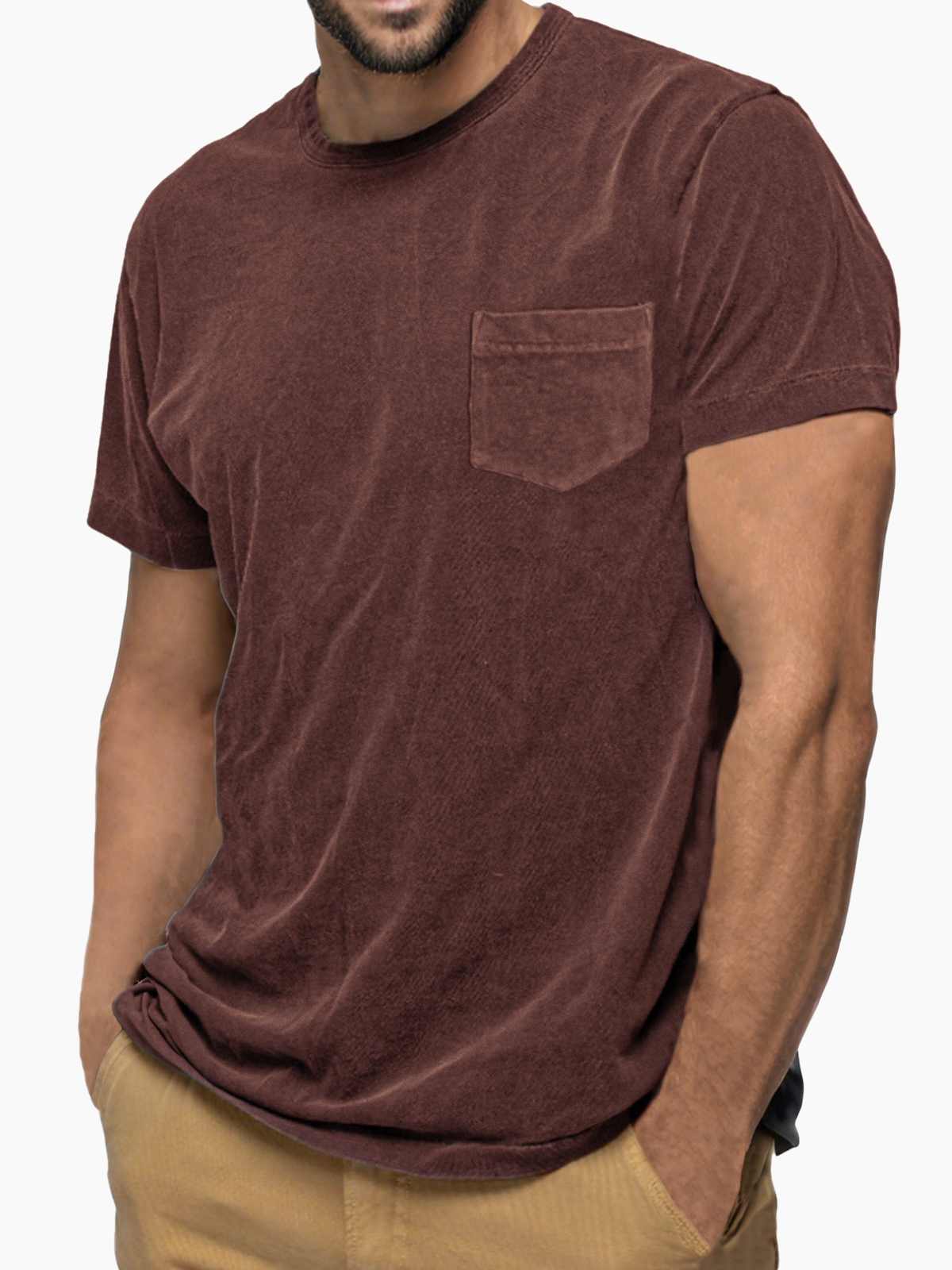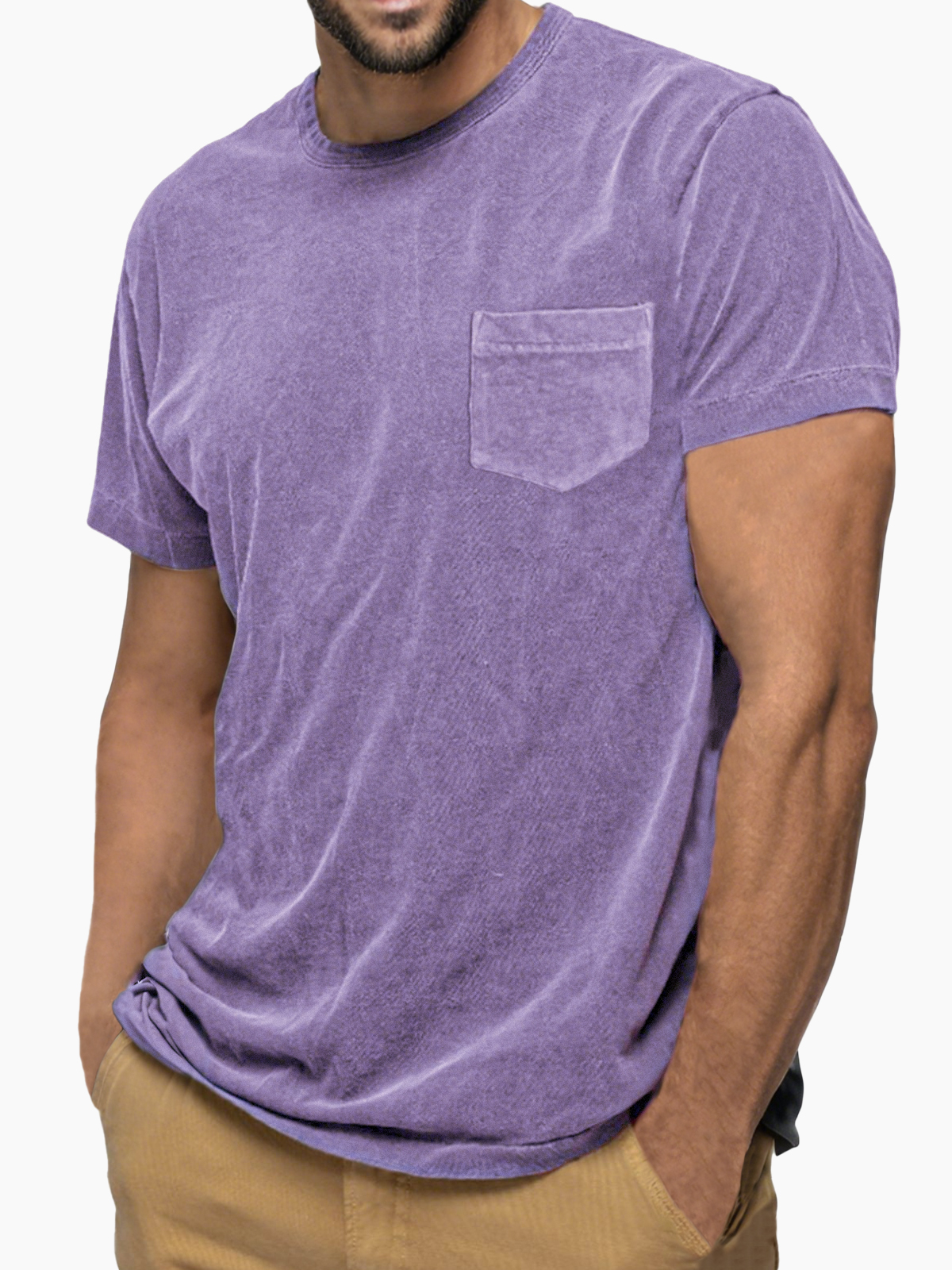 Men's Vintage Distressed Soft Cotton Short Sleeve Basic T-Shirt with Chest Pocket
