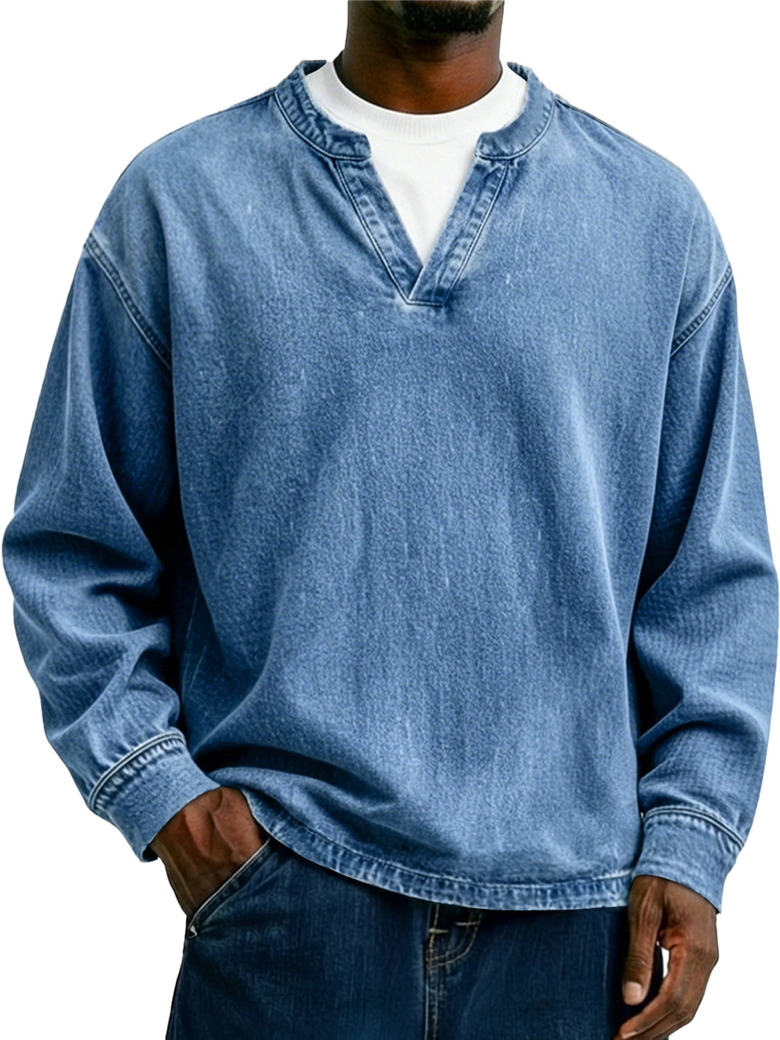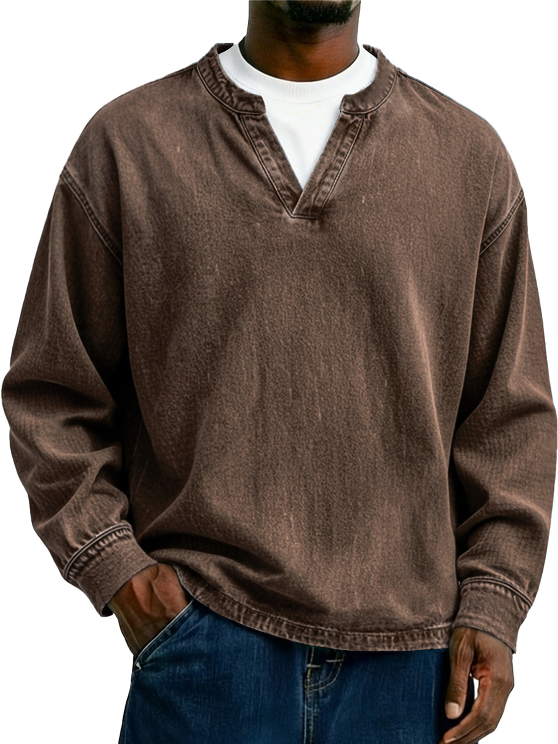 Men's Vintage-style Casual Long-sleeved T-shirt With A Faux Two-piece Double-layer Collar Design
