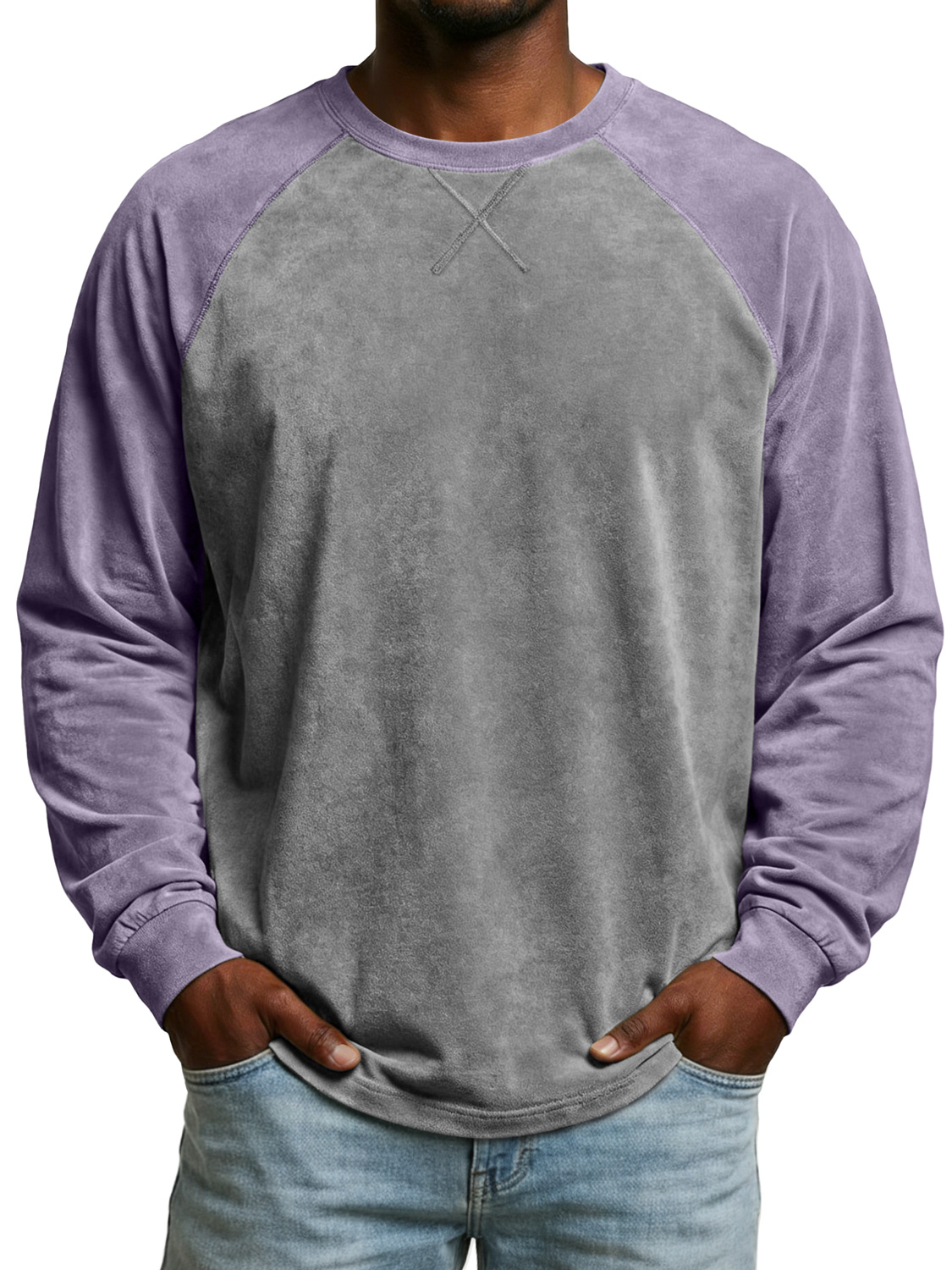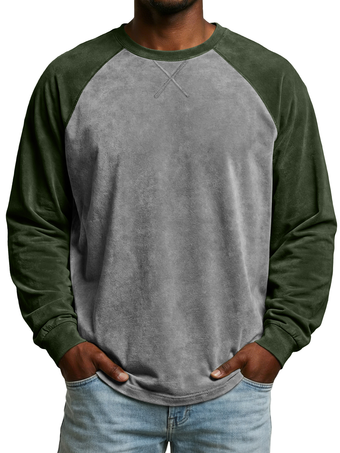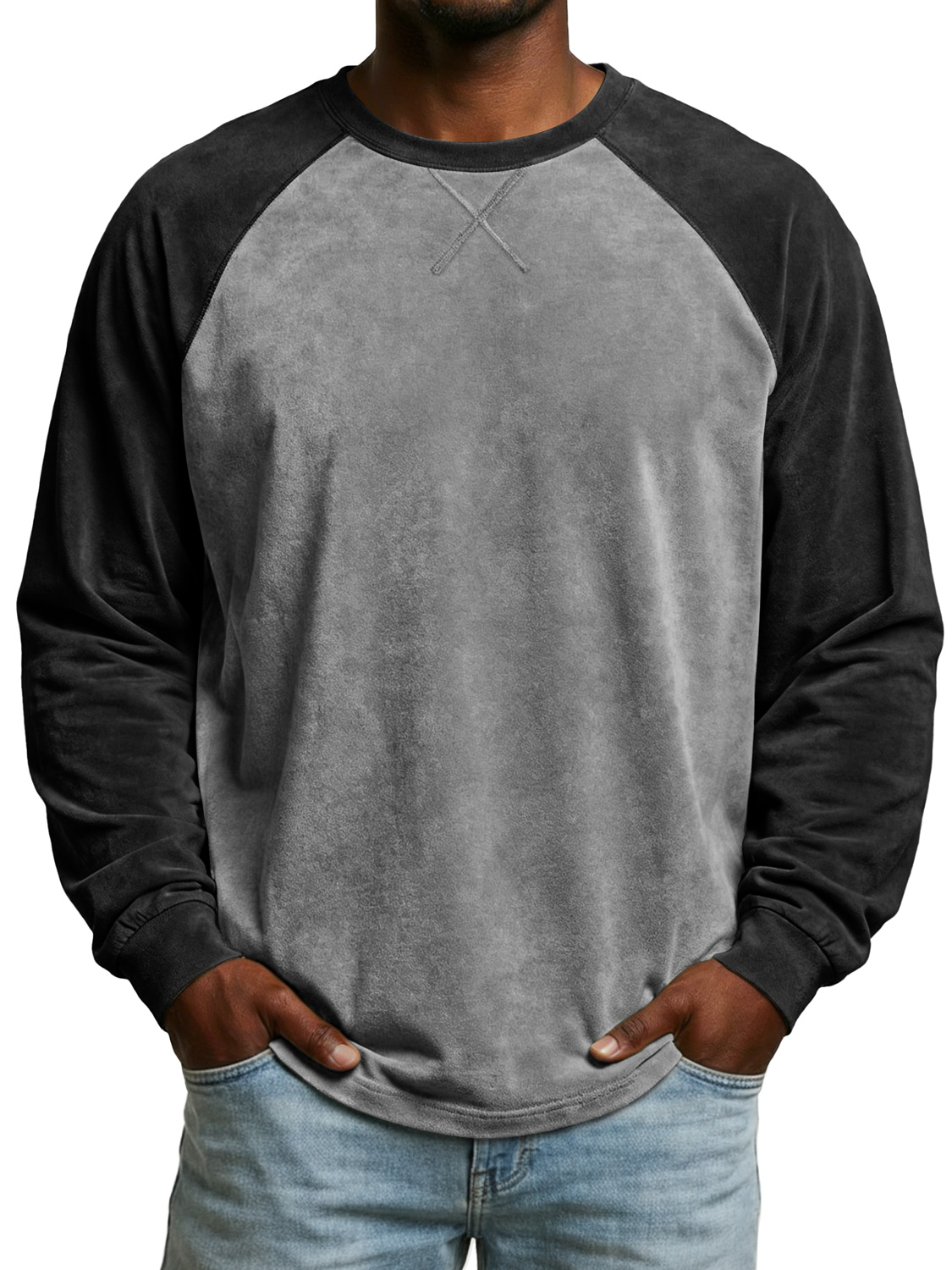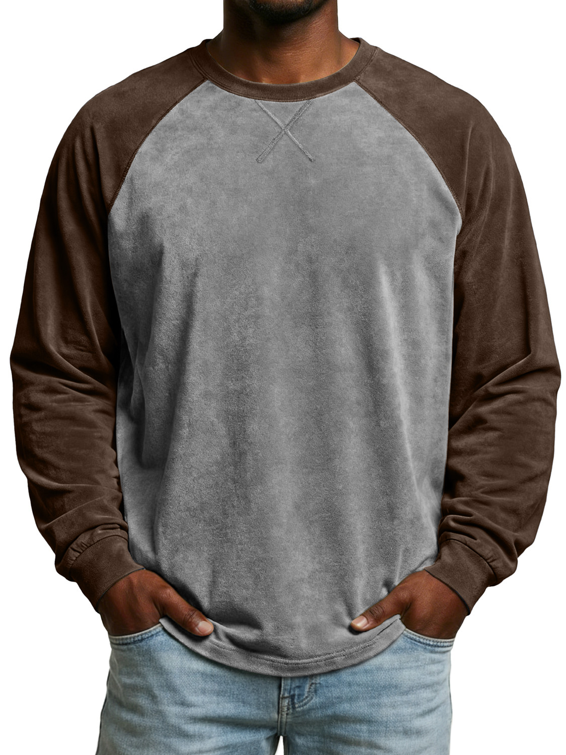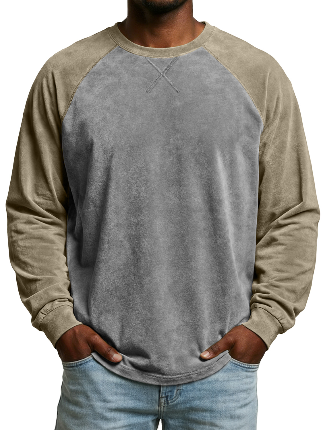 Men's Vintage Suede Patchwork Long-sleeved Casual T-shirt With Criss-cross Design