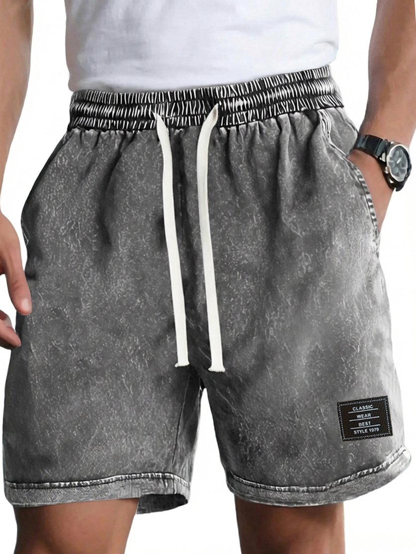 Men's Vintage Washed Distressed Cotton Embroidered Logo Multi-pocket Shorts