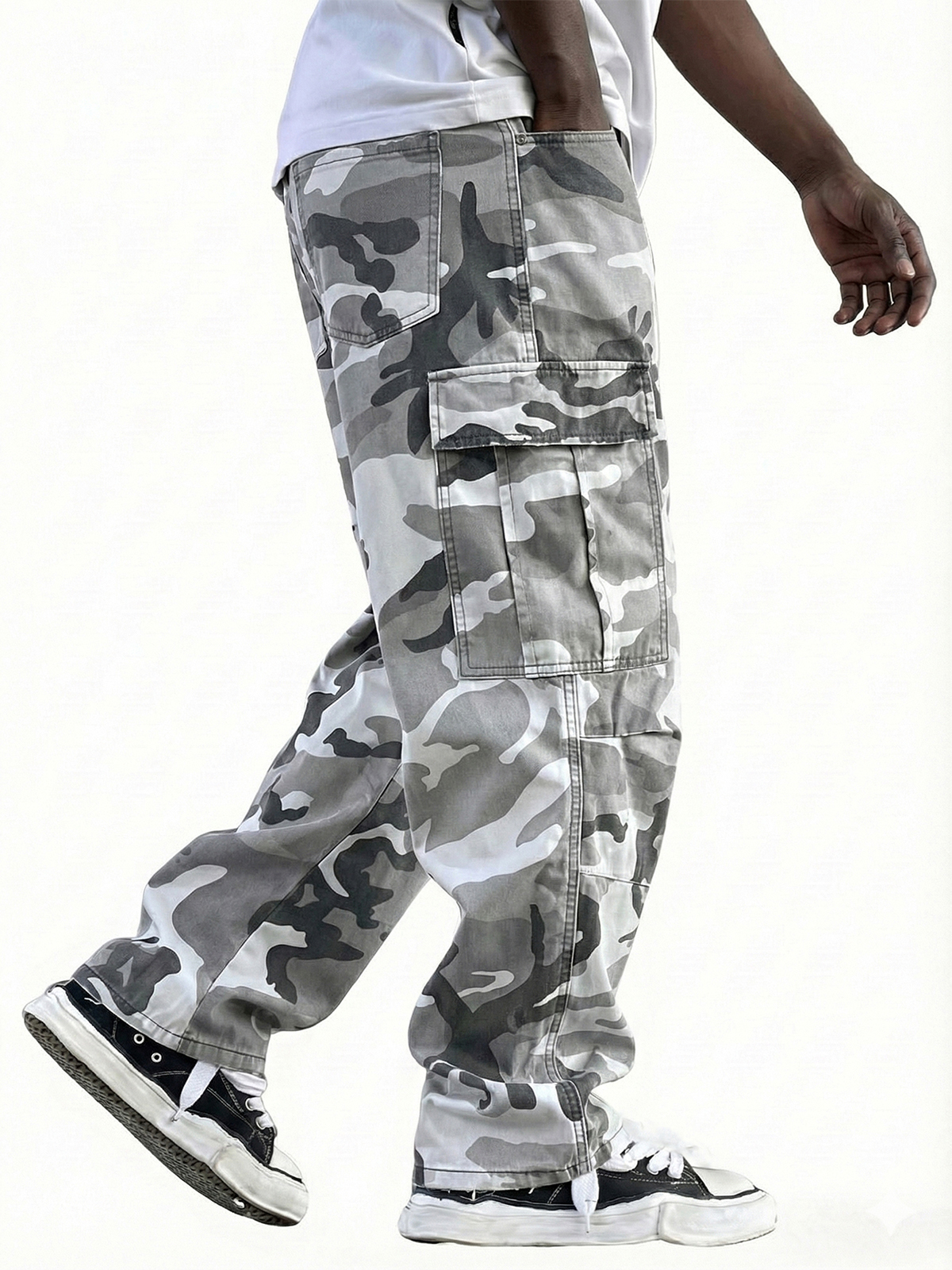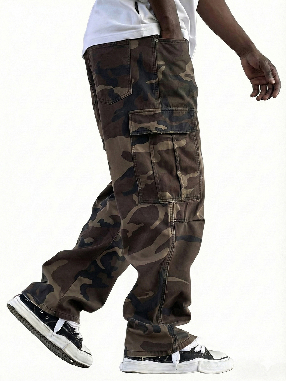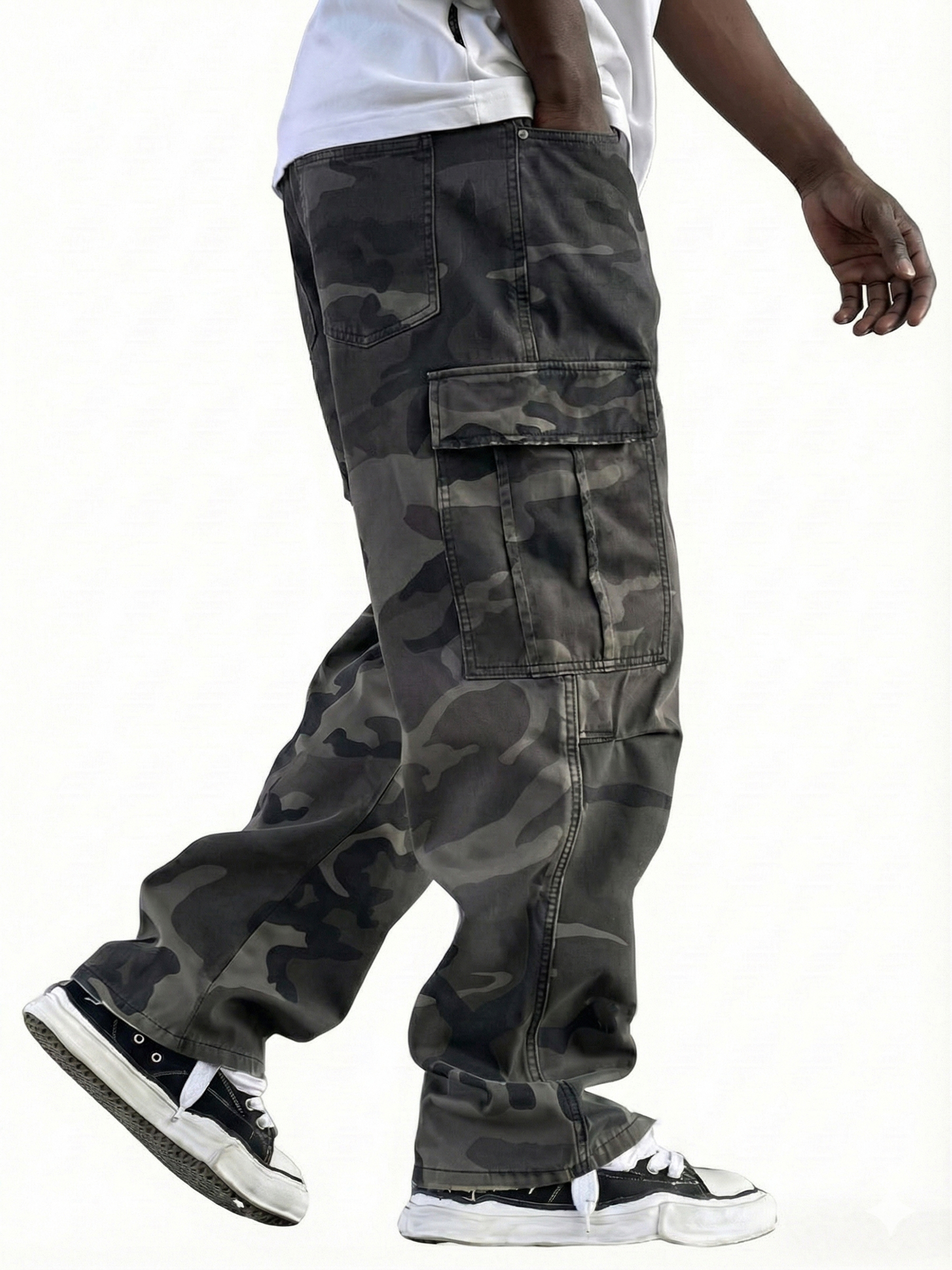 Men's Vintage Workwear Irregular Camouflage Pattern Multi-pocket Wide-leg Trousers