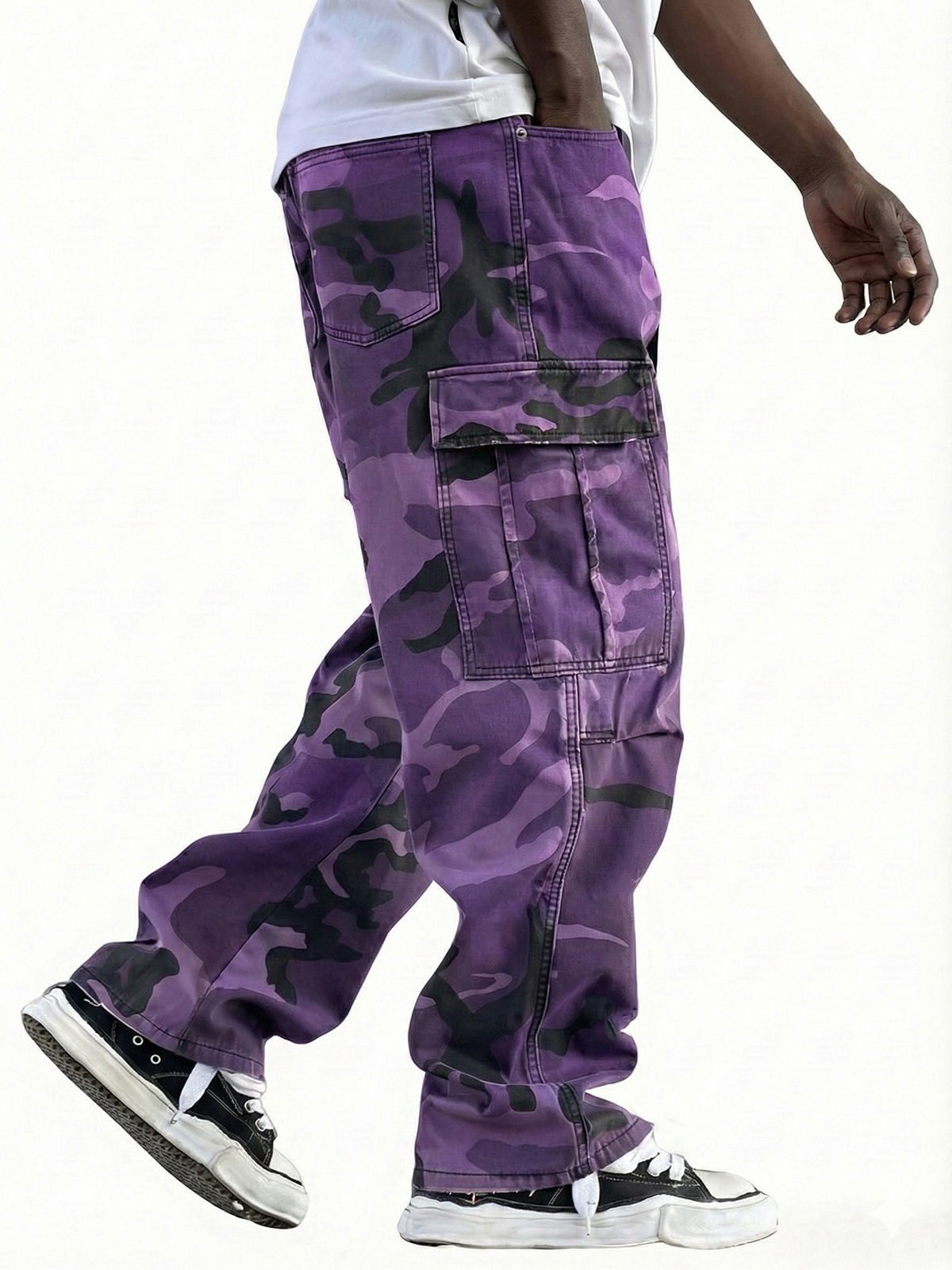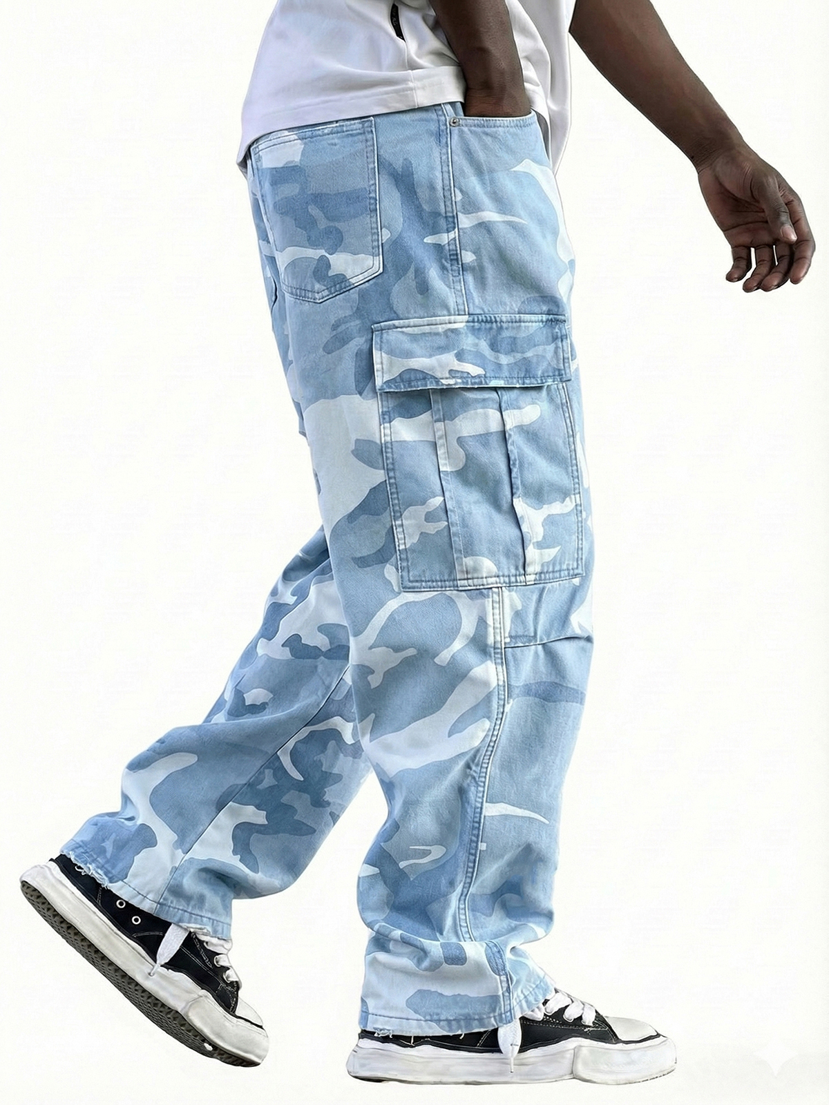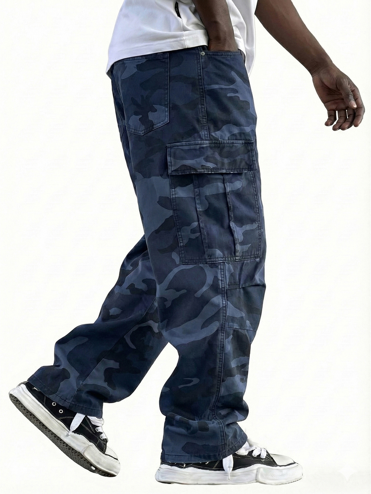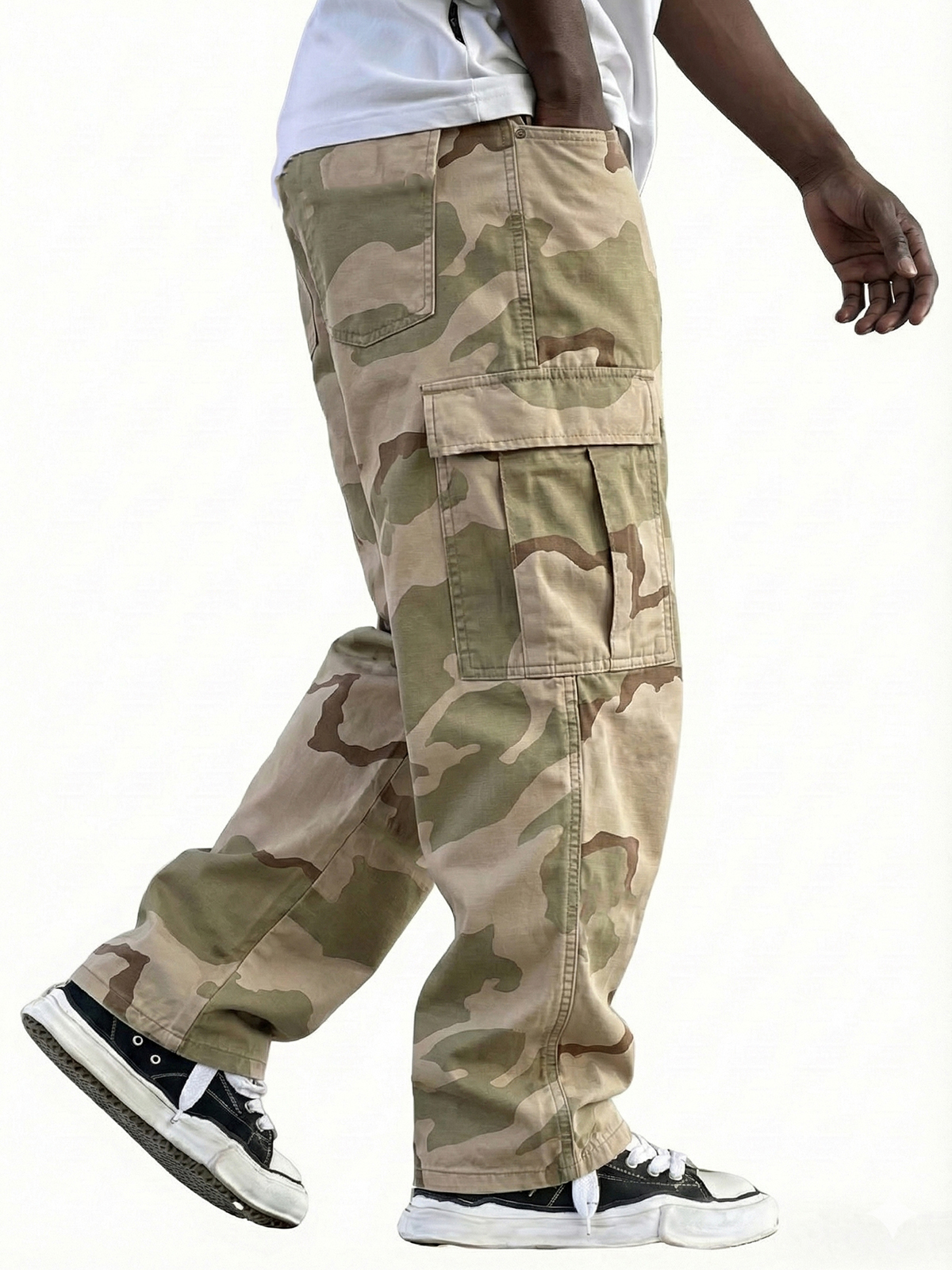 Men's Vintage Workwear Irregular Camouflage Pattern Multi-pocket Wide-leg Trousers