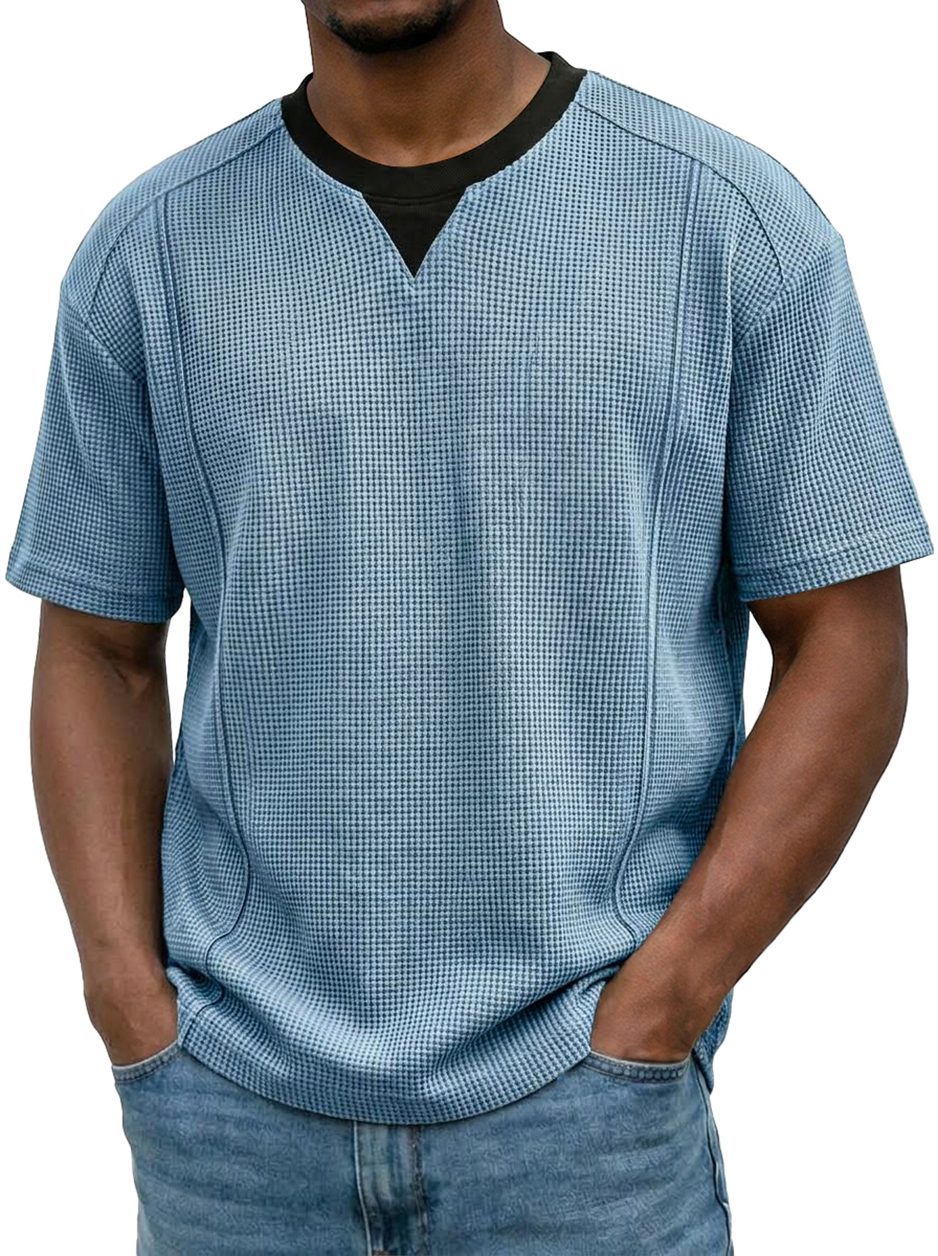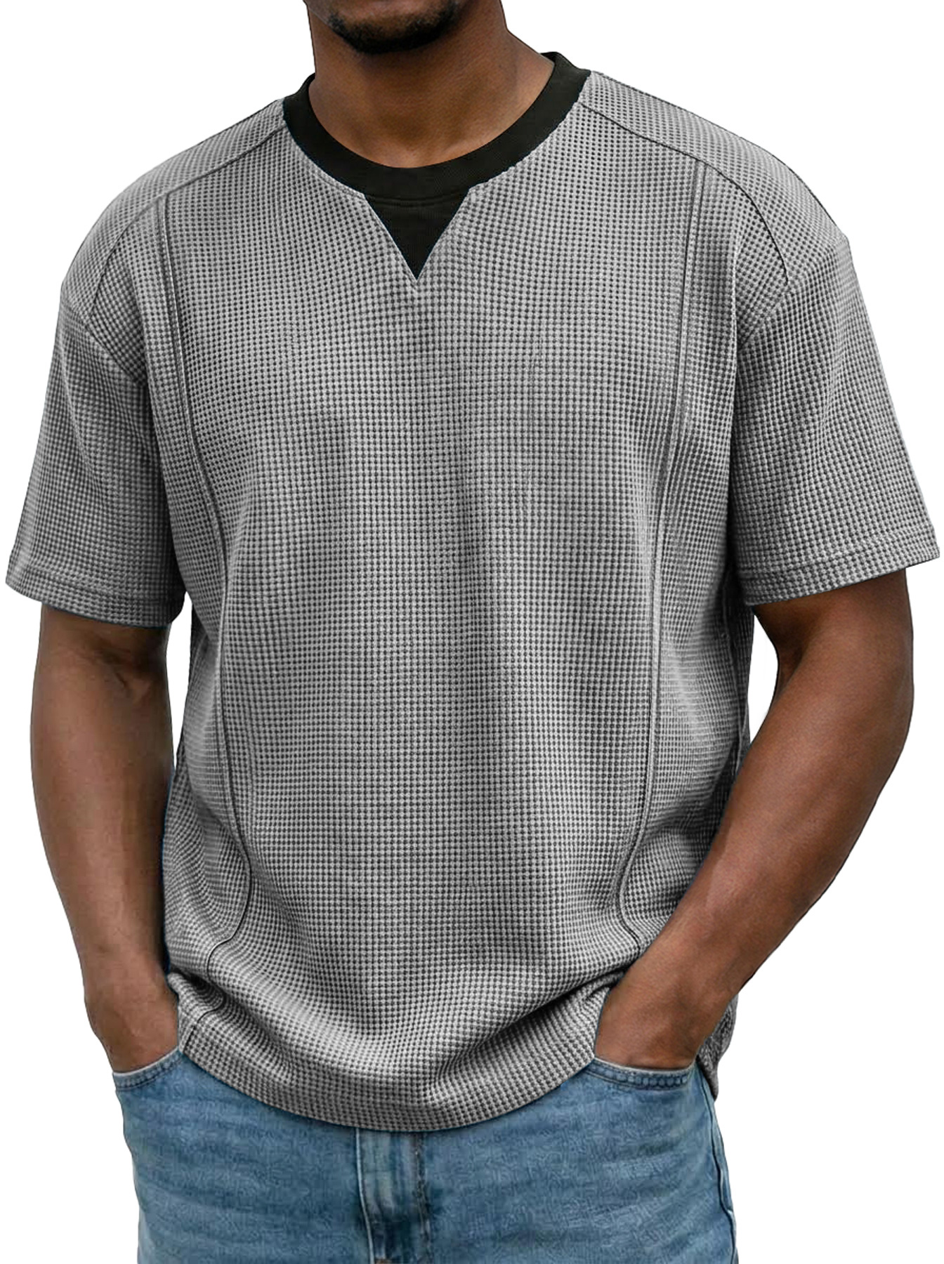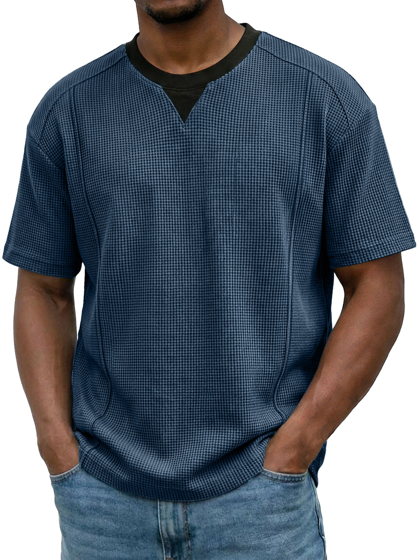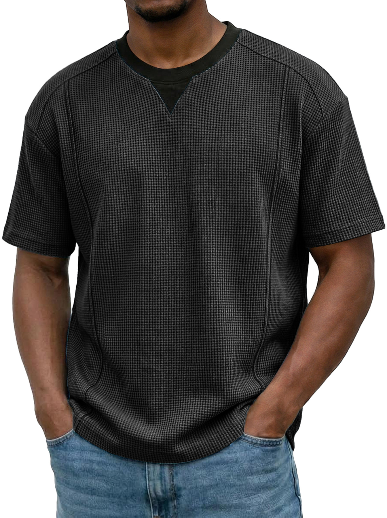 Men's Waffle Color Block Deconstructed Casual Short-Sleeve T-Shirt