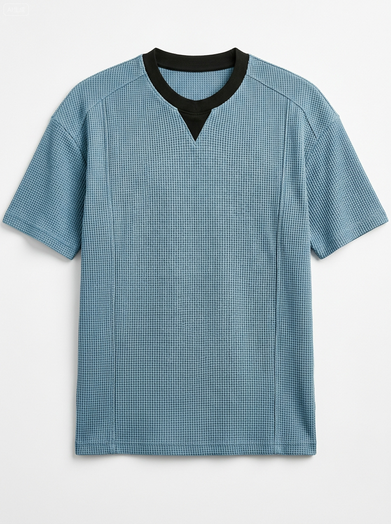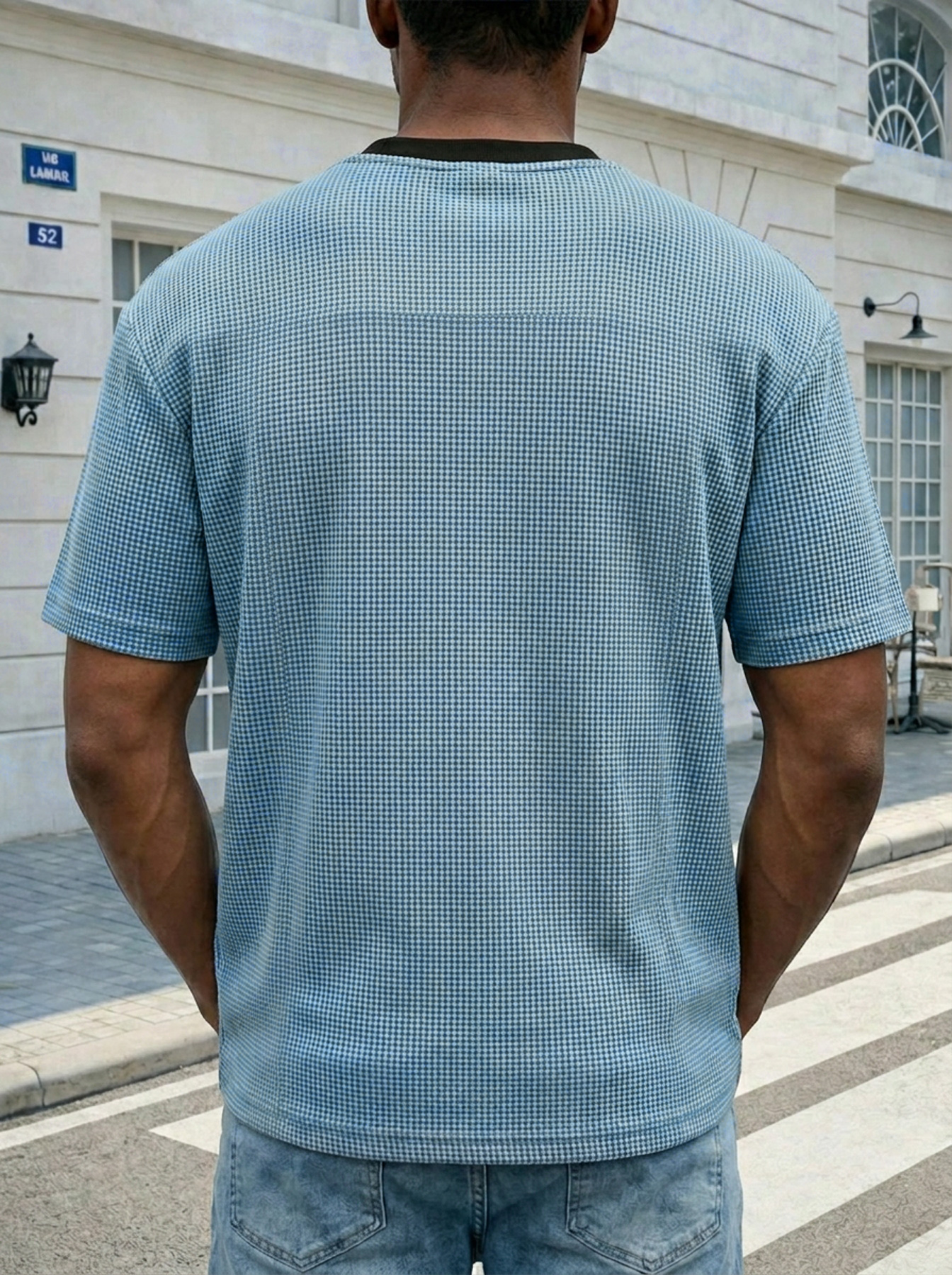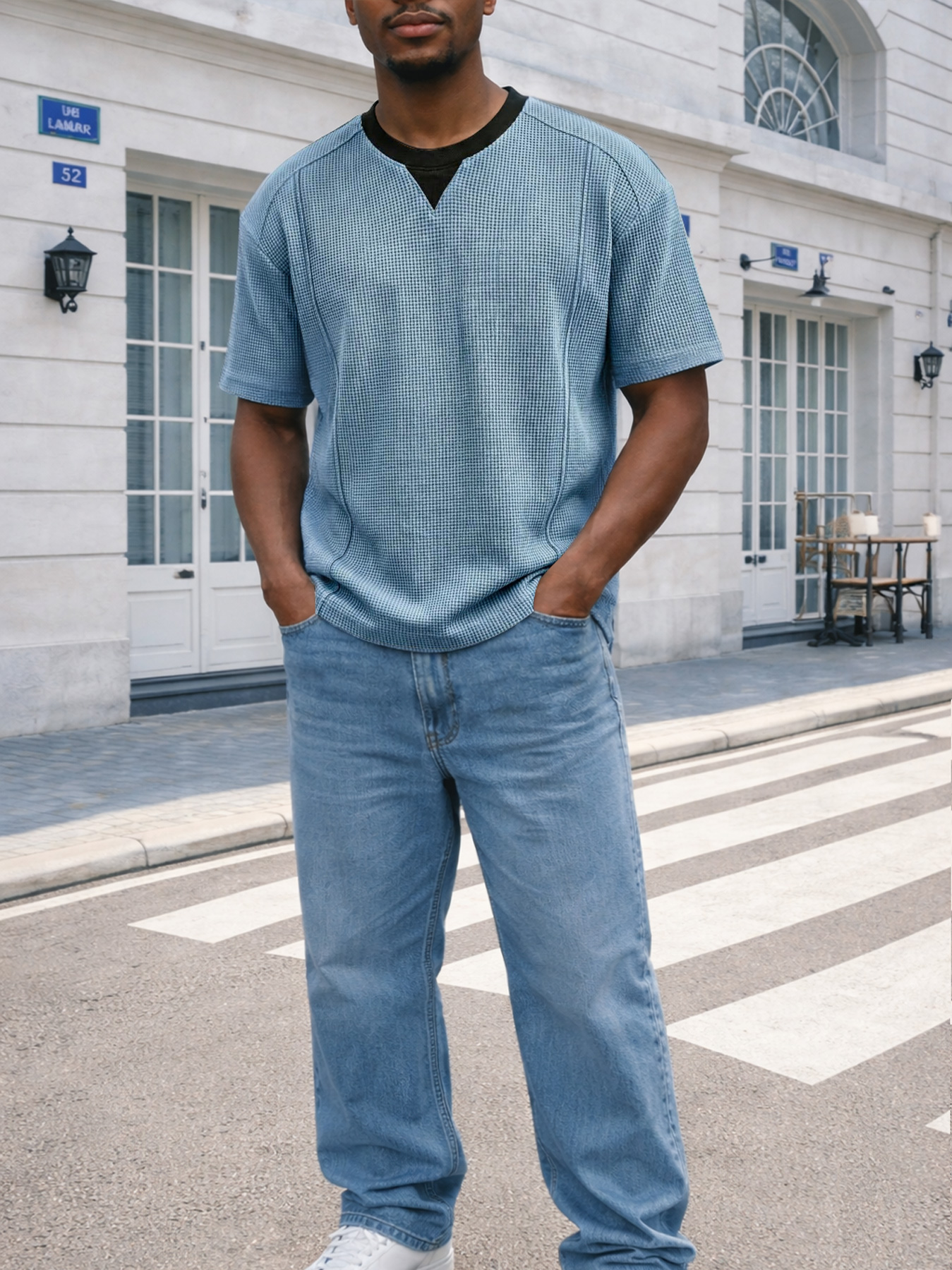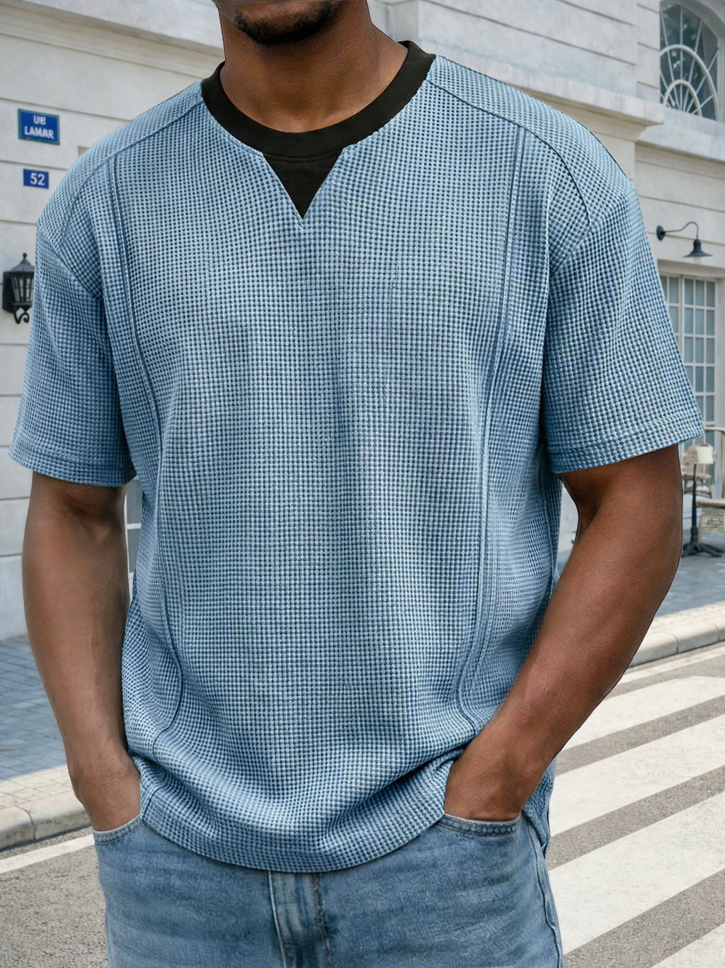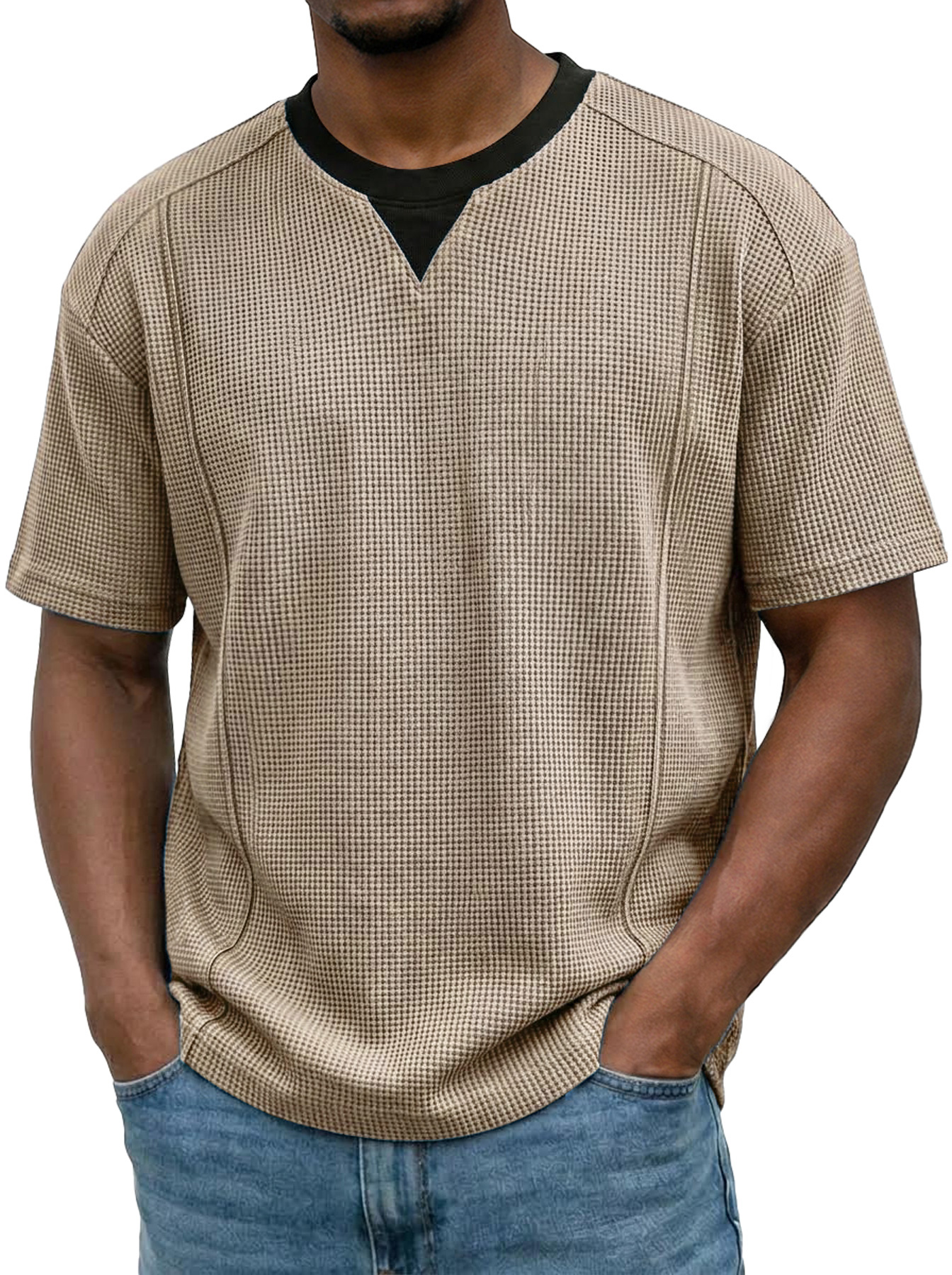 Men's Waffle Color Block Deconstructed Casual Short-Sleeve T-Shirt