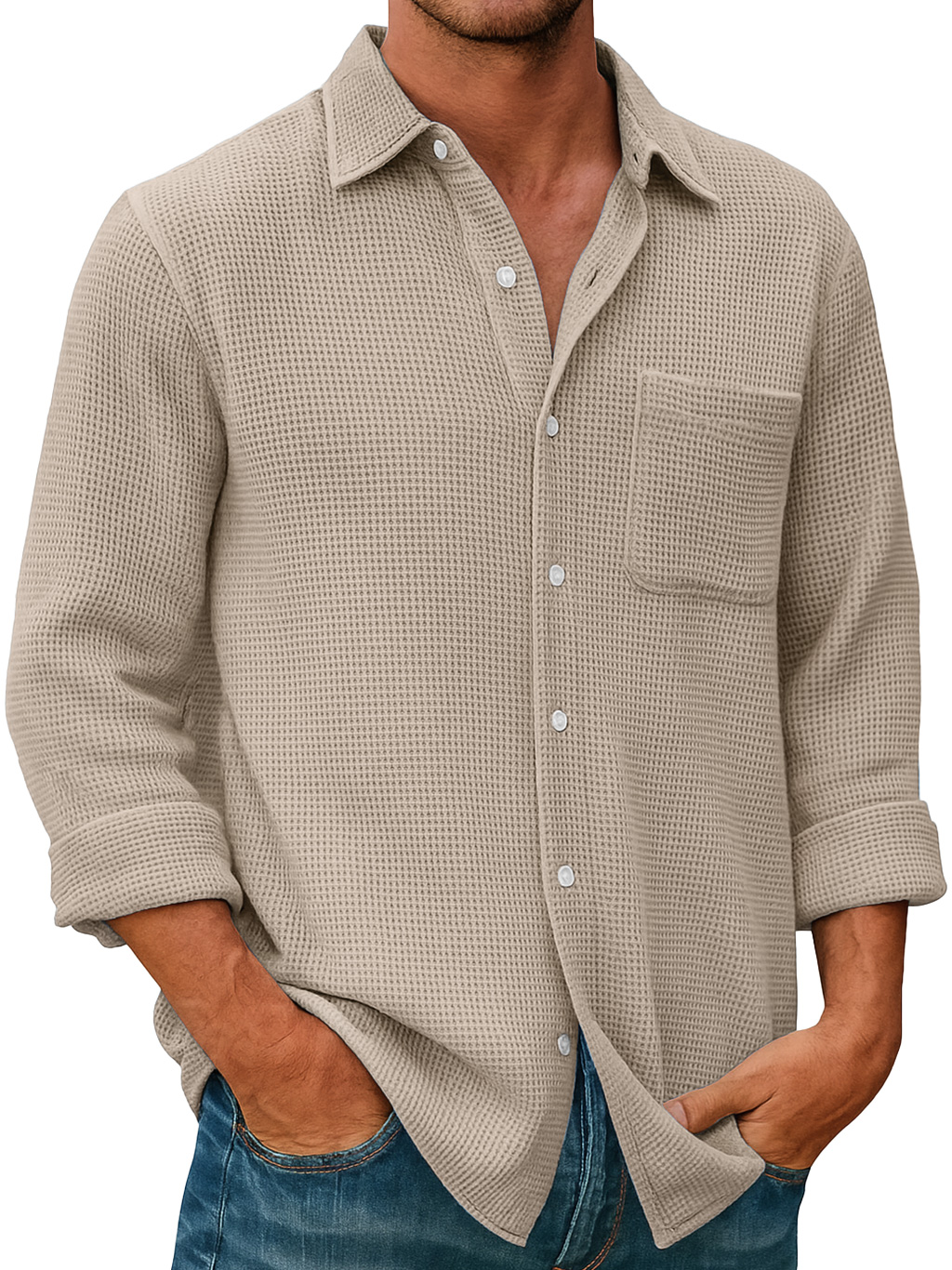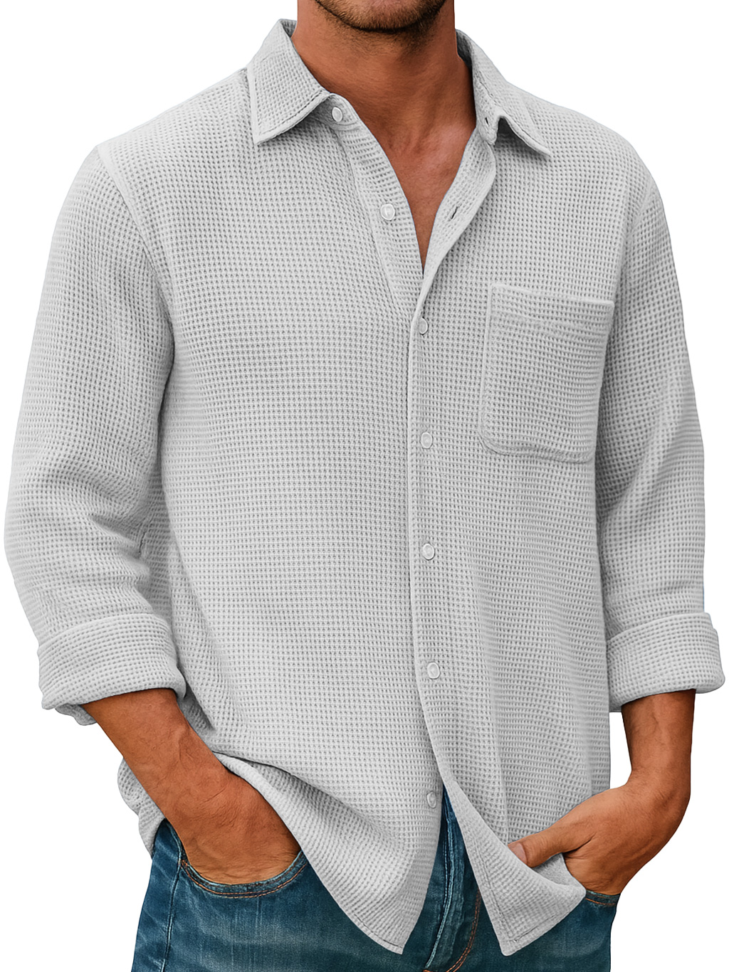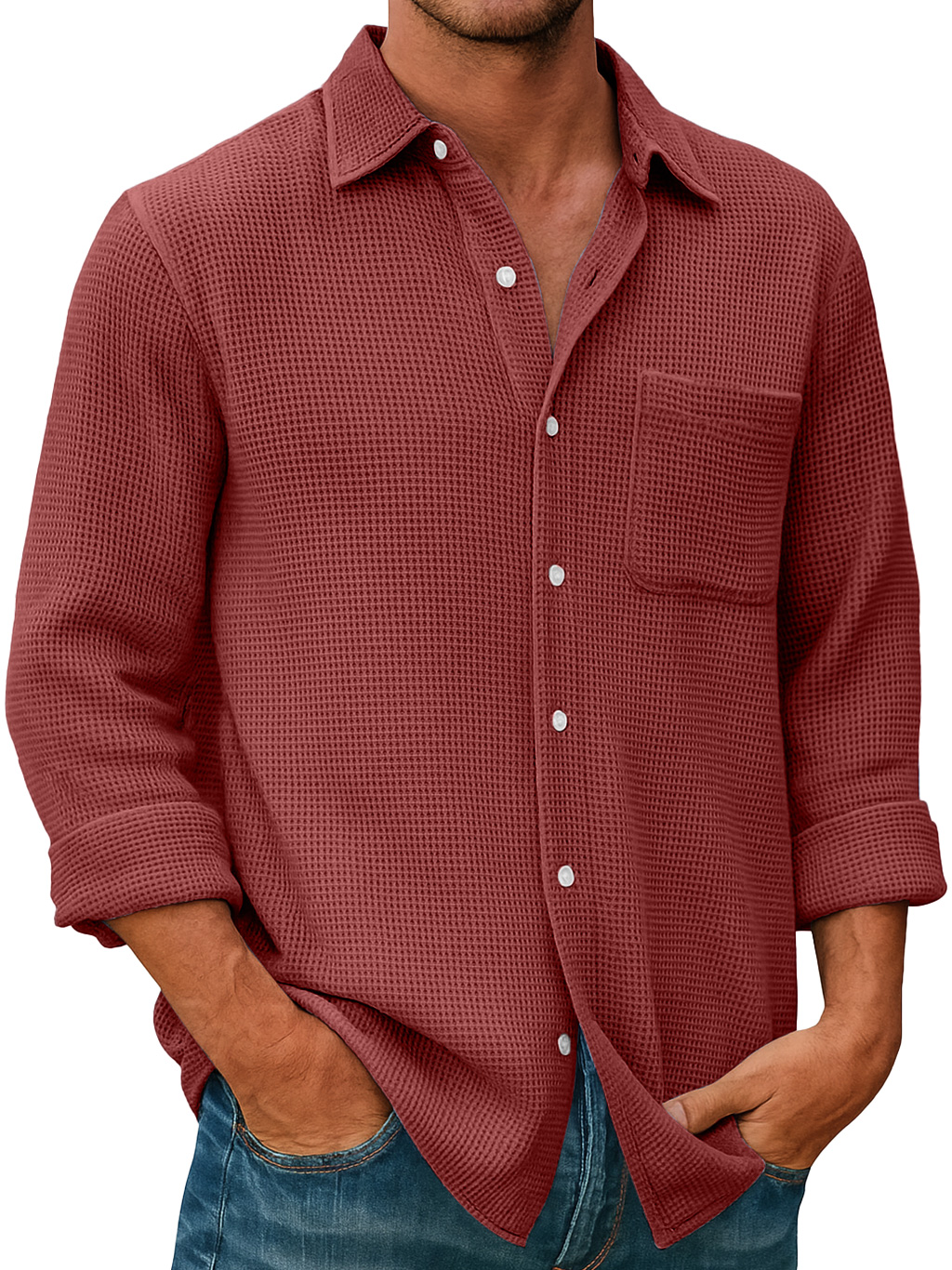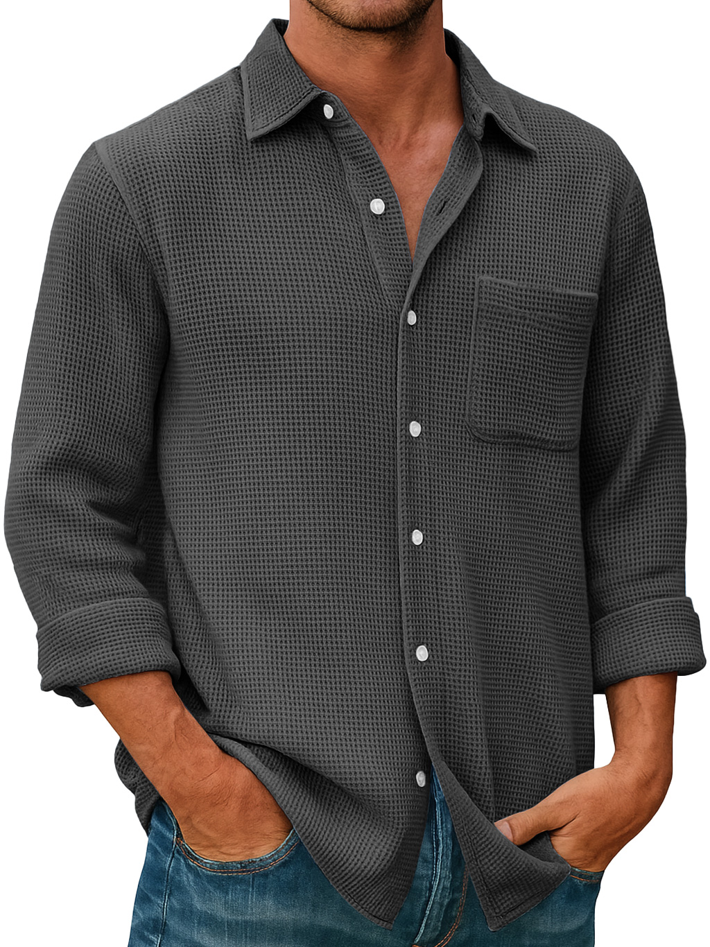 Men's Waffle Everyday Casual Pocket Comfort Long Sleeve Shirt