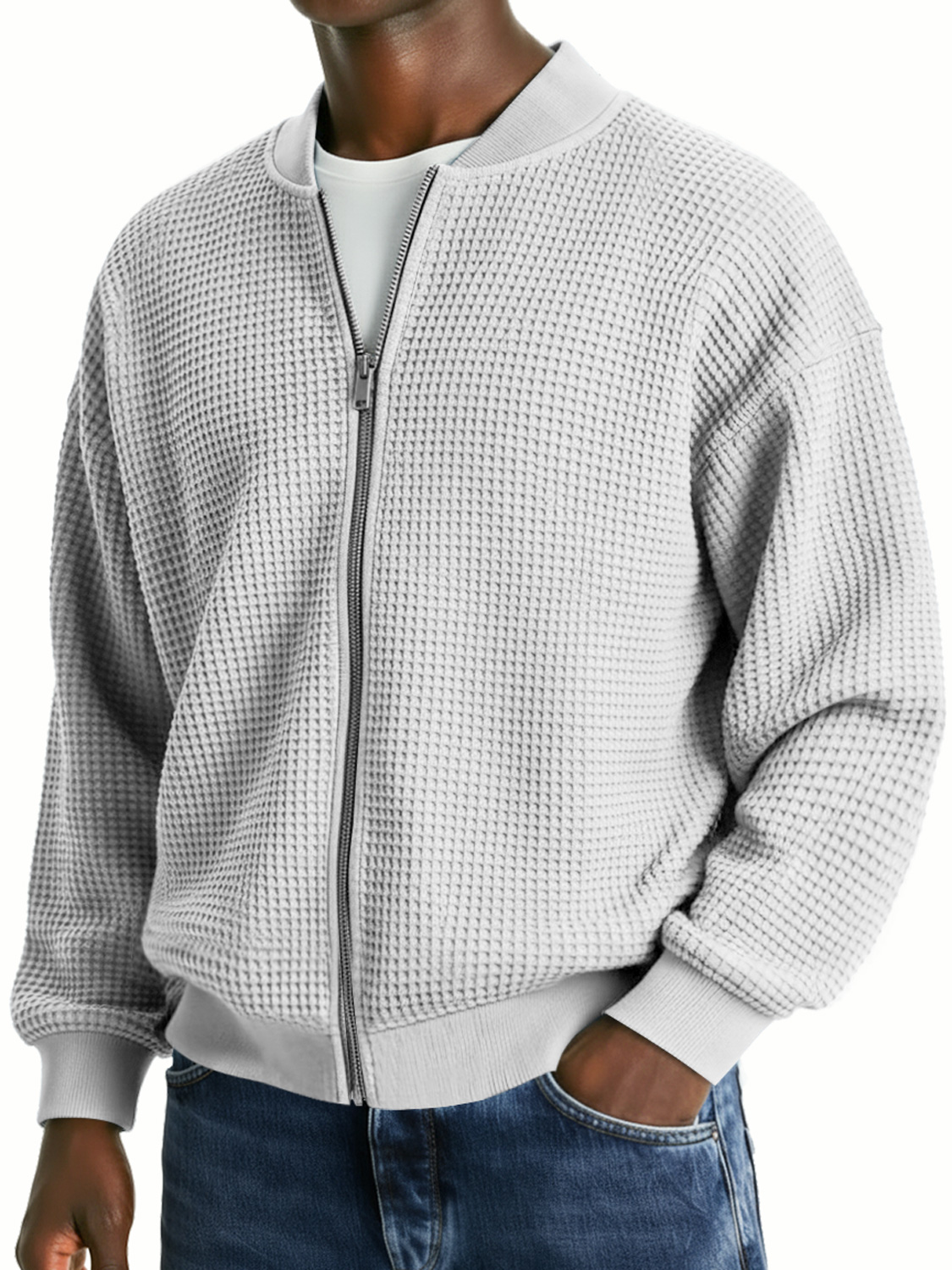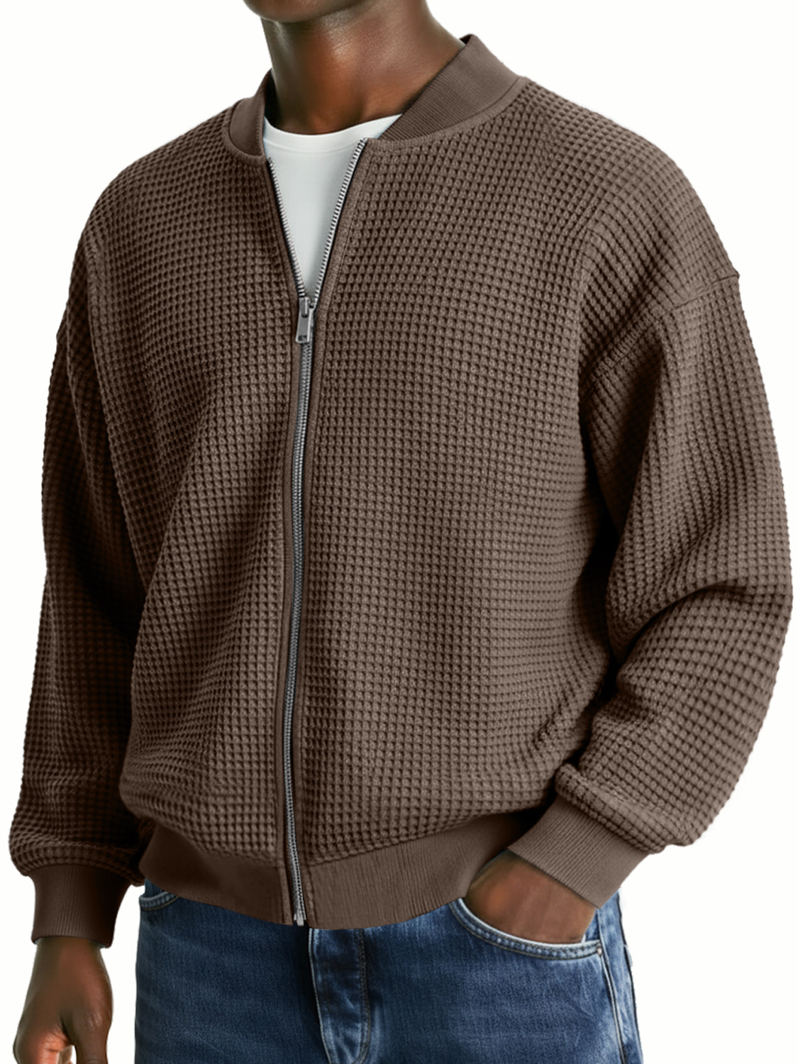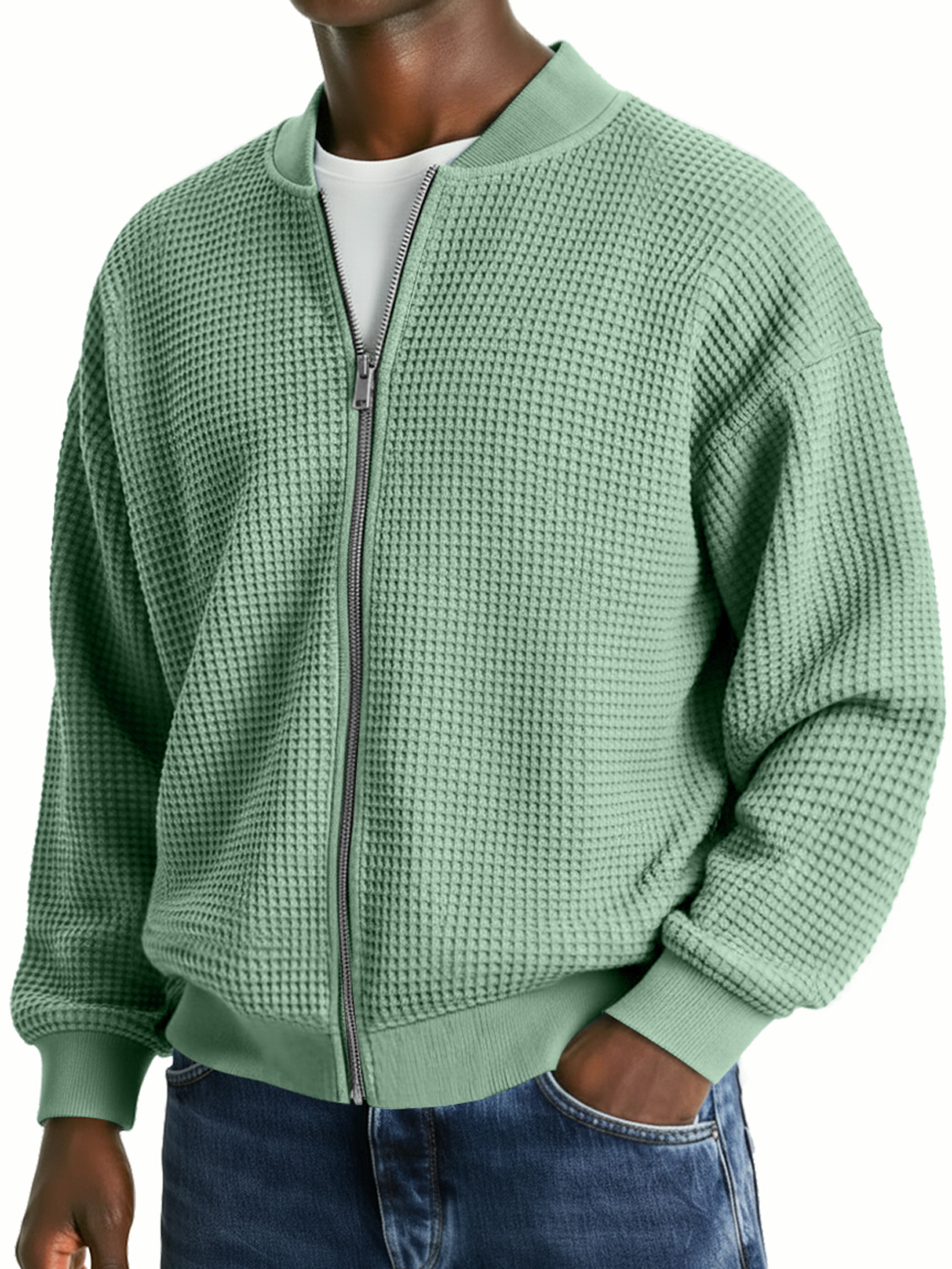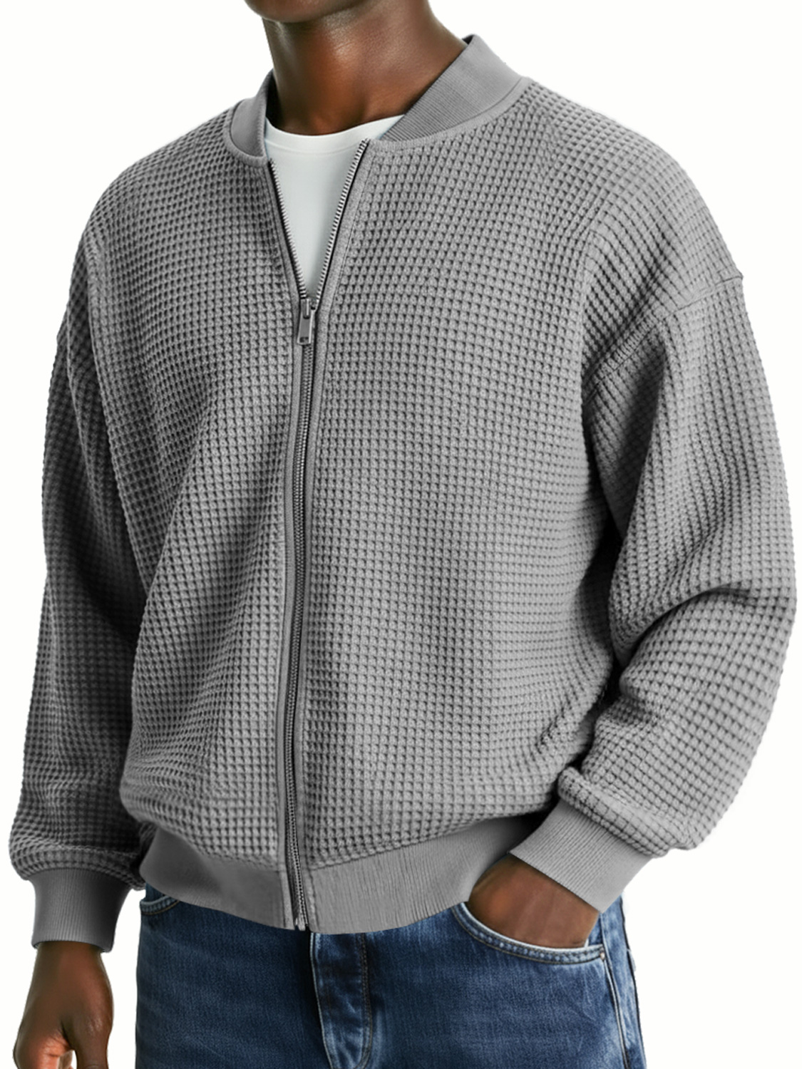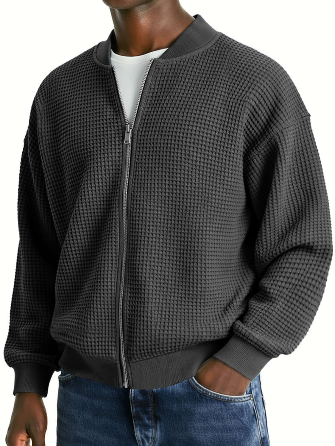 Men's Waffle Knit Casual Loose Zip-up Jacket