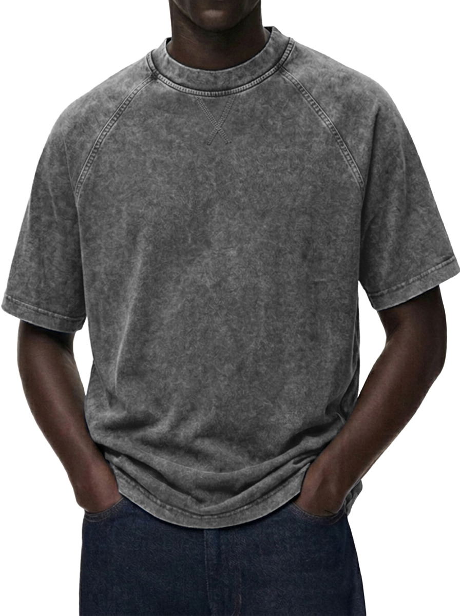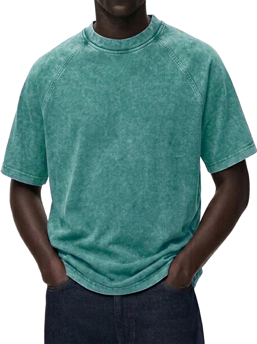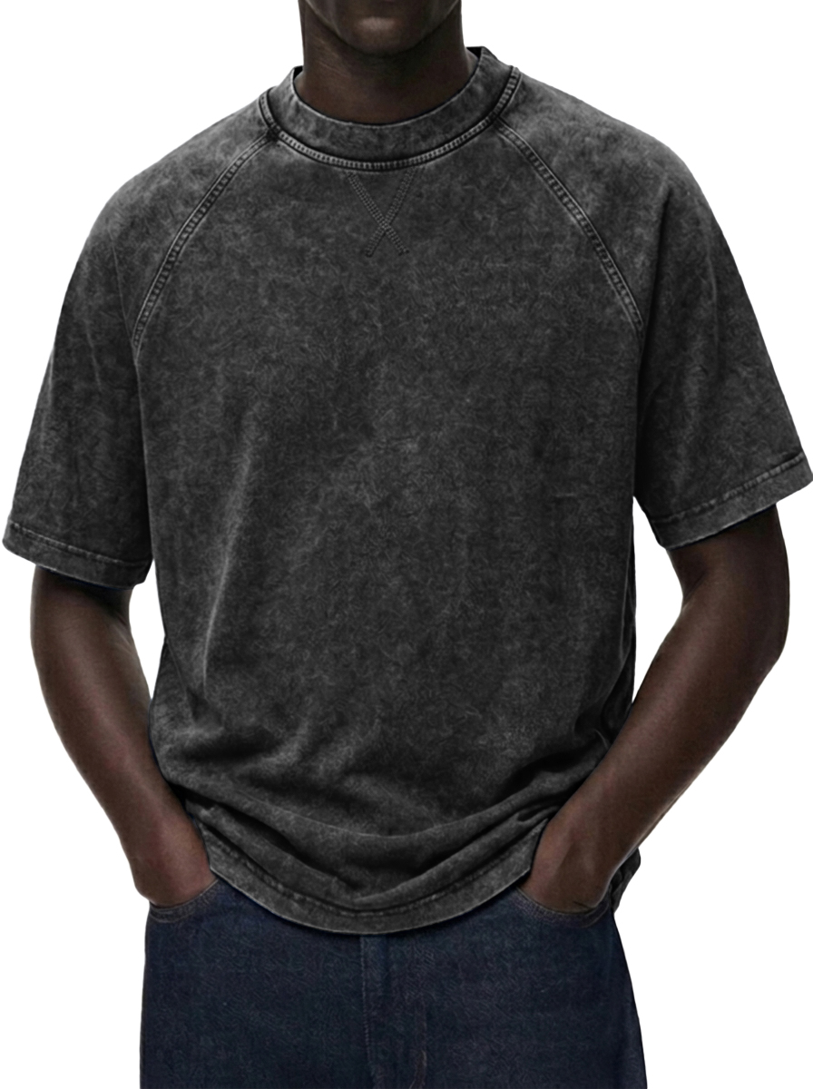 Men's Washed Distressed Raglan Sleeve Crewneck T-Shirt
