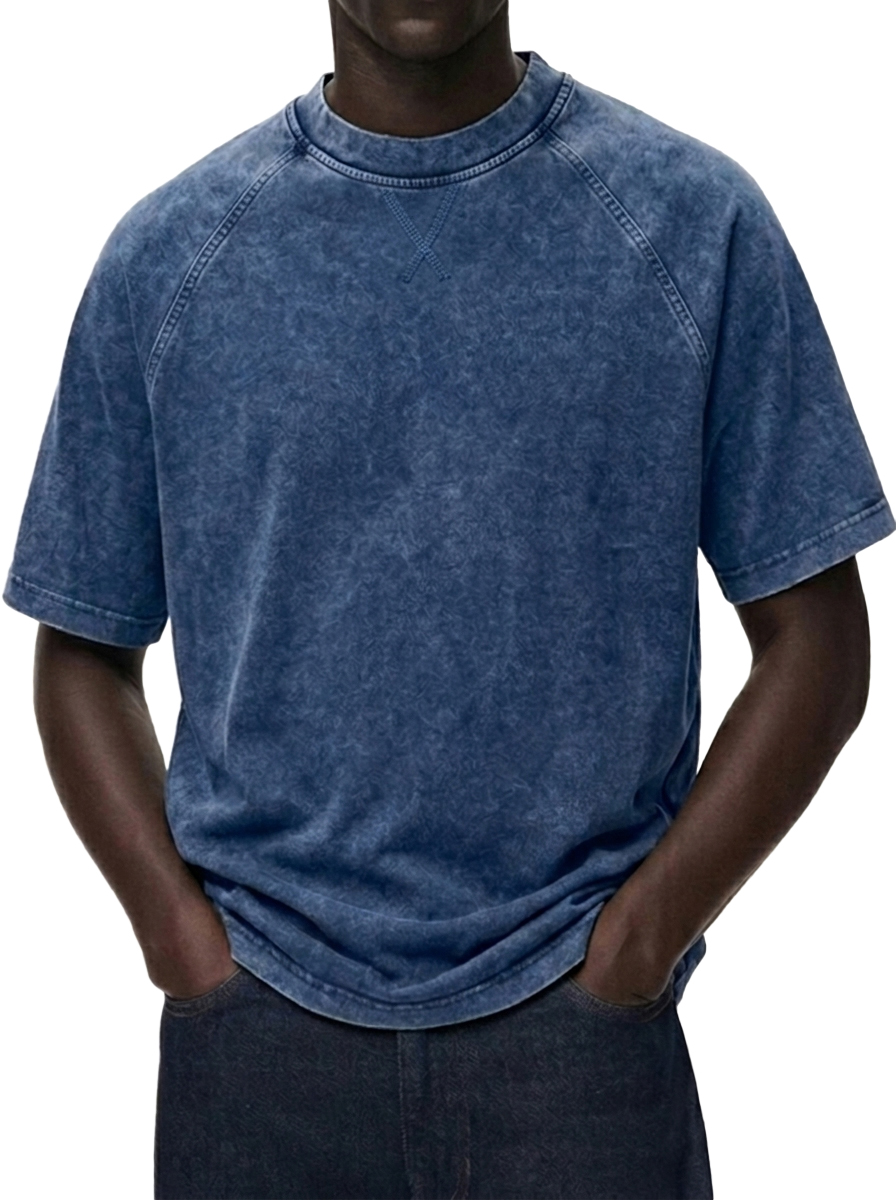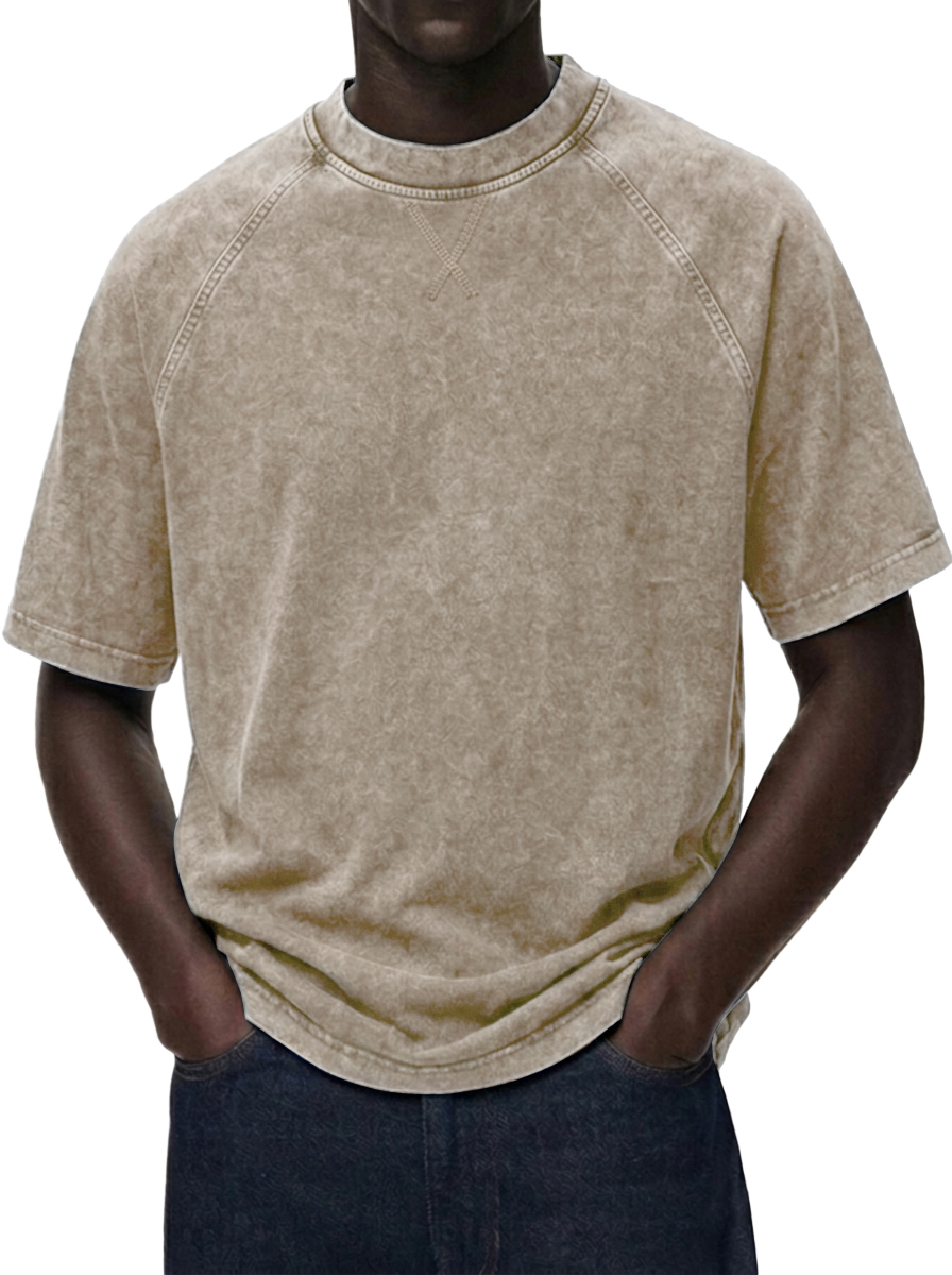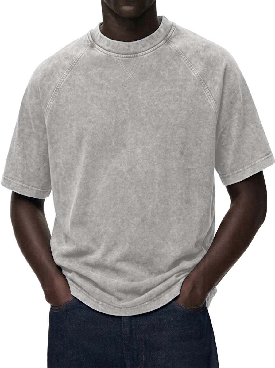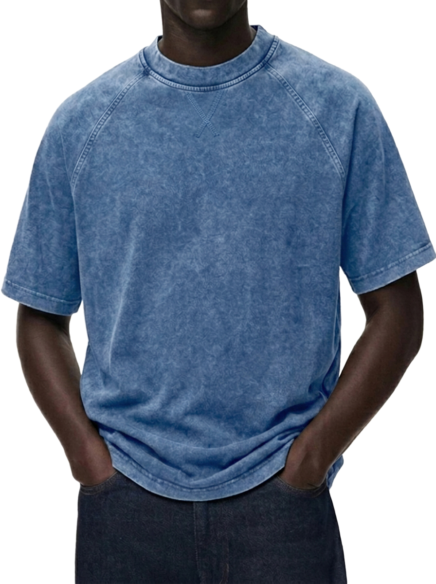 Men's Washed Distressed Raglan Sleeve Crewneck T-Shirt