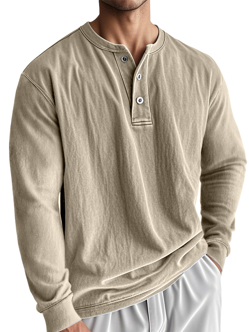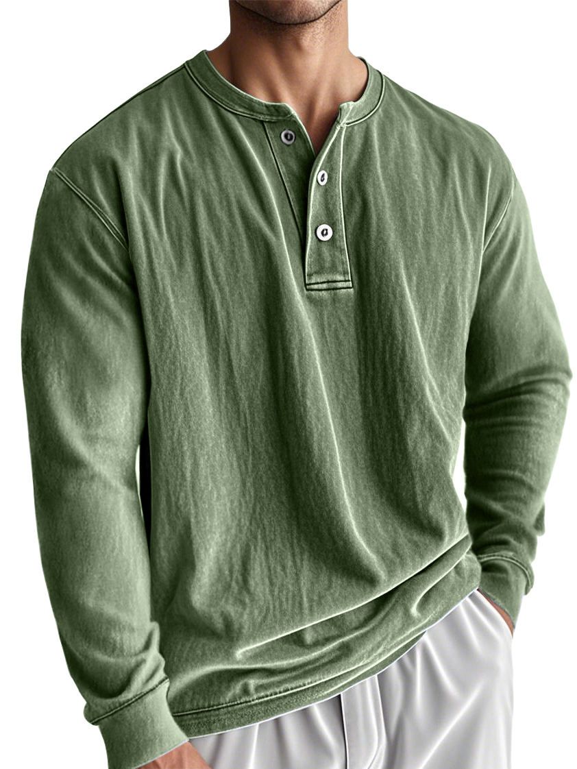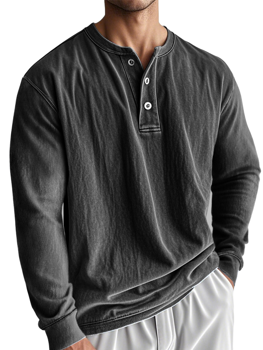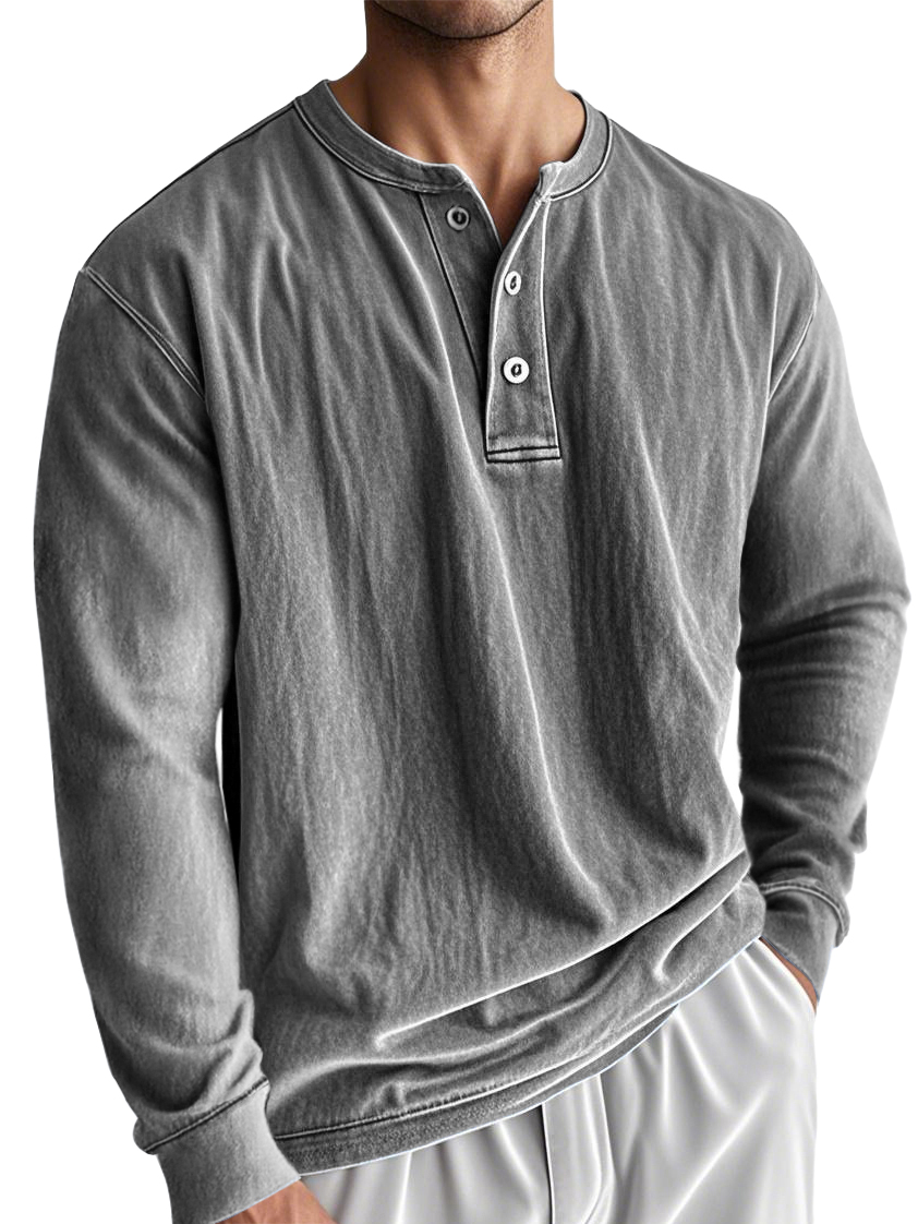 Men's Washed, Distressed, Vintage Casual Henley Shirt