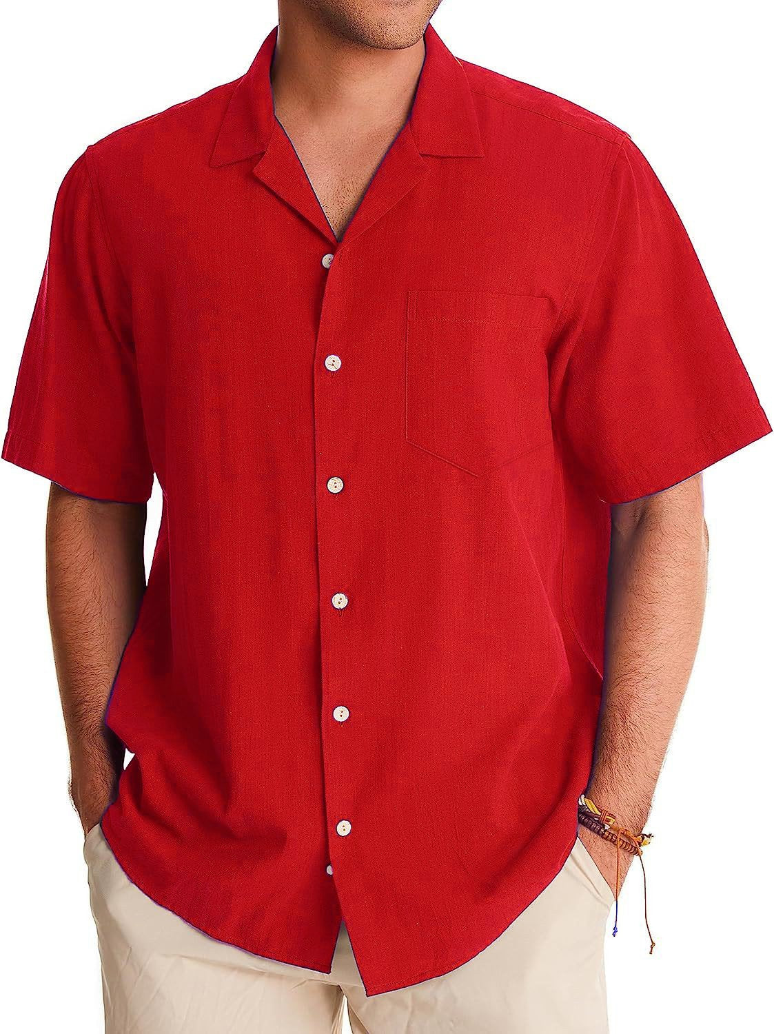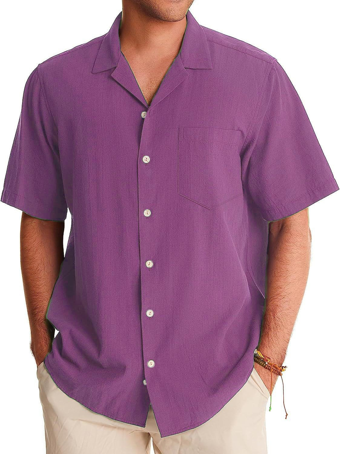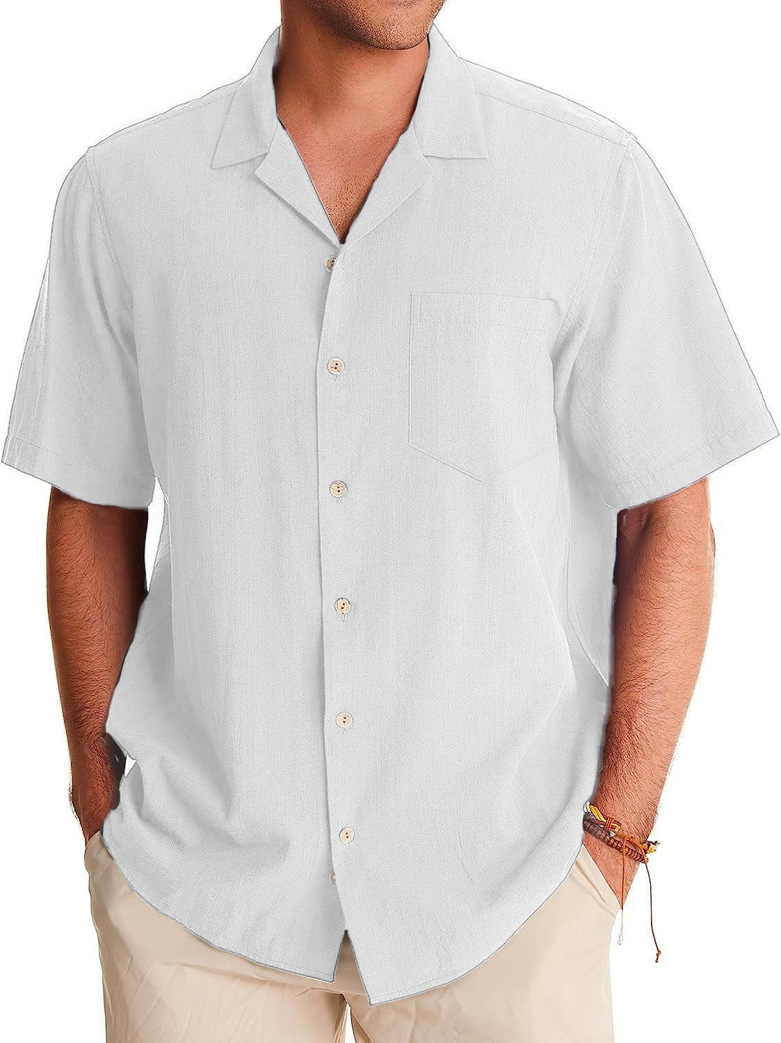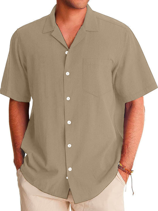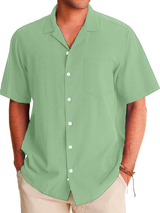 Men's Fashion Casual Cuban Collar Pocket Short Sleeve Shirt