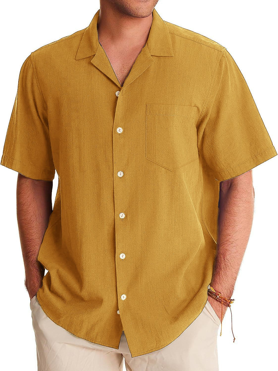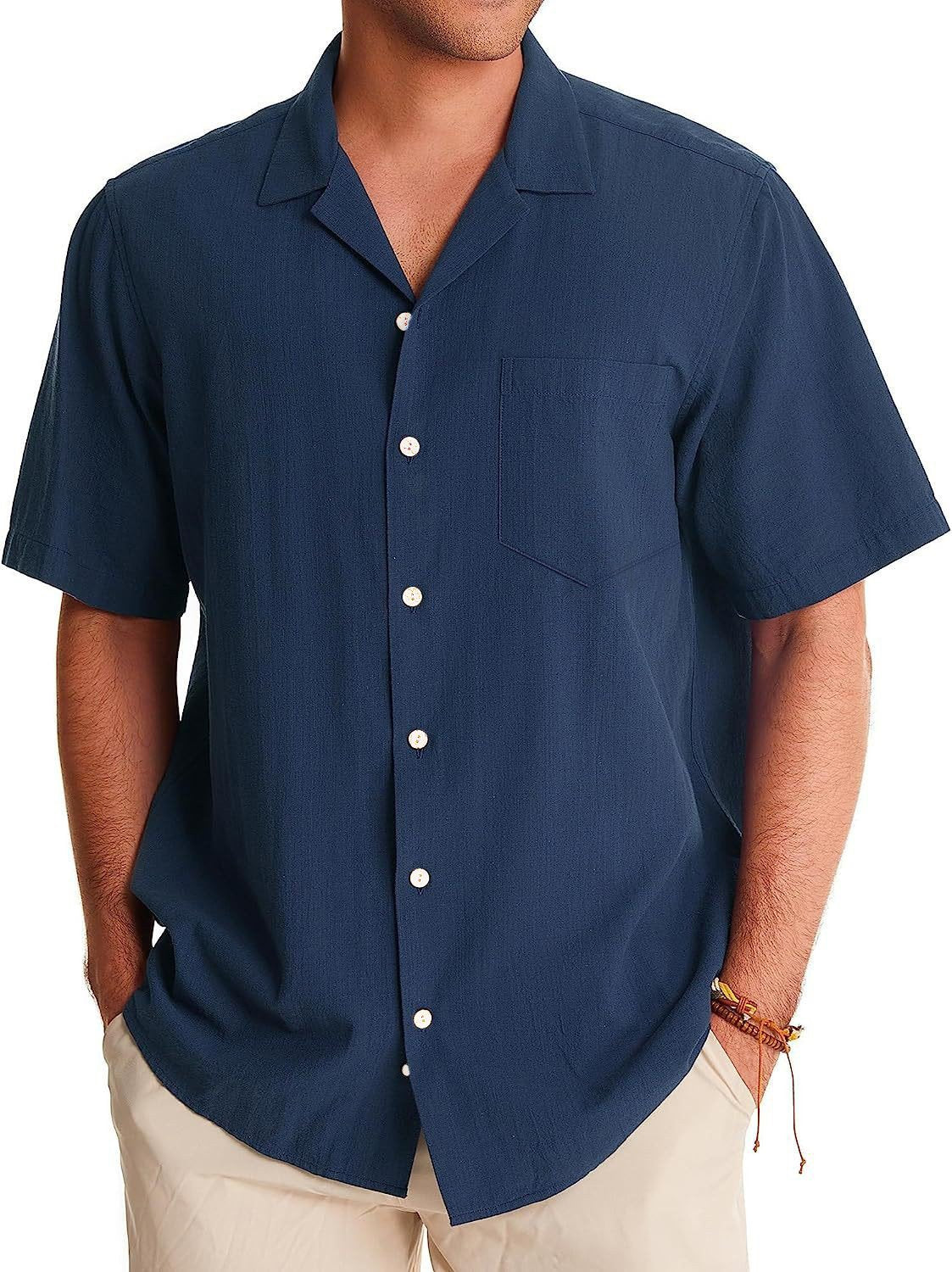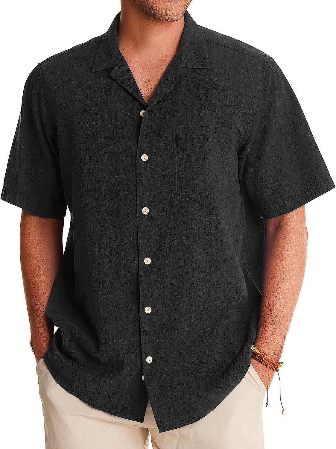 Men's Fashion Casual Cuban Collar Pocket Short Sleeve Shirt