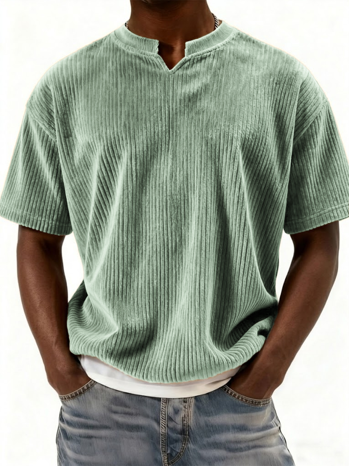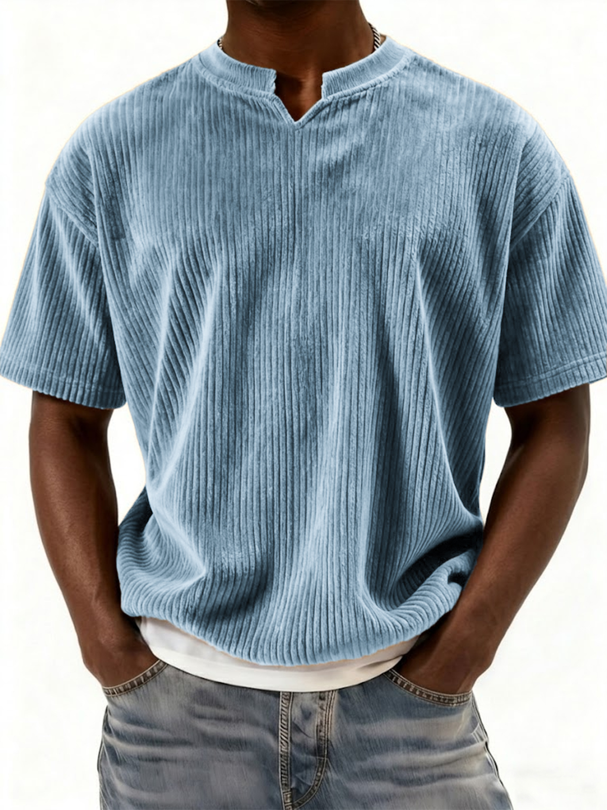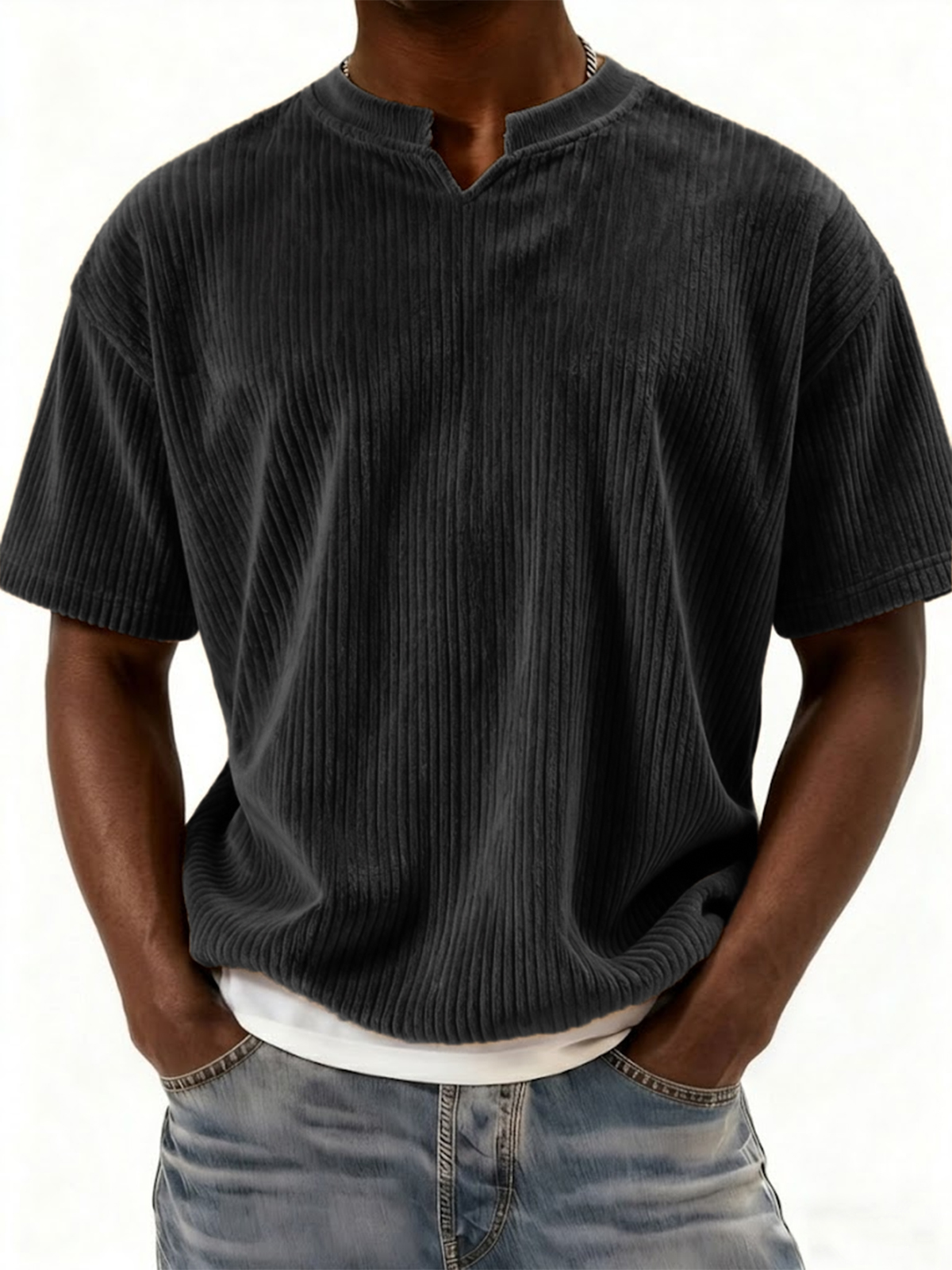 Retro Ribbed V-neck Casual Short-sleeved Top