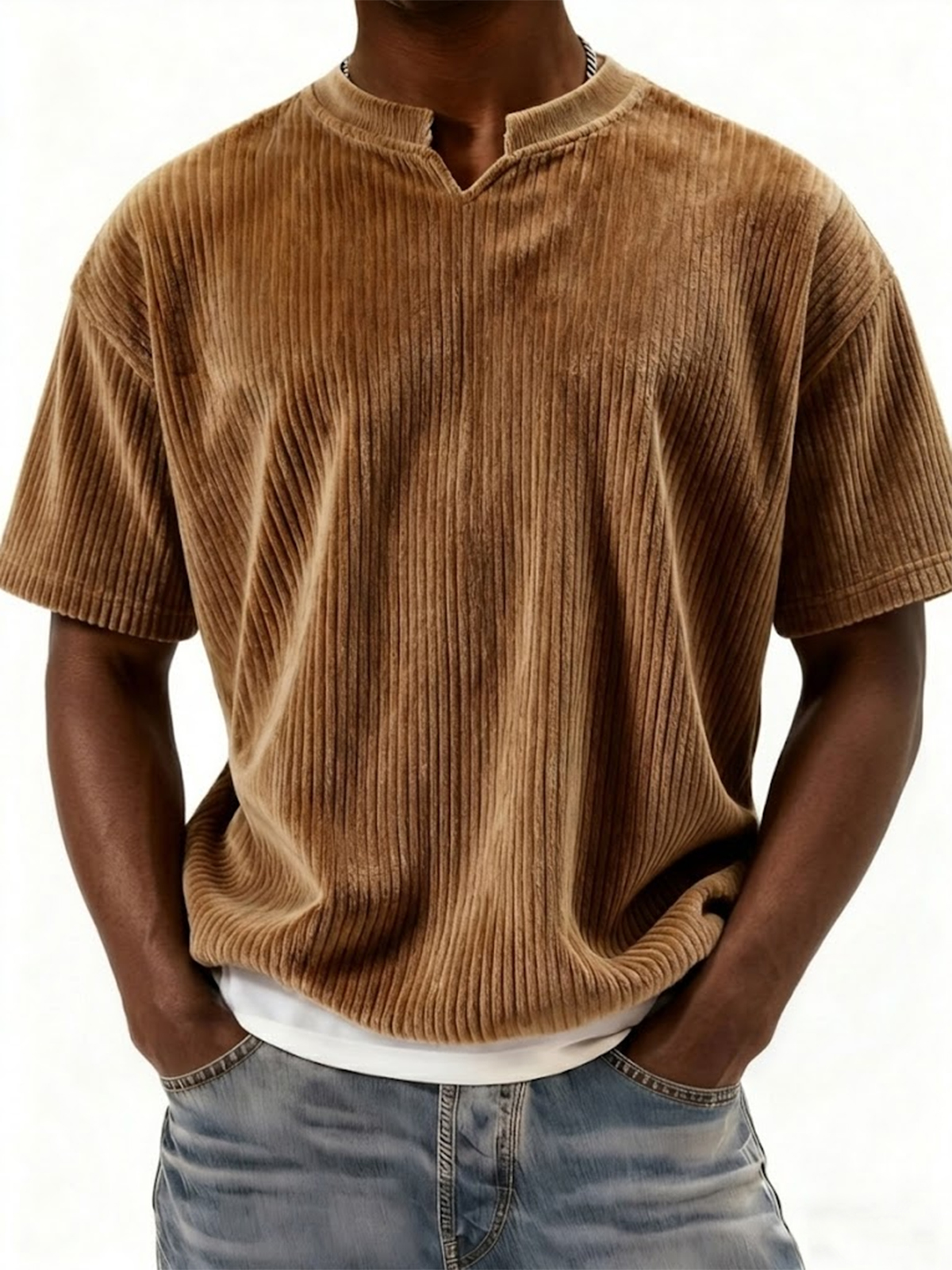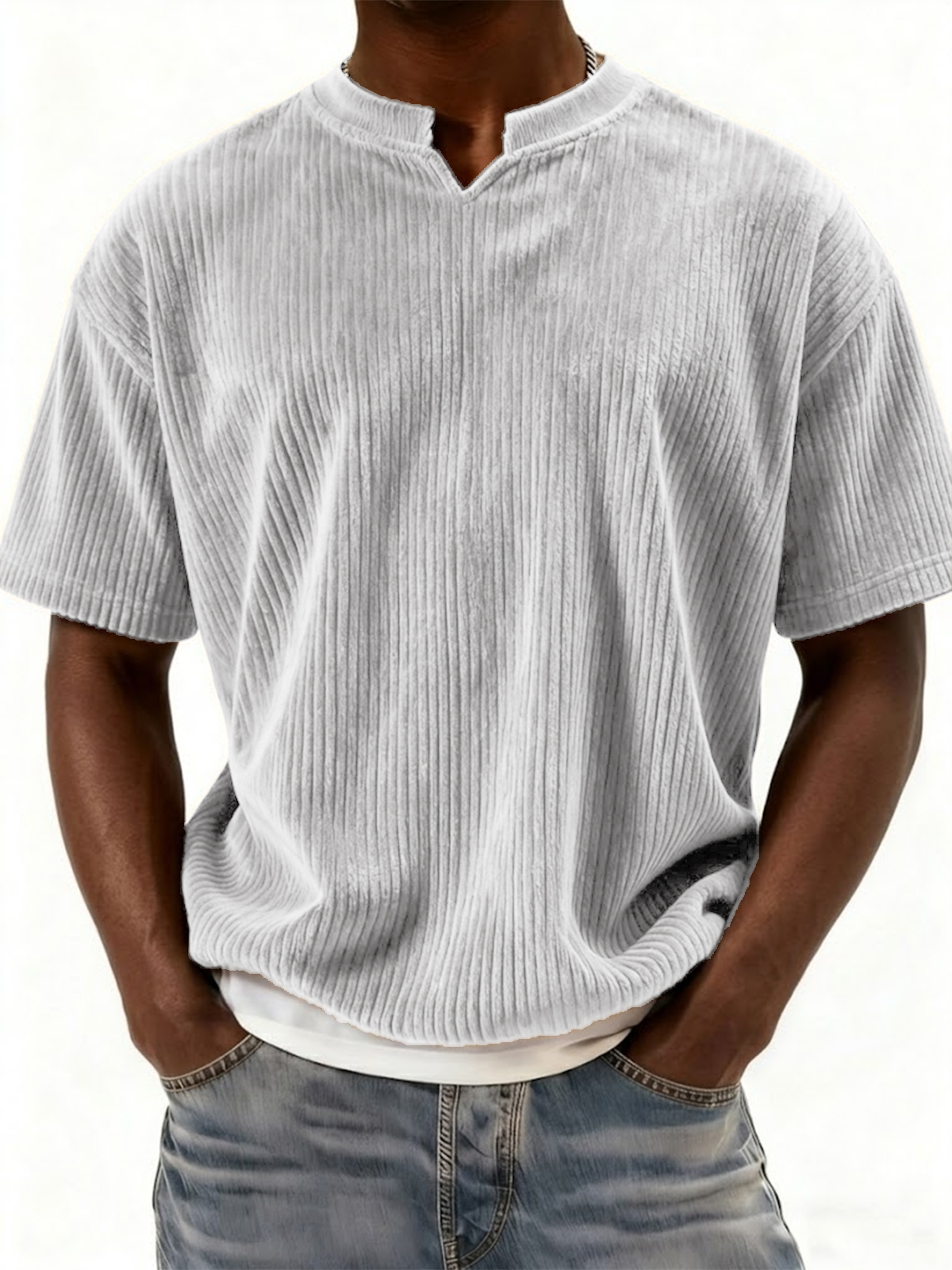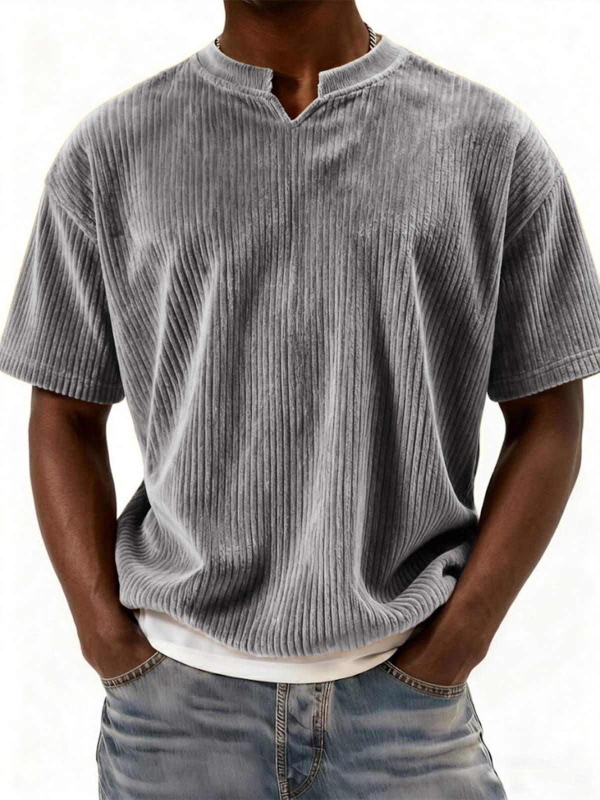 Retro Ribbed V-neck Casual Short-sleeved Top
