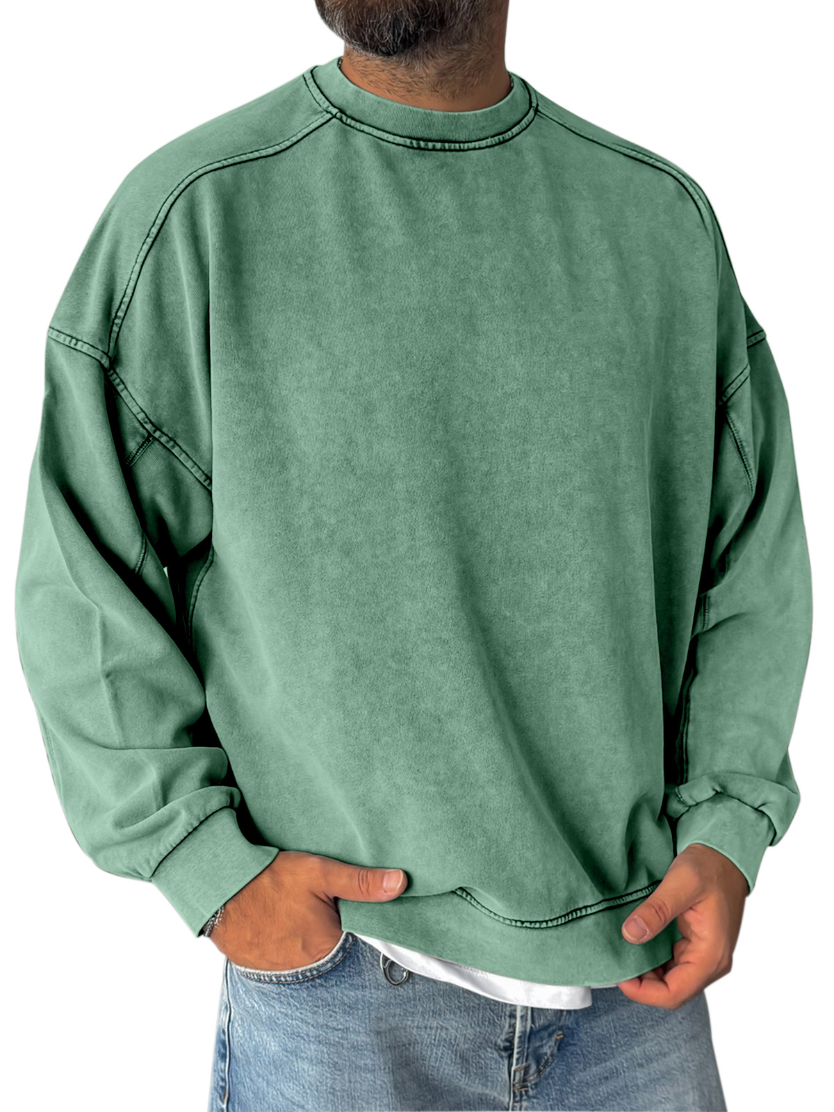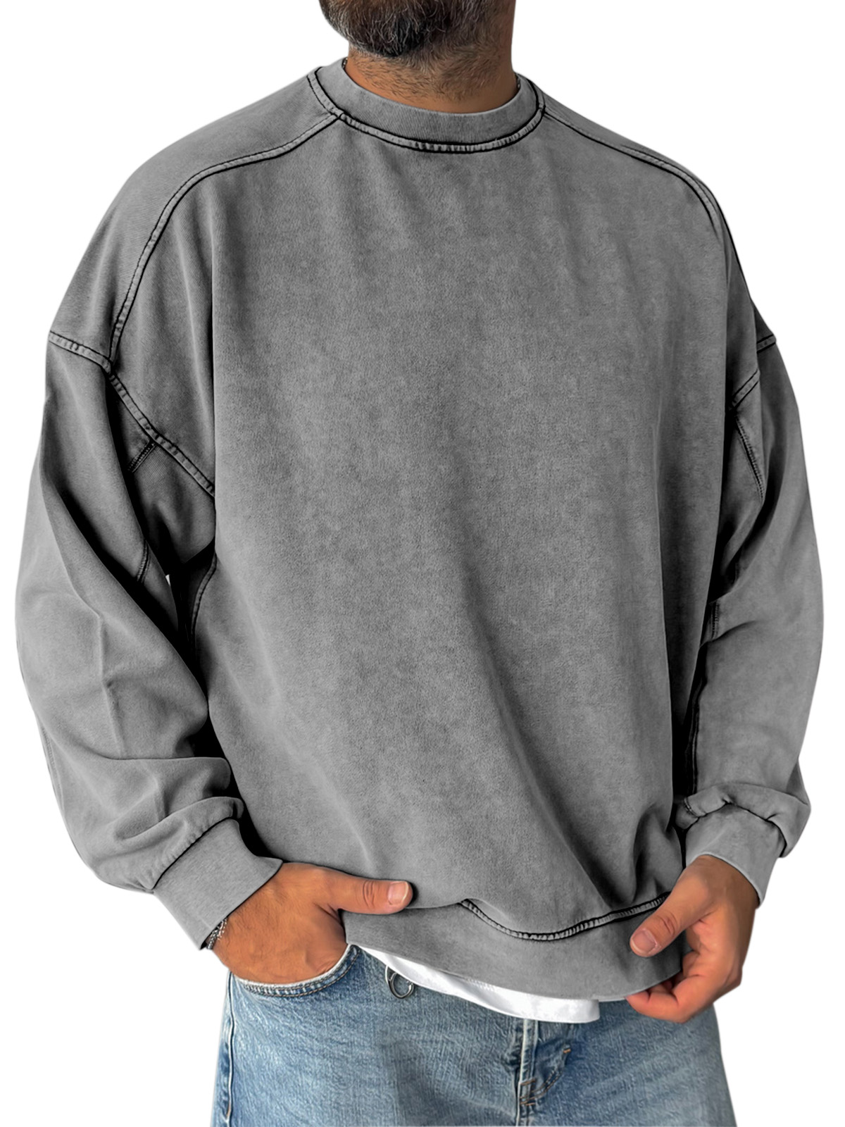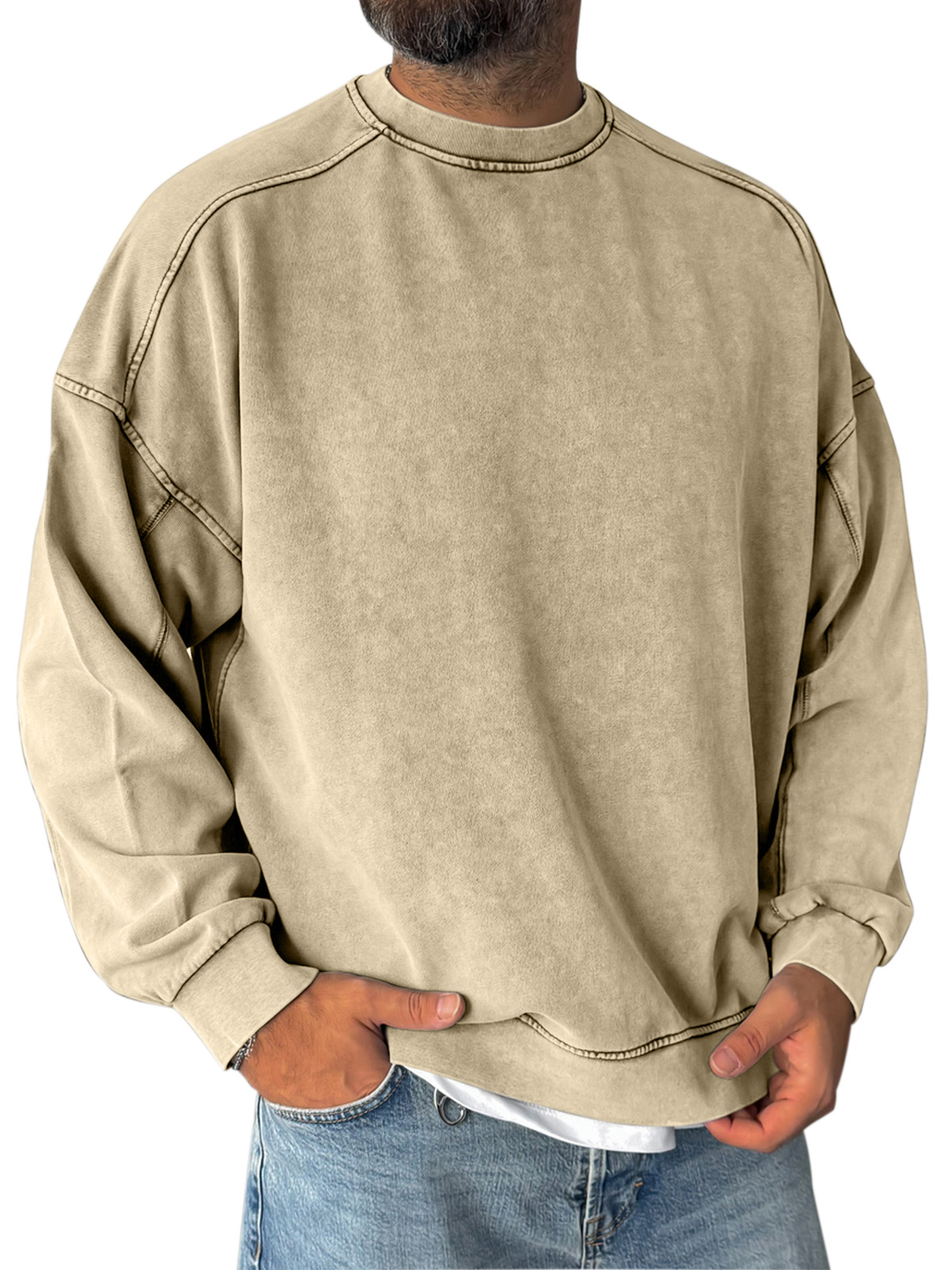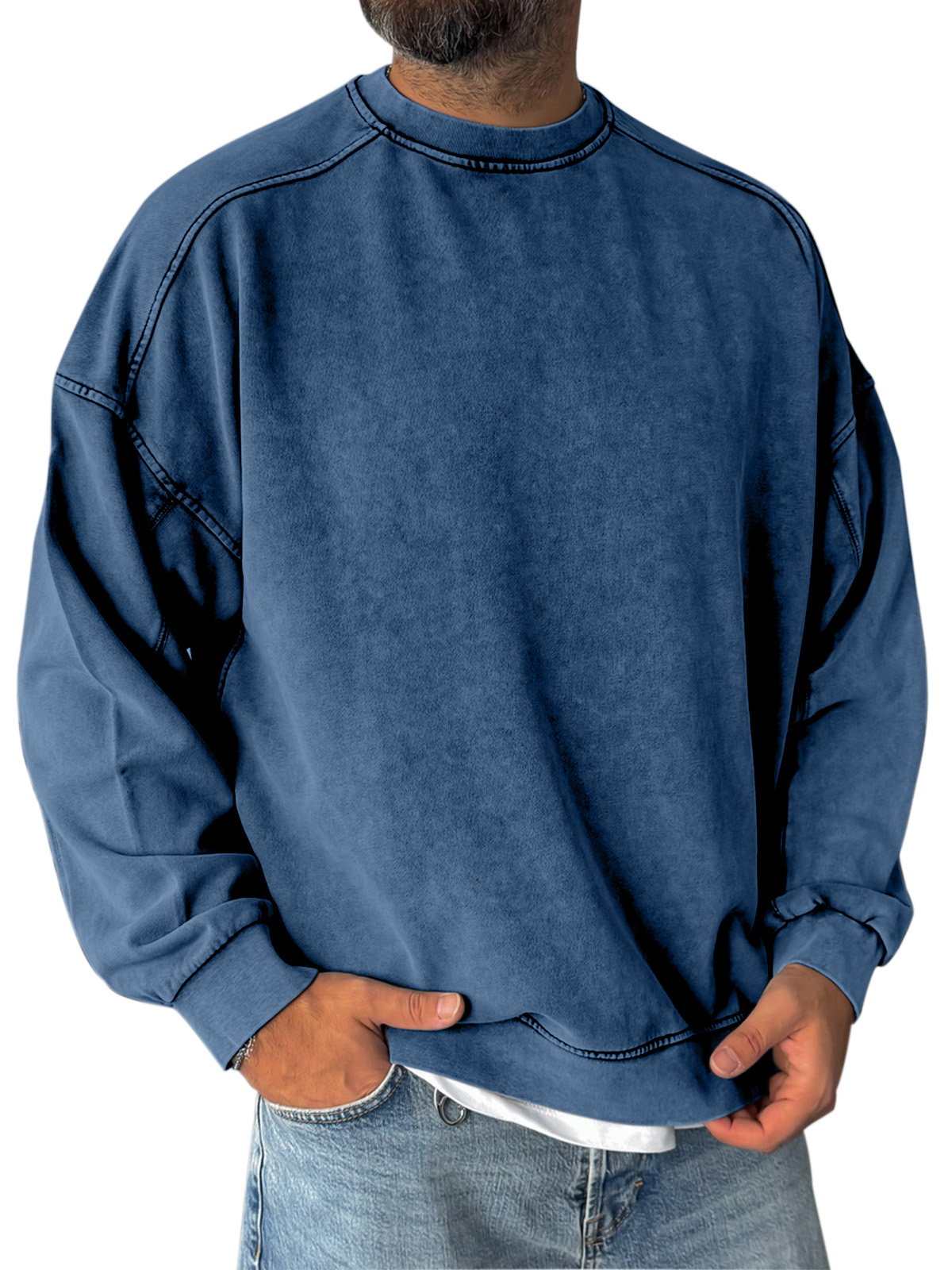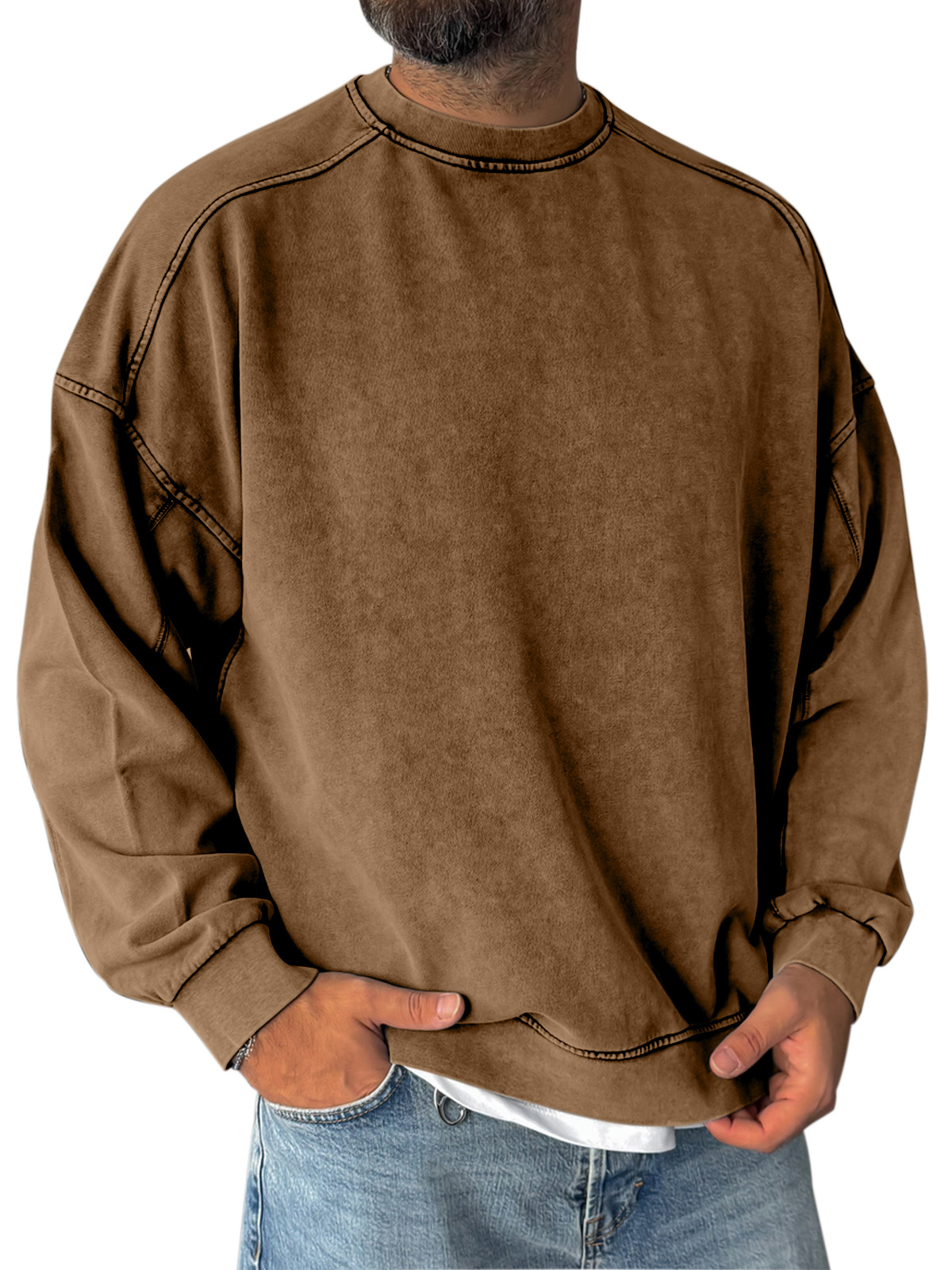 Retro Simple Shoulder Design Stitching Casual Round Neck Sweatshirt