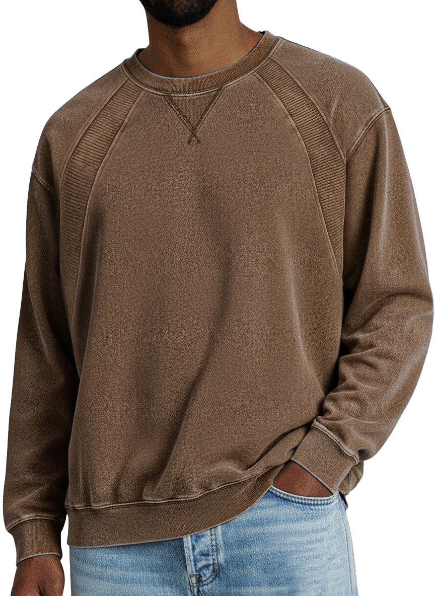 Retro Solid Color Patchwork Crew Neck Sweatshirt