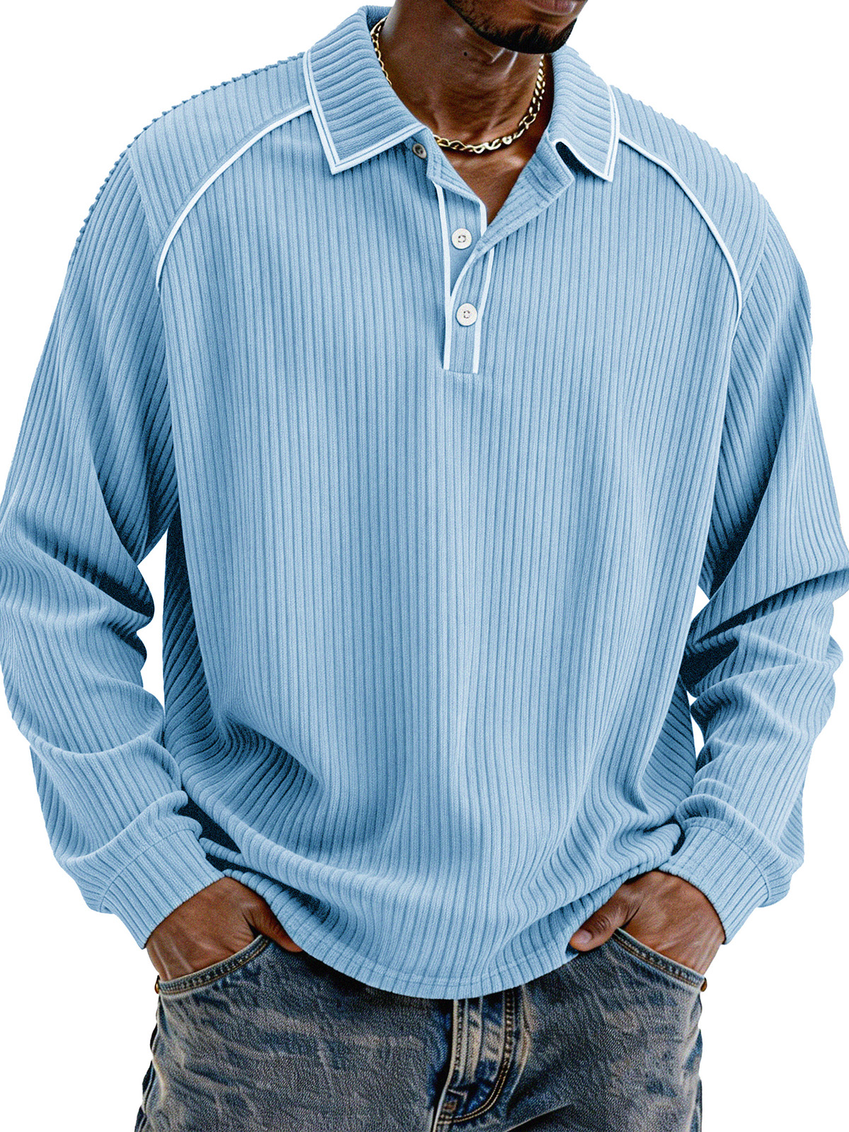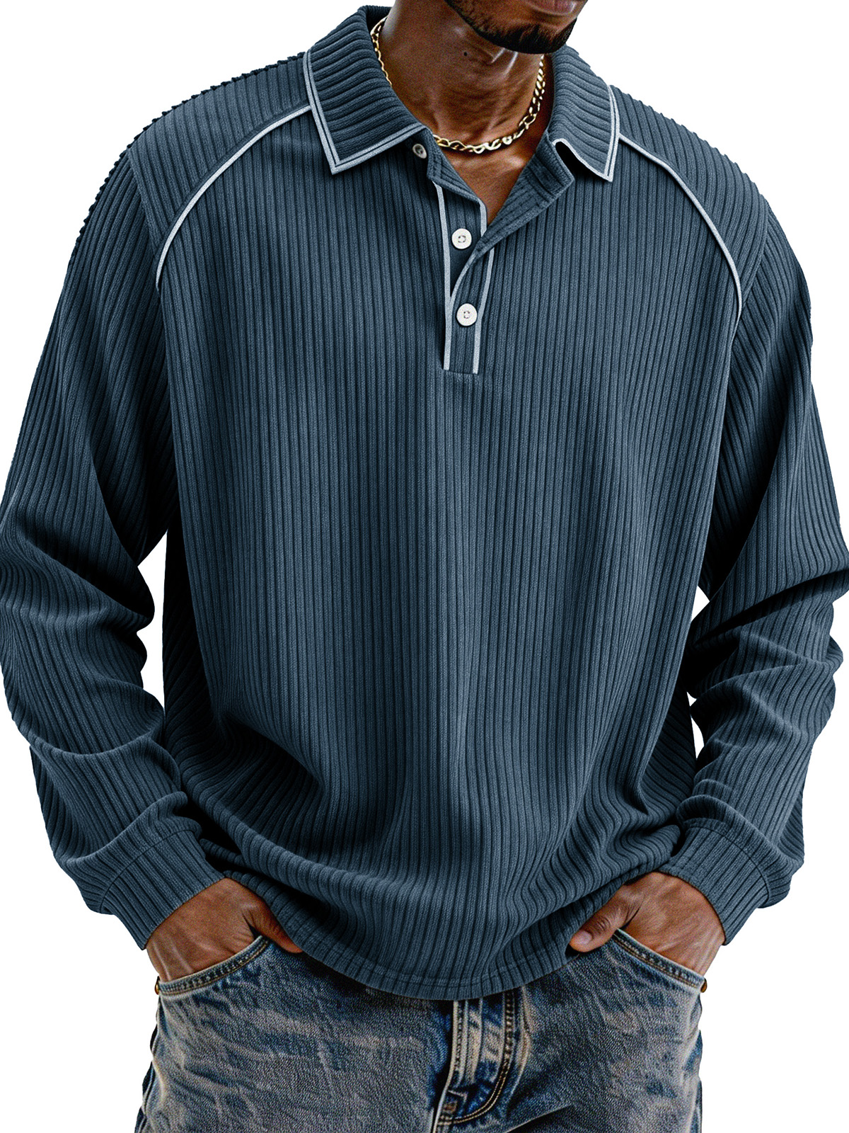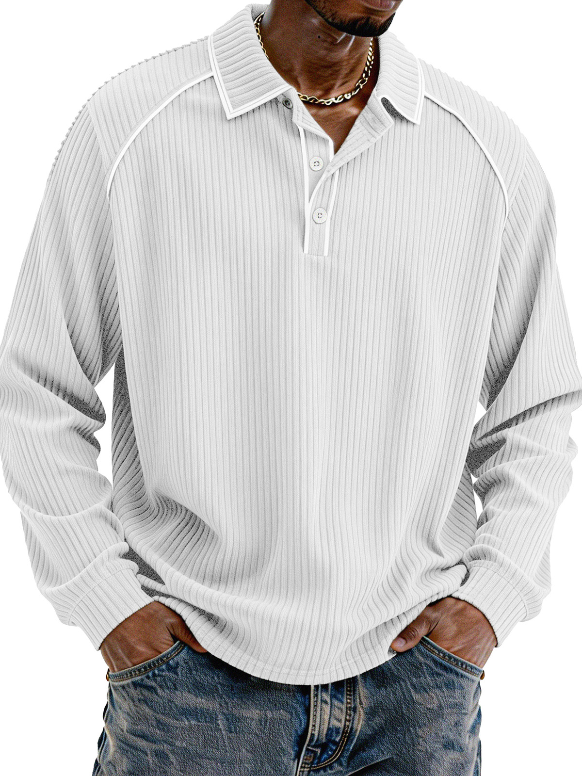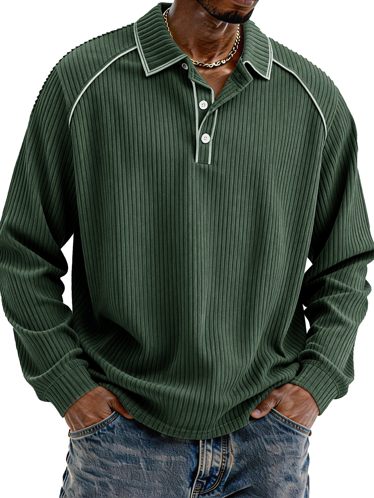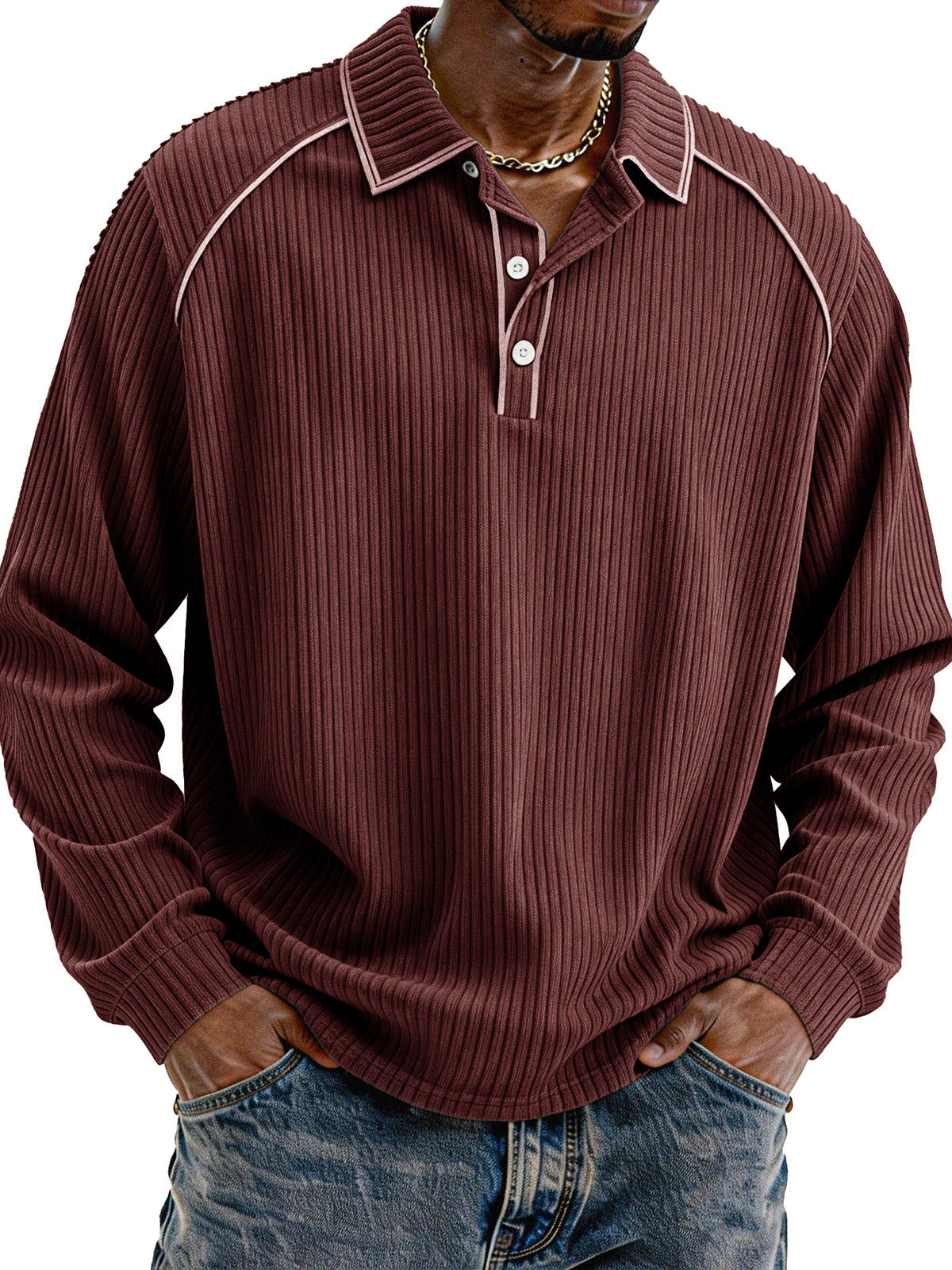 Stylish Casual Loose Corduroy Fabric Lapel Long-sleeved Polo Shirt