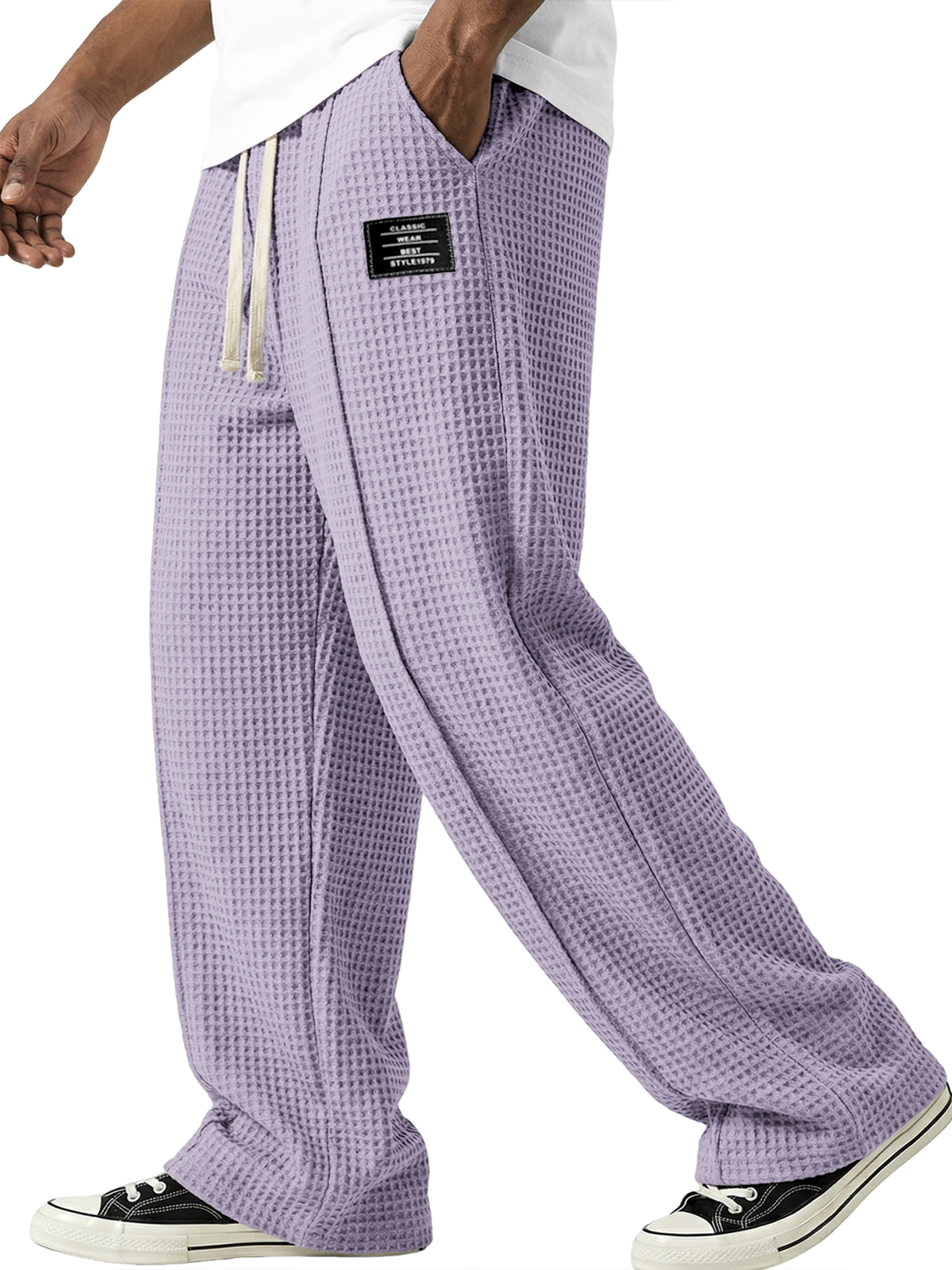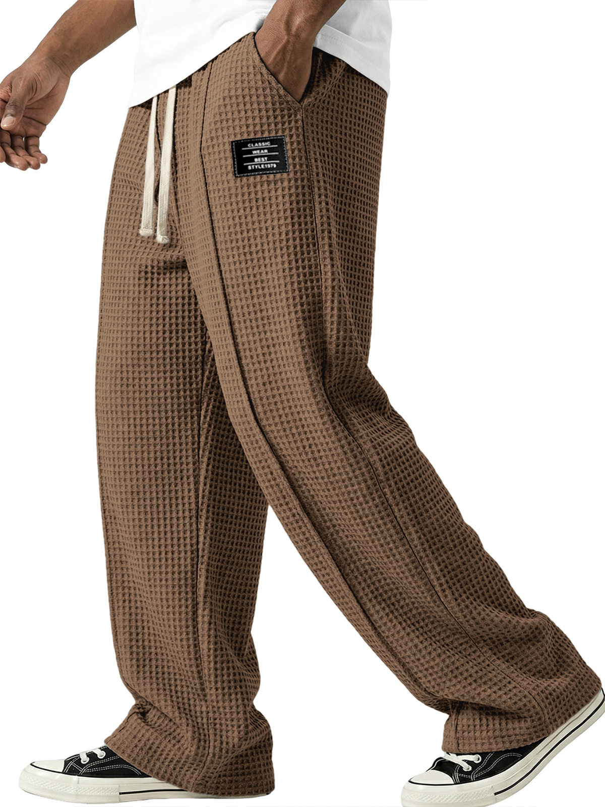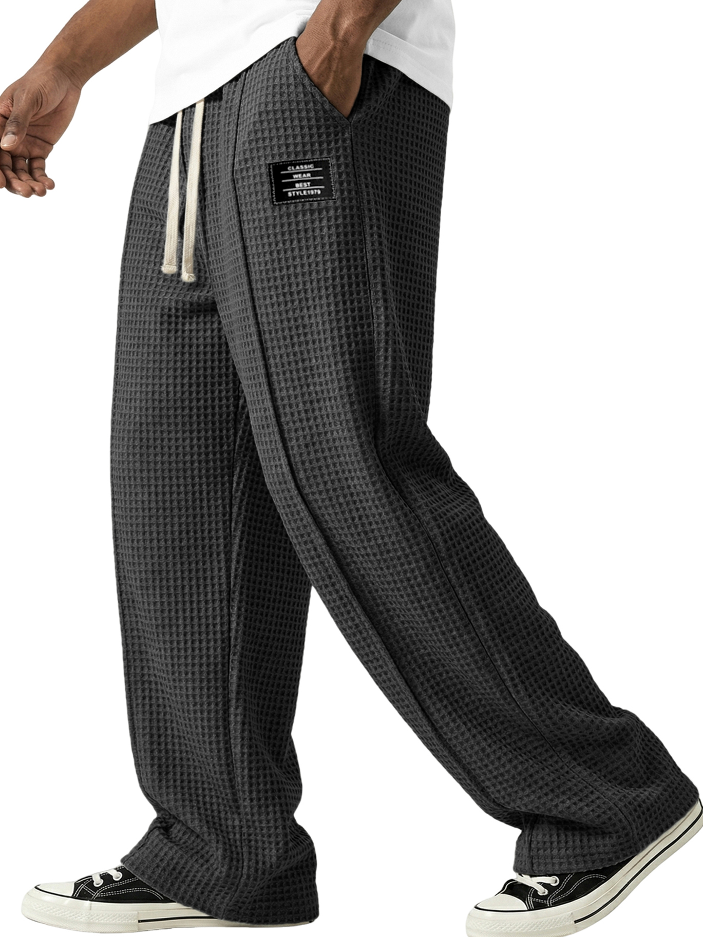 Waffle-textured Minimalist Lace-up Embroidered Pants