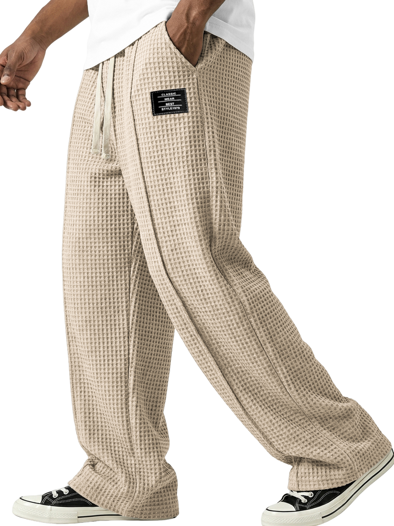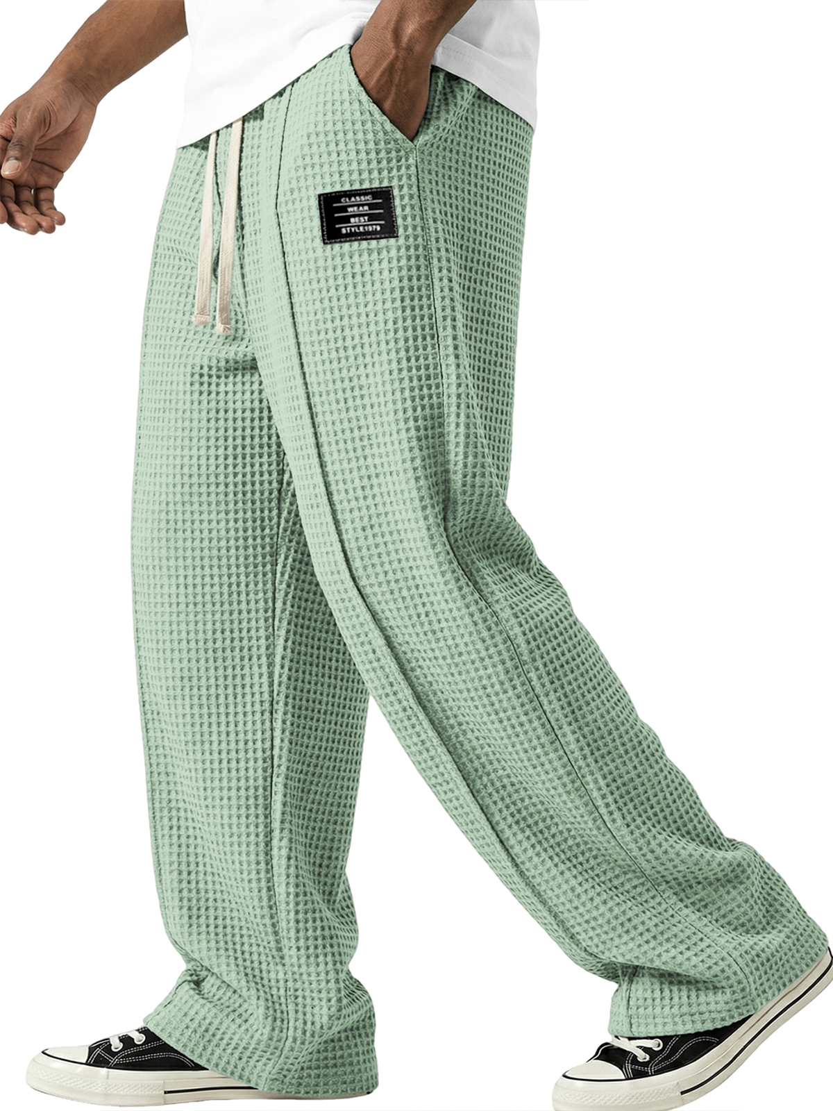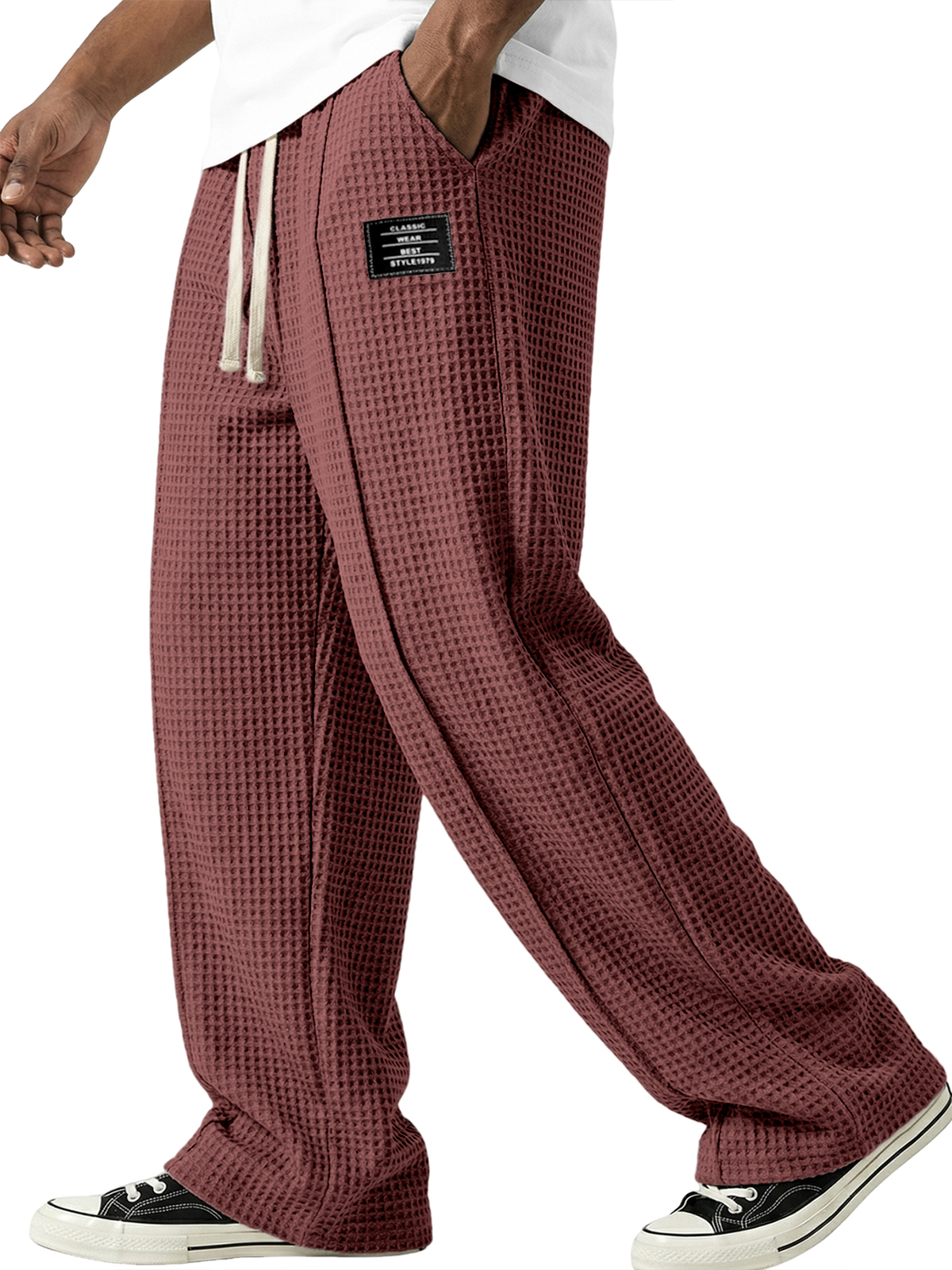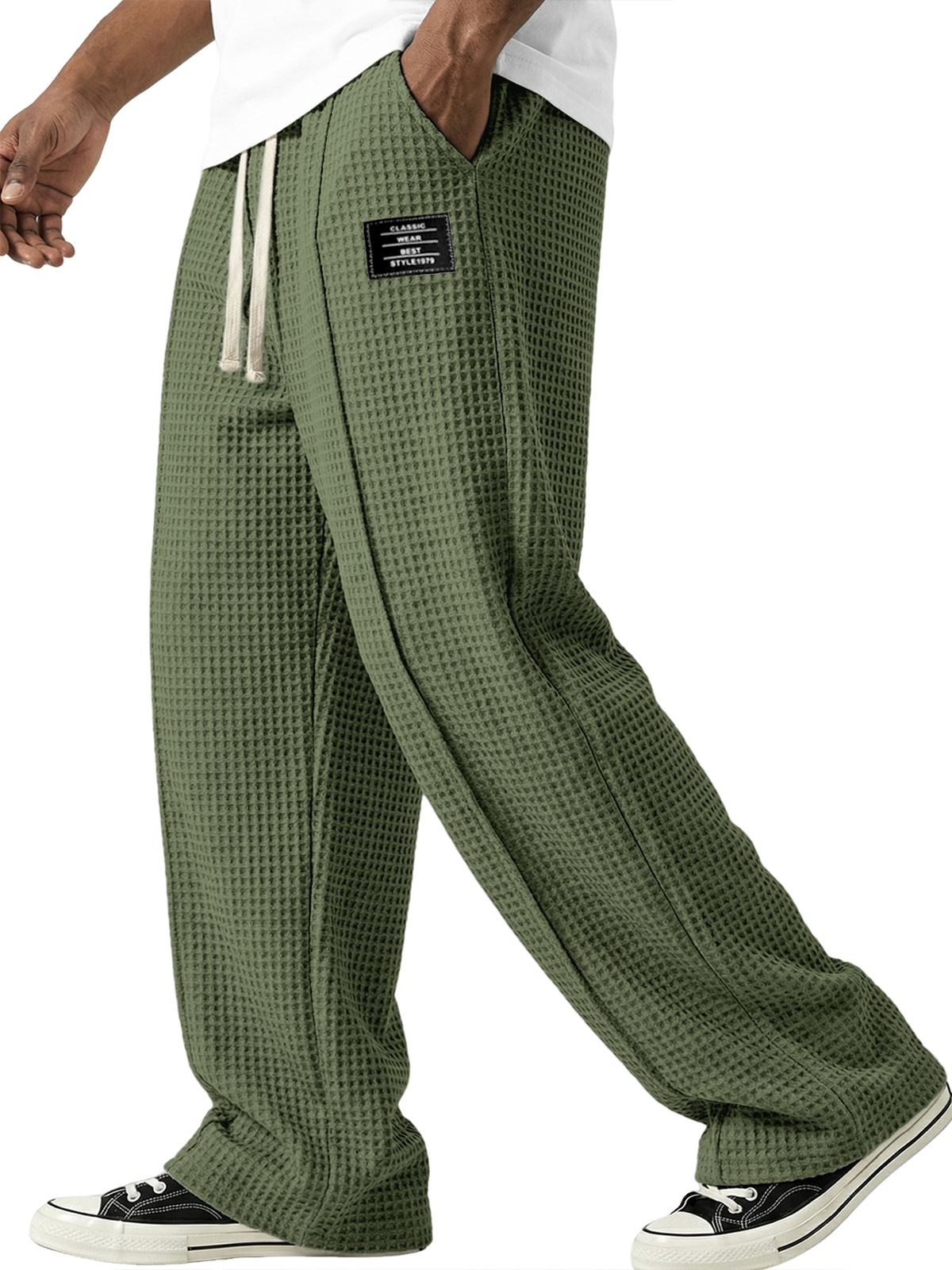 Waffle-textured Minimalist Lace-up Embroidered Pants