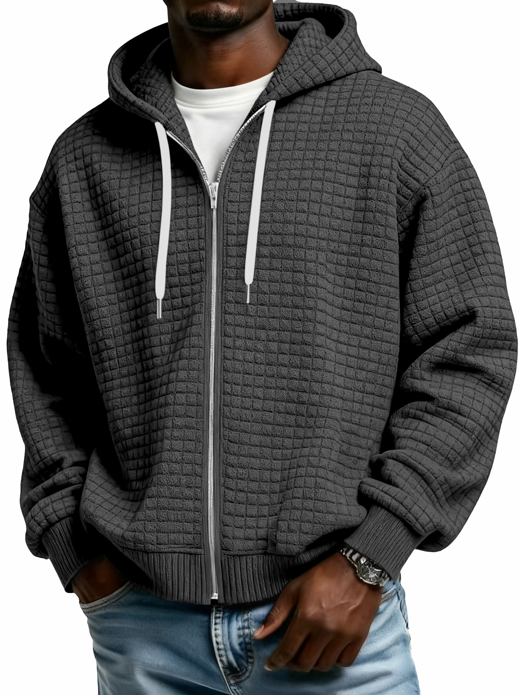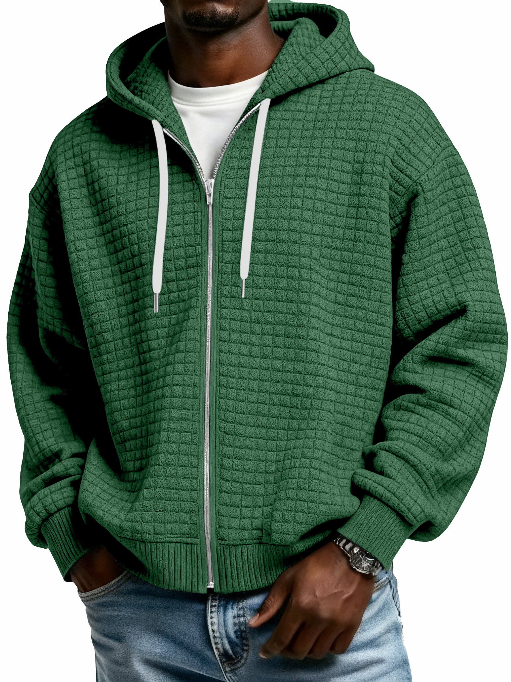 Winter Men's Corduroy Corn Zip Hooded Jacket